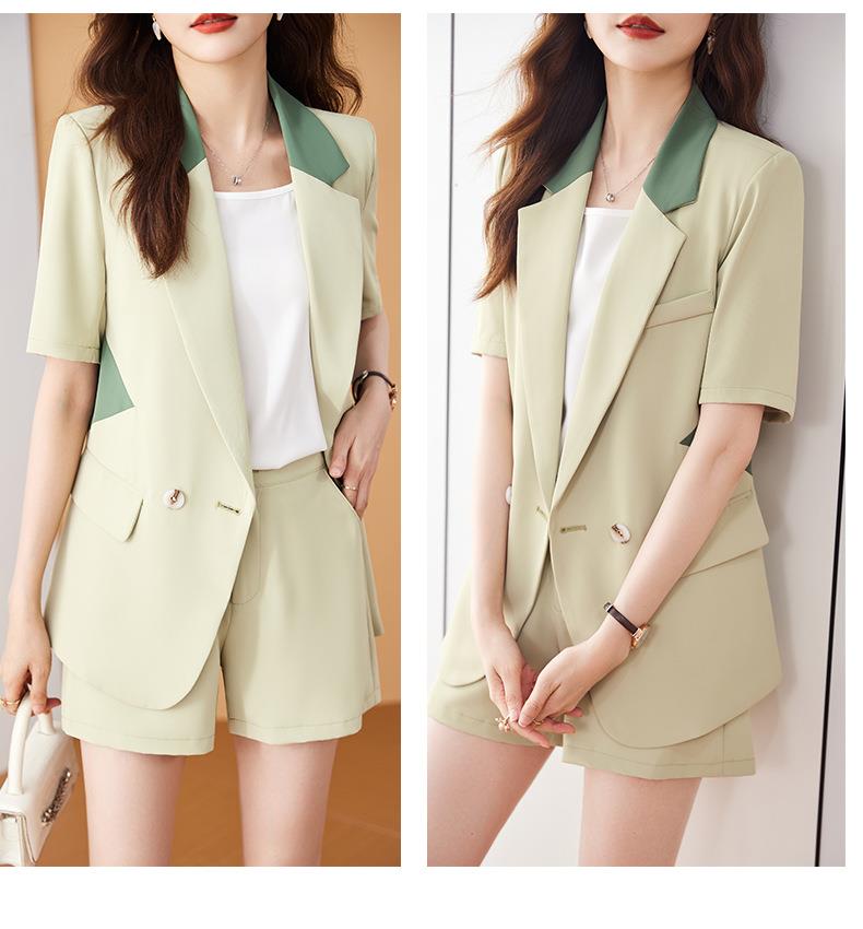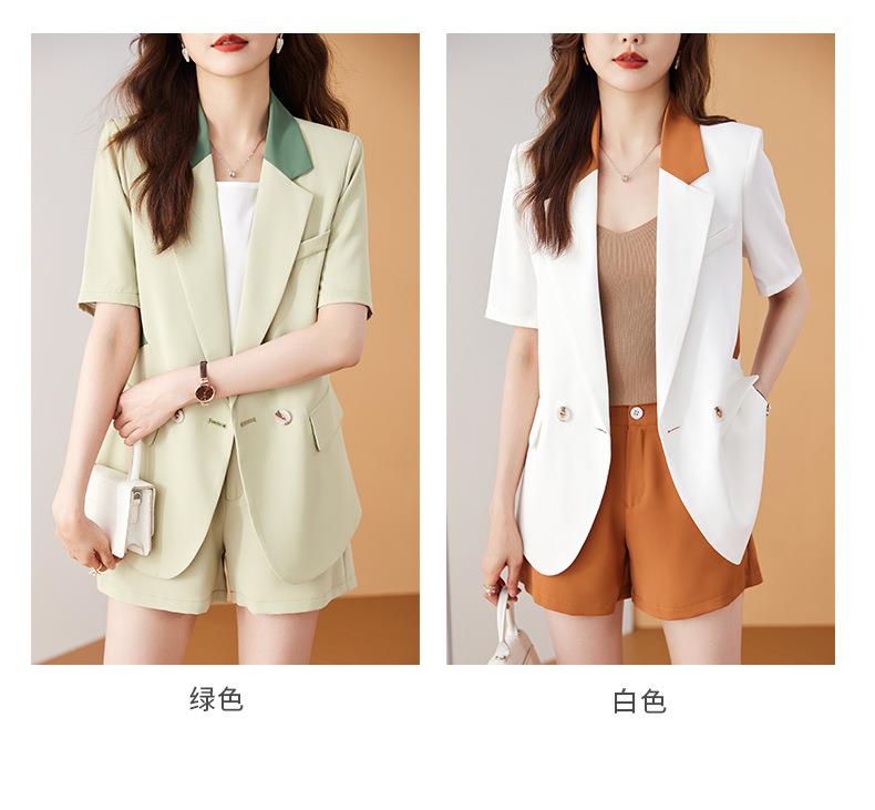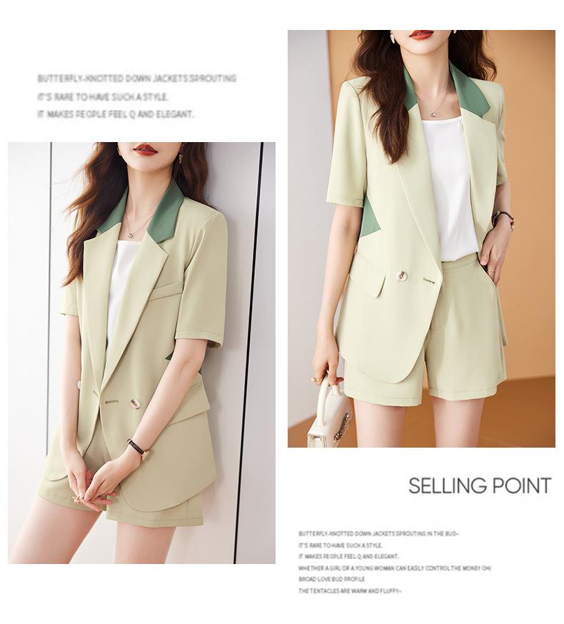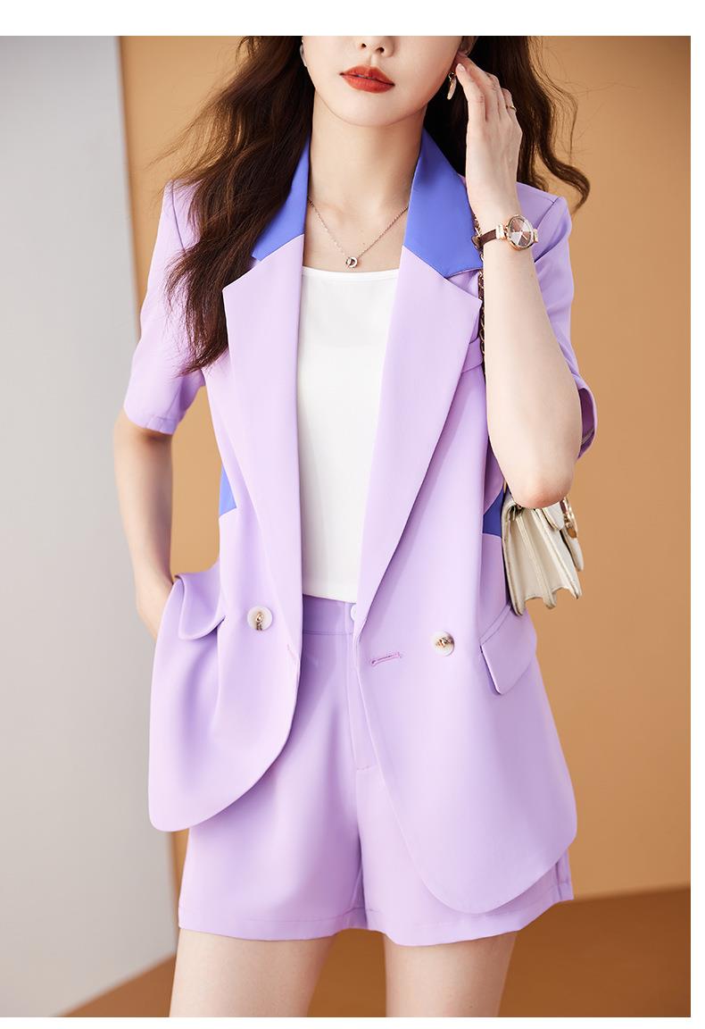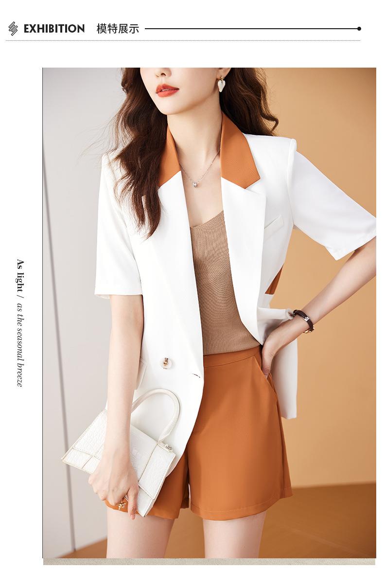 娜璐多 拼接撞色薄款西装套装女夏季温柔风2023新款设计感气质短裤两件套