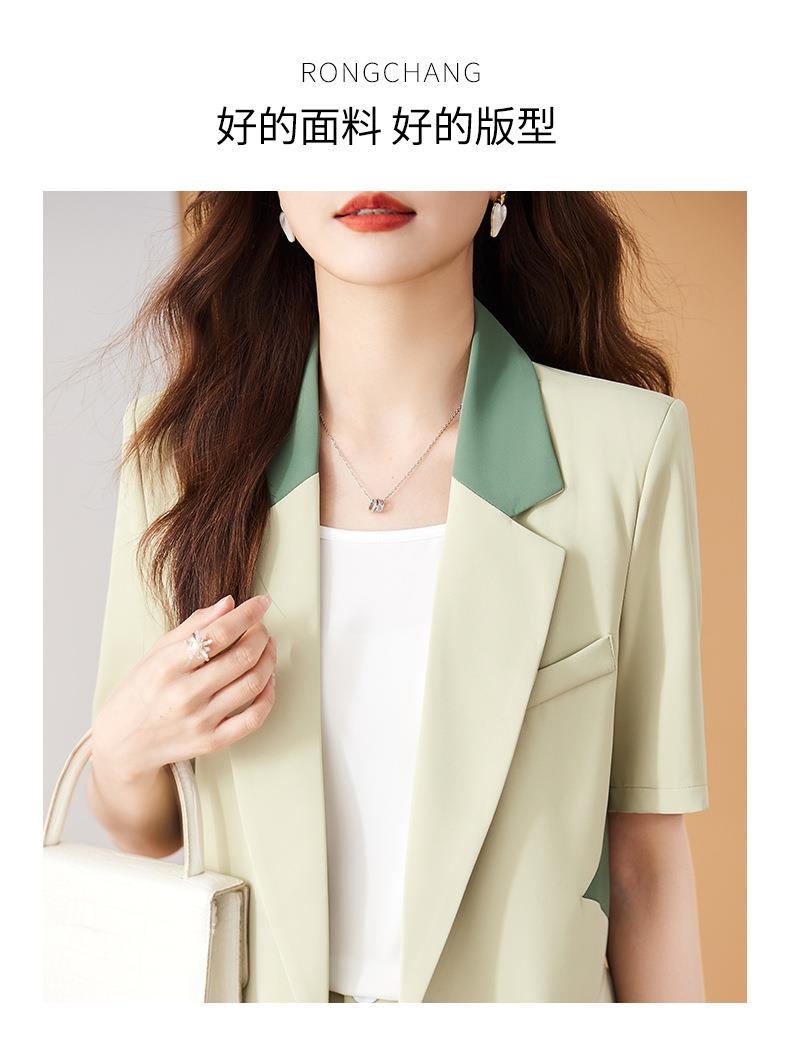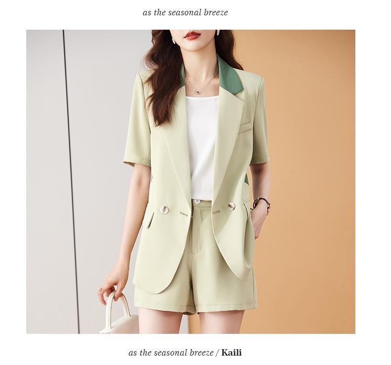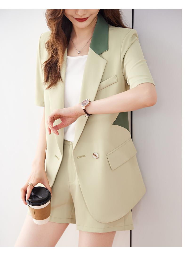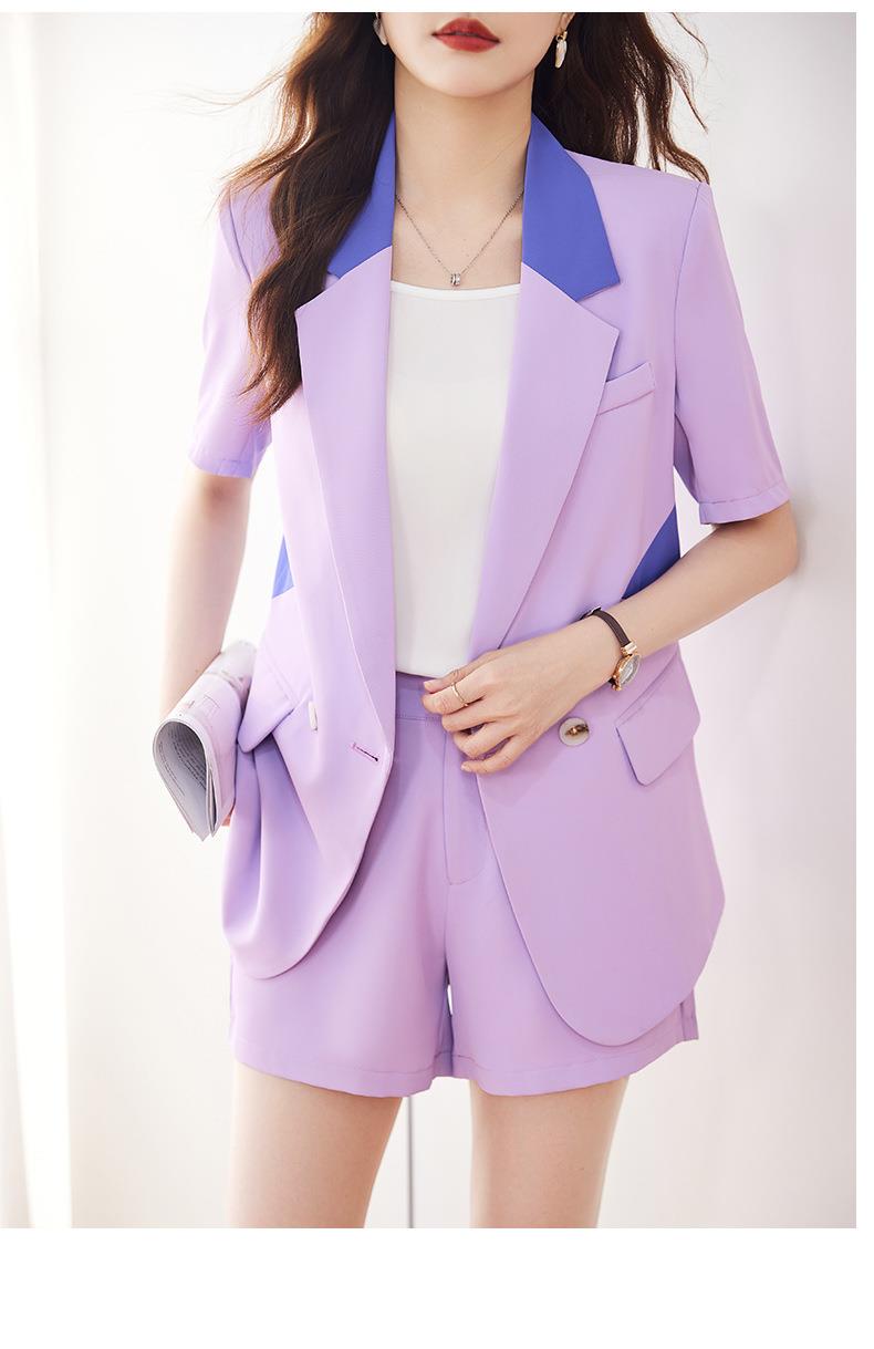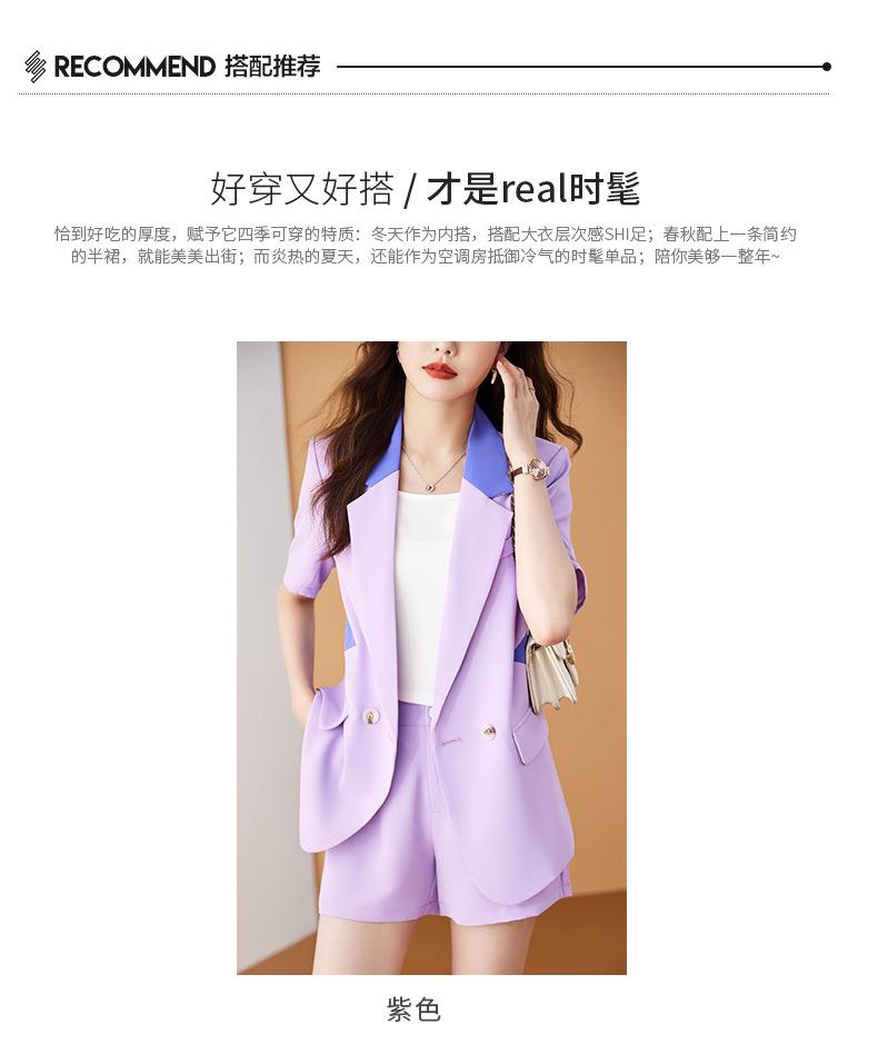 娜璐多 拼接撞色薄款西装套装女夏季温柔风2023新款设计感气质短裤两件套