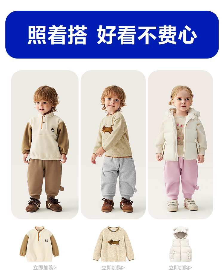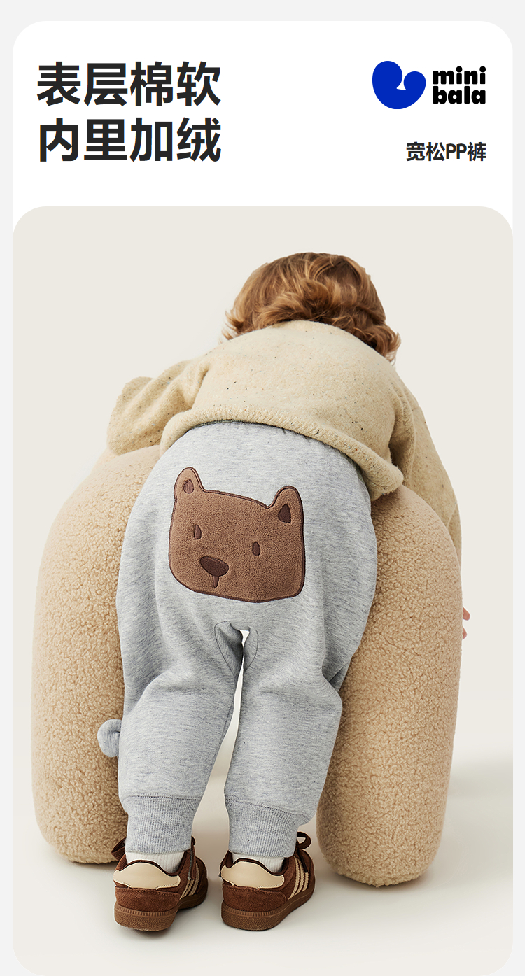 迷你巴拉男女童裤子保暖内里加绒不勒肚2025冬装新款宽松PP裤