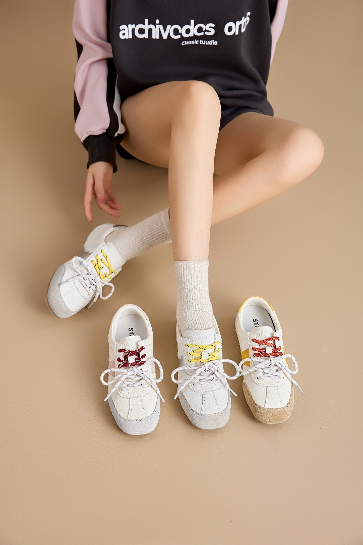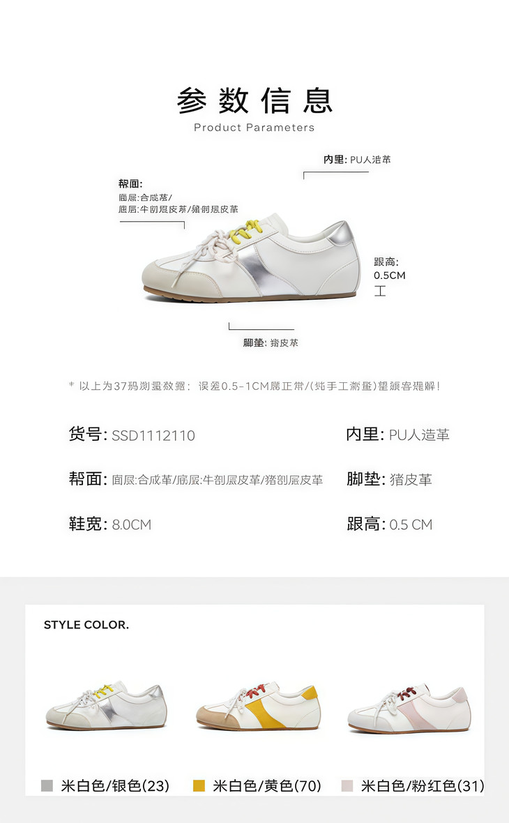 【拼色多巴胺皮质小白鞋 SSD1112110】都说小白鞋是万能的百搭不挑人!白色不管什么时候再过几年拿出来依旧经典不过时!