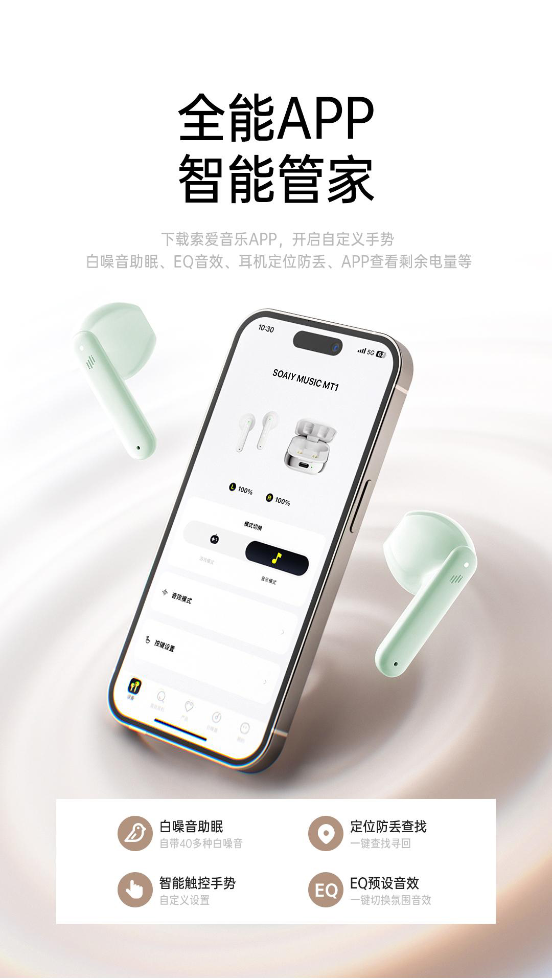 疯抢中!!【前300单送珍珠手链】【索爱音乐MT1蓝牙耳机】高档全能APP智能管家 轻盈舒适佩戴无压力