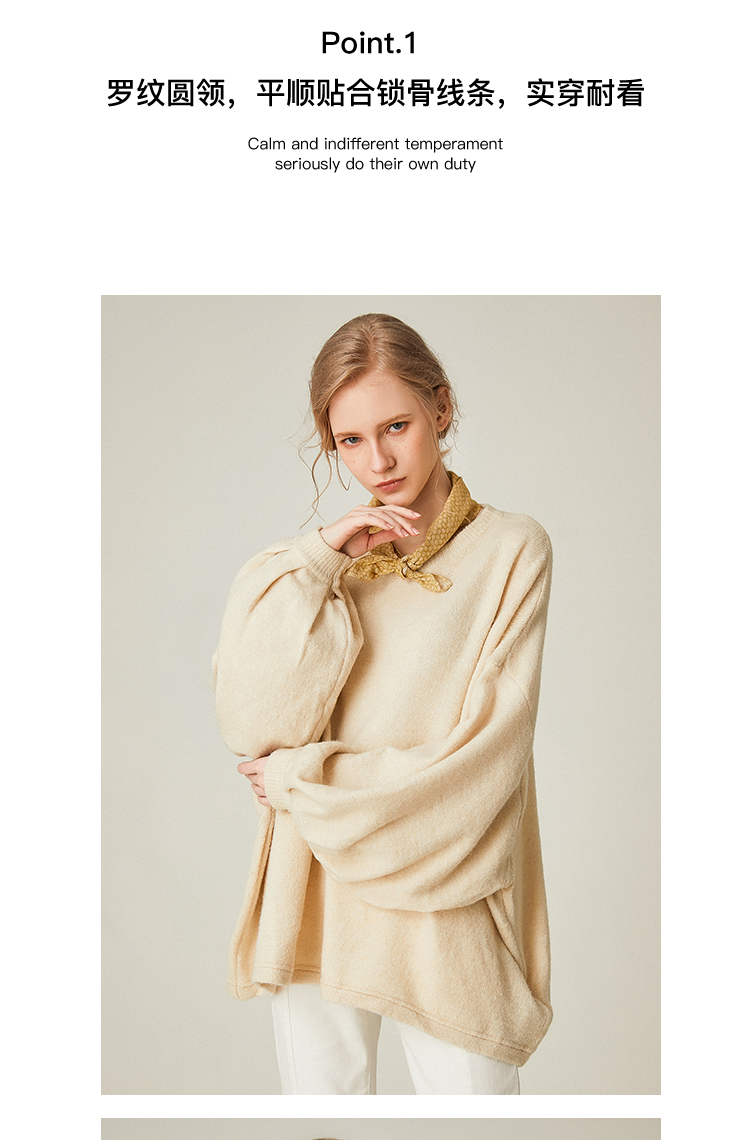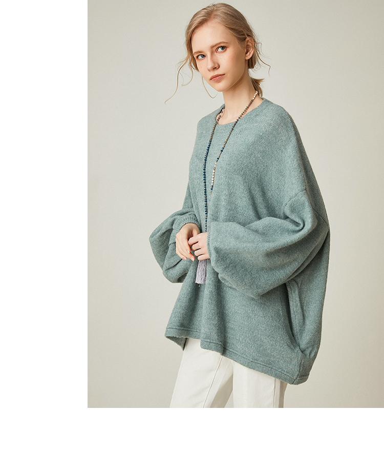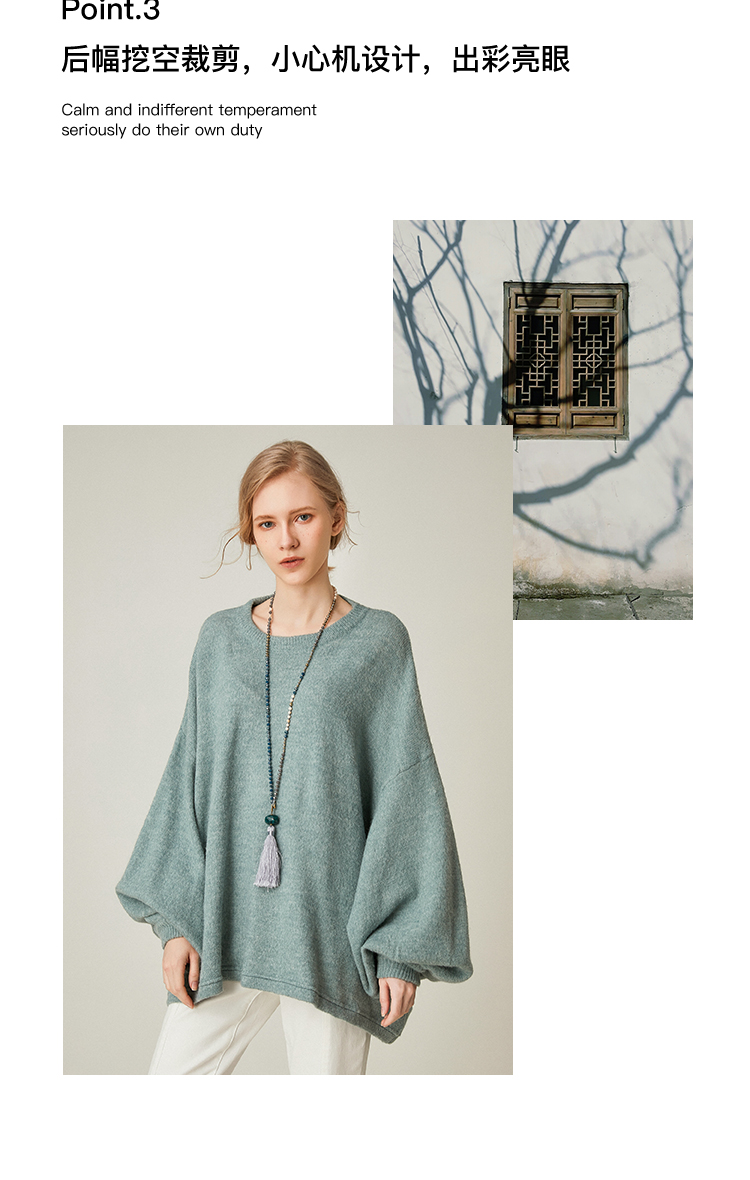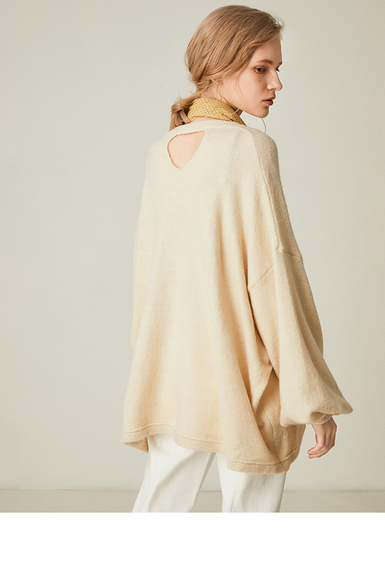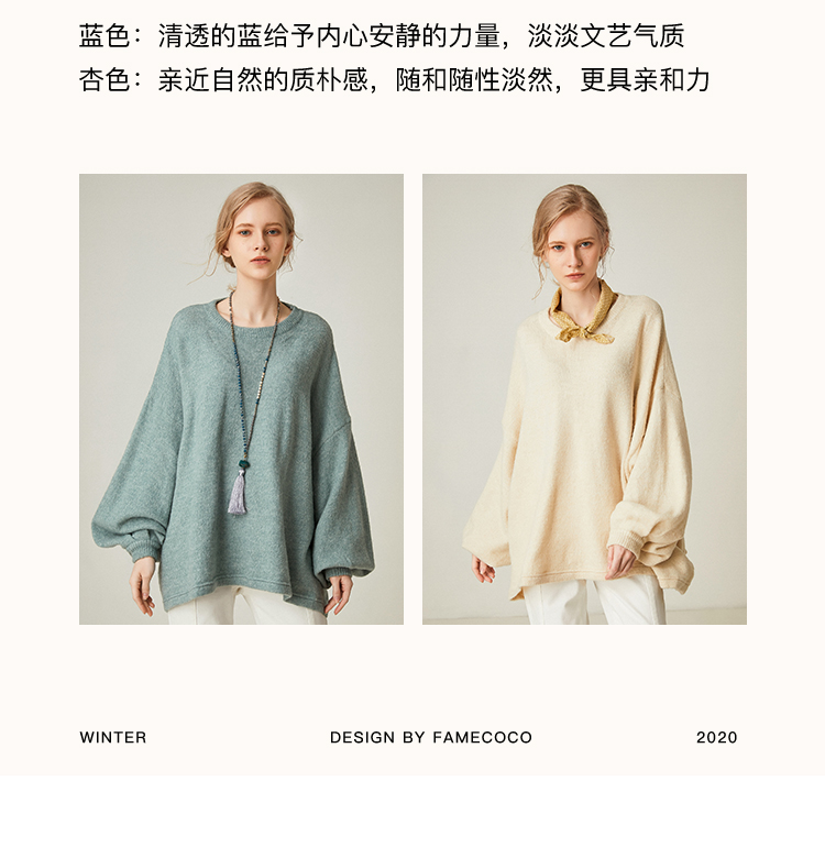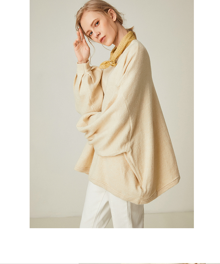 famecoco范可儿设计感慵懒风套头毛衣水滴袖针织衫F191DB128