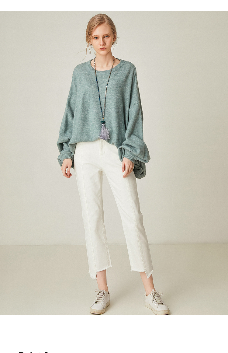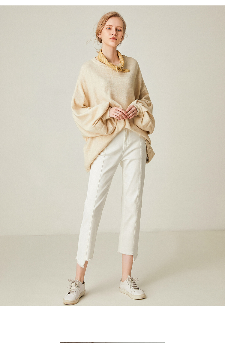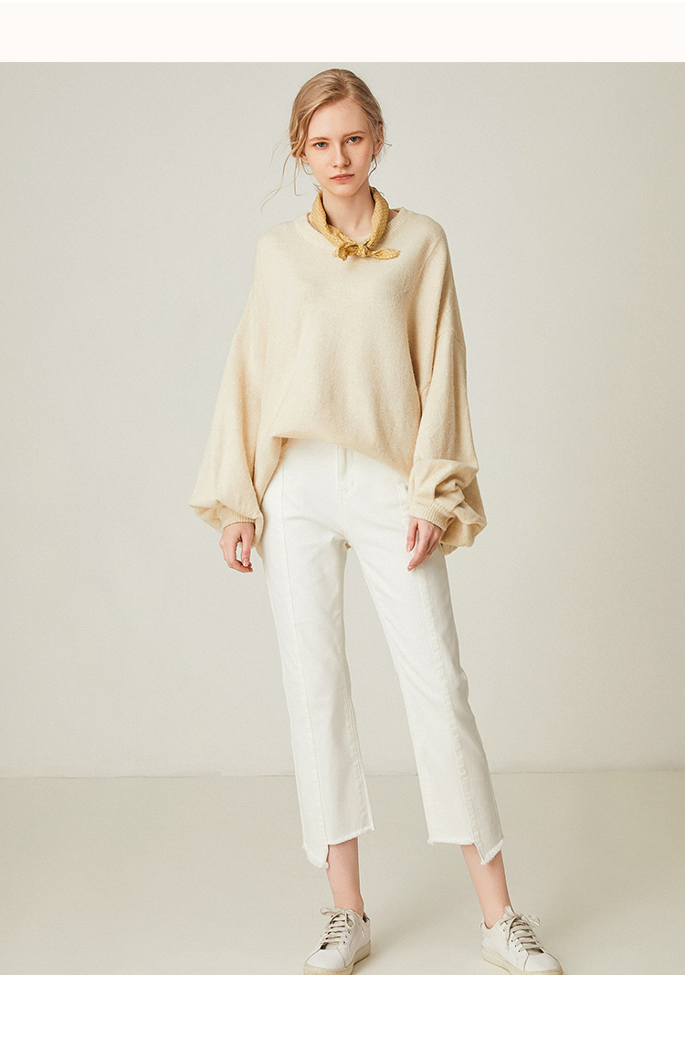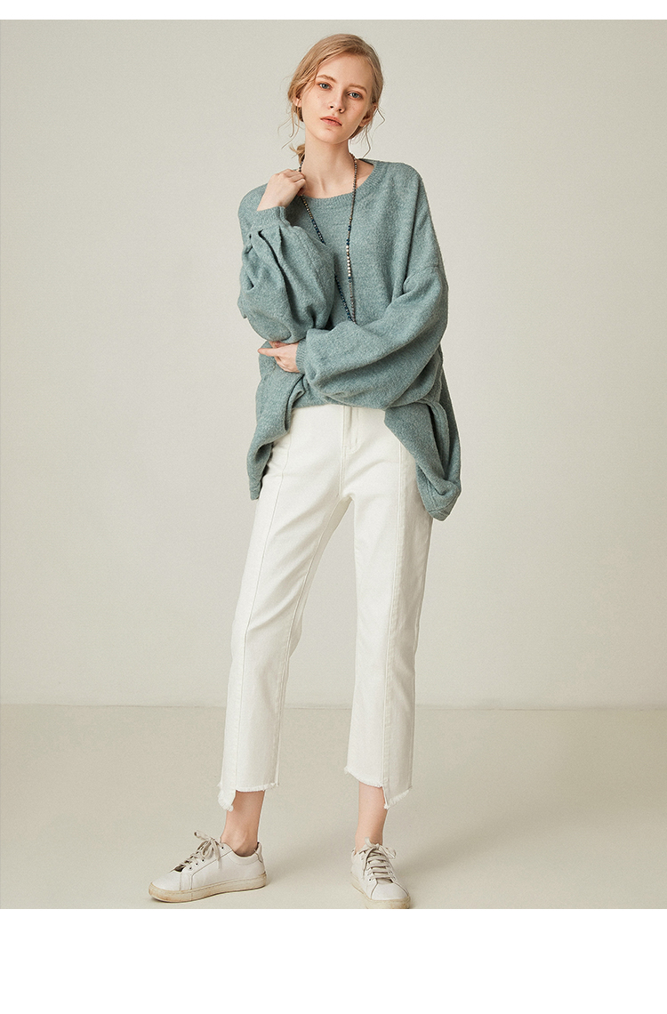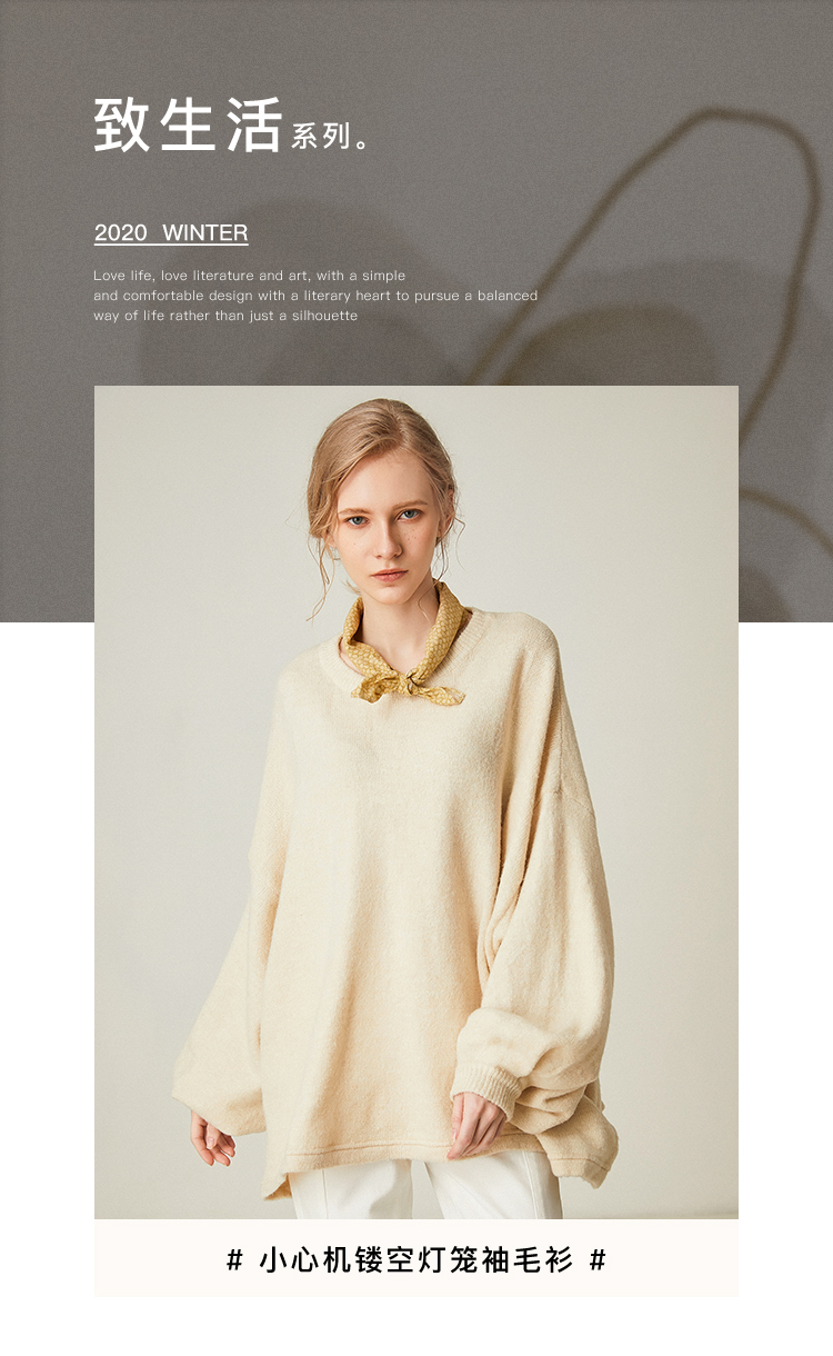 famecoco范可儿设计感慵懒风套头毛衣水滴袖针织衫F191DB128