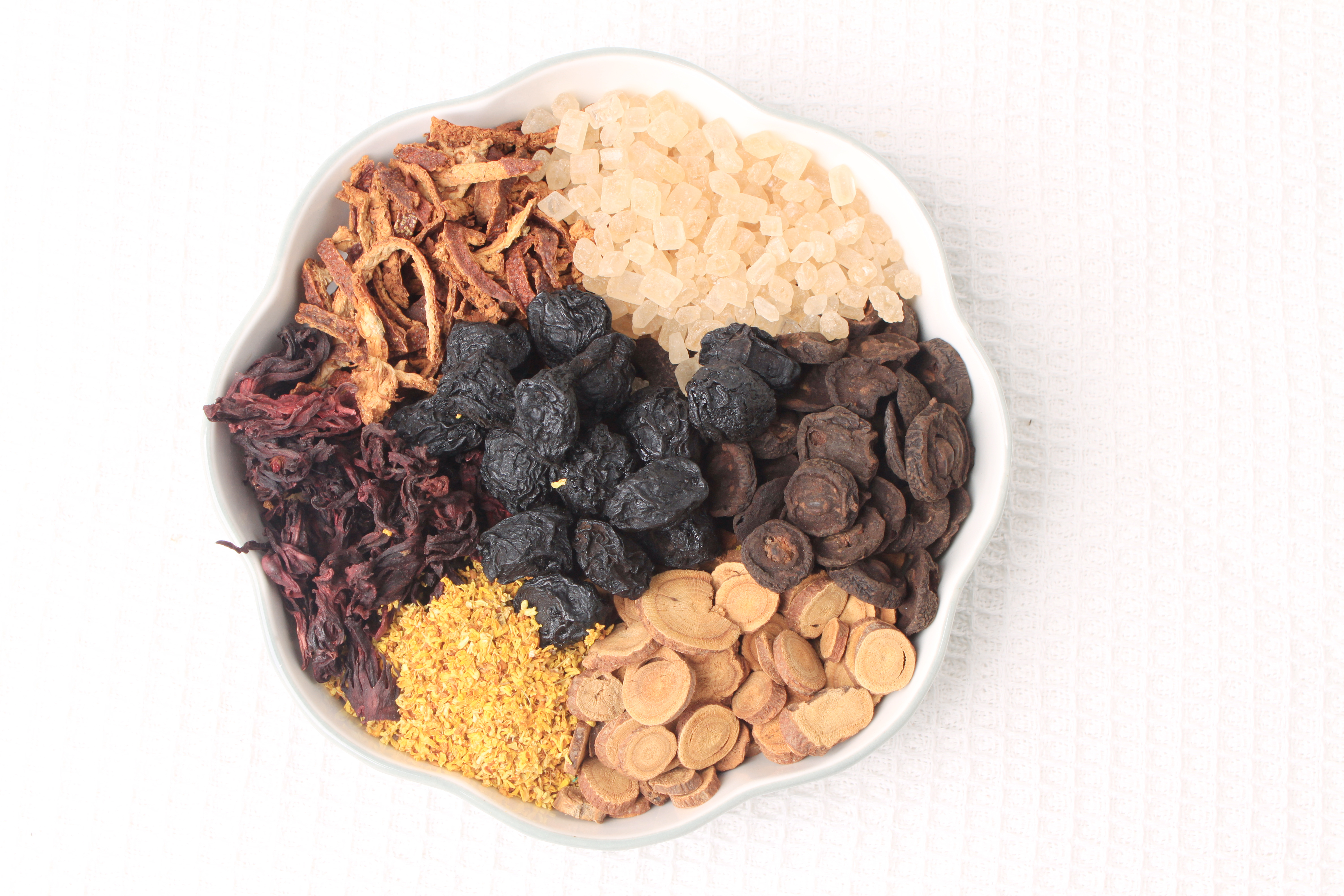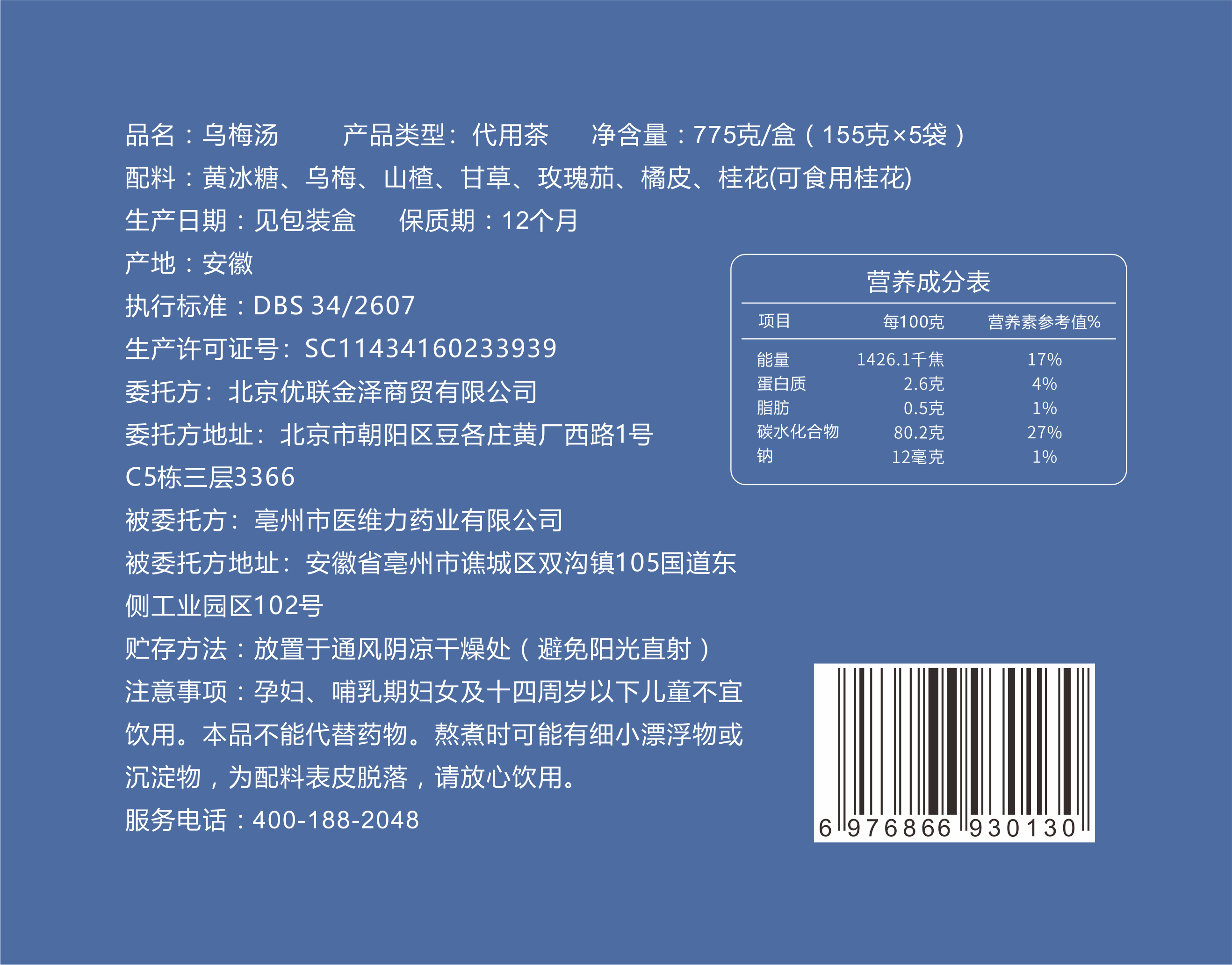 我们把原料分开包装,以适合各自口味的轻重。可以用1000~1500毫升左右的水来煮一包乌梅汤料包(桂花干不能煮,是最后倒出来乌梅汤以后放的),煮30分钟~60分钟,然后撒上桂花倒入杯中,放入冰糖。不喜欢冰糖的可以加点蜂蜜。甜度随意,以自己合口为标准。解暑温度在45℃以下,饮用温度随意,链接身体~