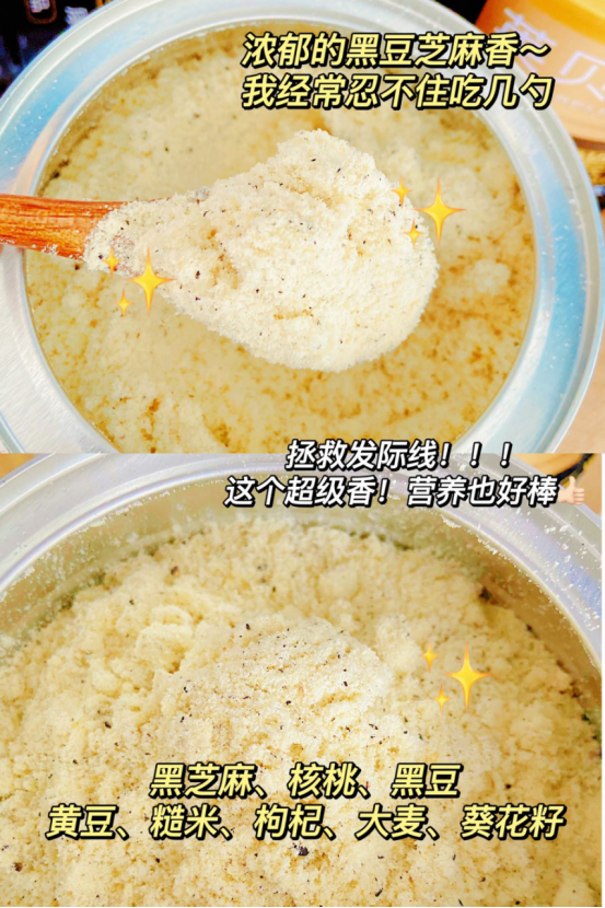 不同于市面上一般的芝麻核桃黑豆粉哦~ 黑豆味和芝麻味浓郁,喝了还想喝🥛🥛 一冲泡盖香气扑鼻🤩喝一口爽滑香甜💓