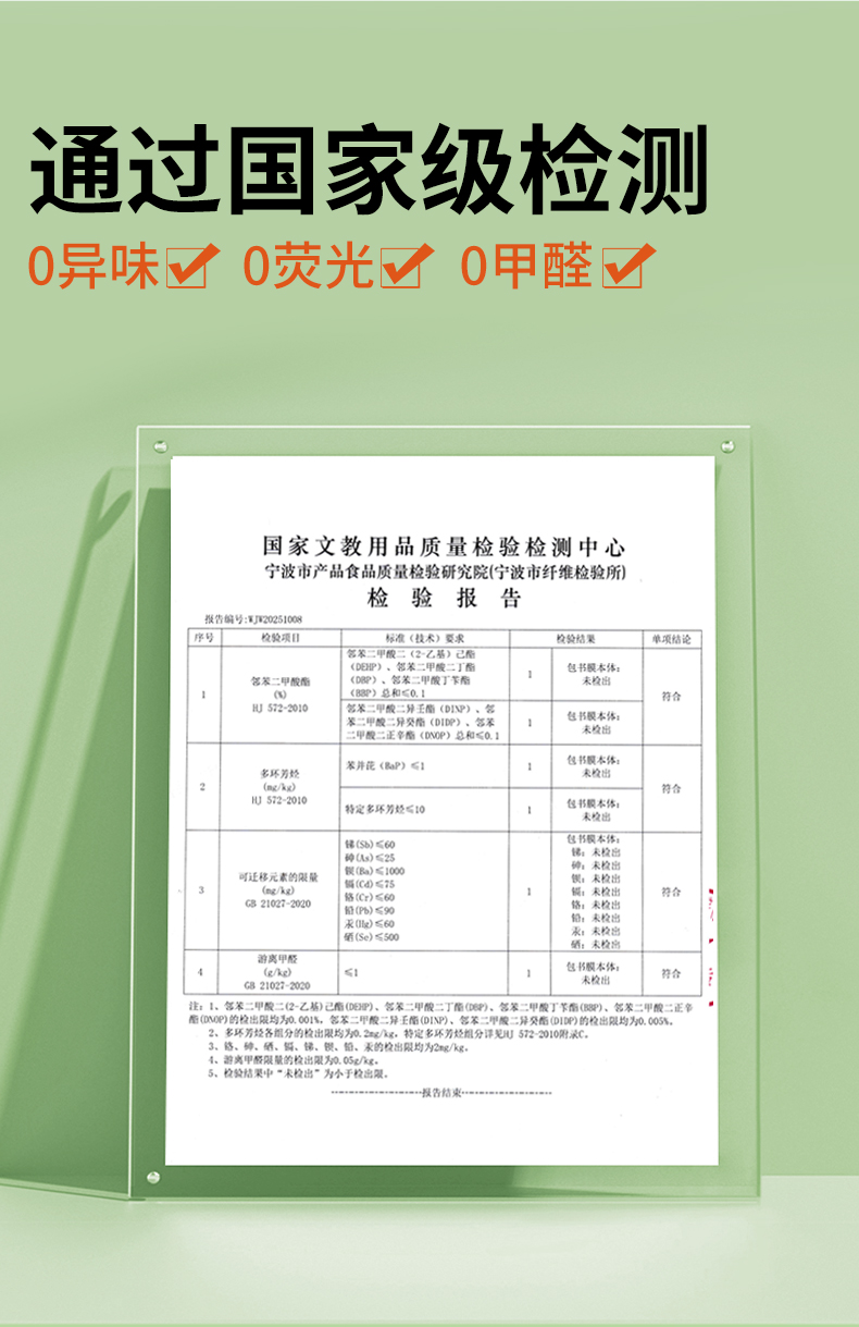 ✅实验室检测报告认证,没有异味,不含领苯等重金属有毒物质,守护孩子的健康;