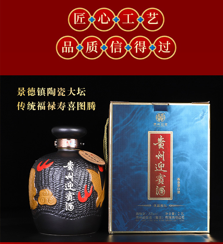 热卖中!!【贵州老字号 中国绵柔酱香酒标准制定者】贵州迎宾酒·优品酱坛2.5L 53°酱香型白酒
