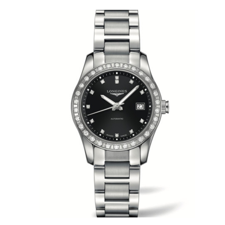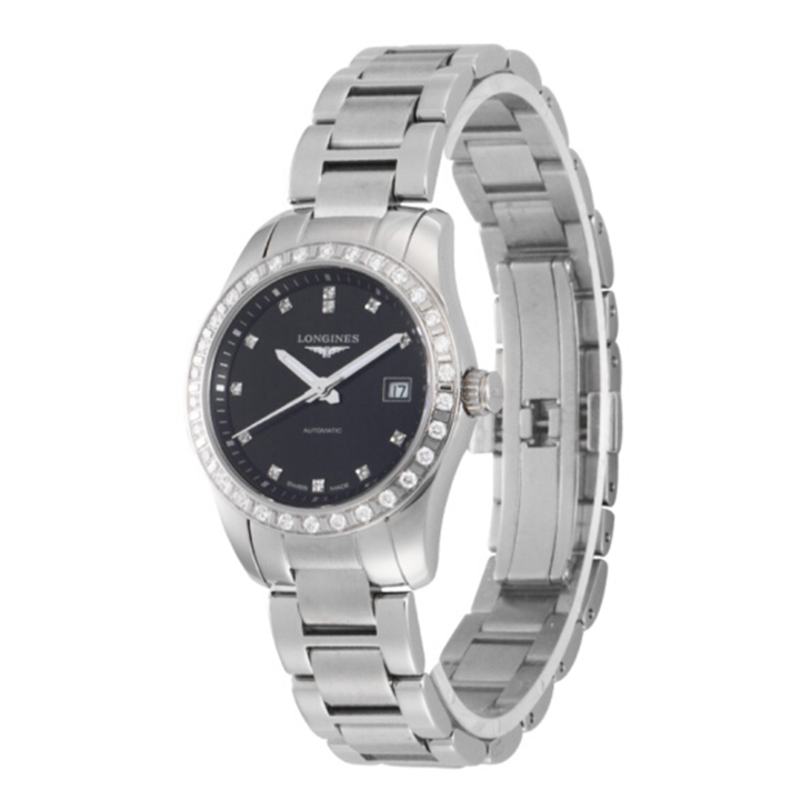 镜面 材质 | 蓝宝石水晶玻璃 | 表盘 | 精钢表壳,镶钻表圈 黑色表盘,镶钻时标,Super-LumiNova®夜光指针,镀银抛光指针。 大三针 日期显示 透底 |