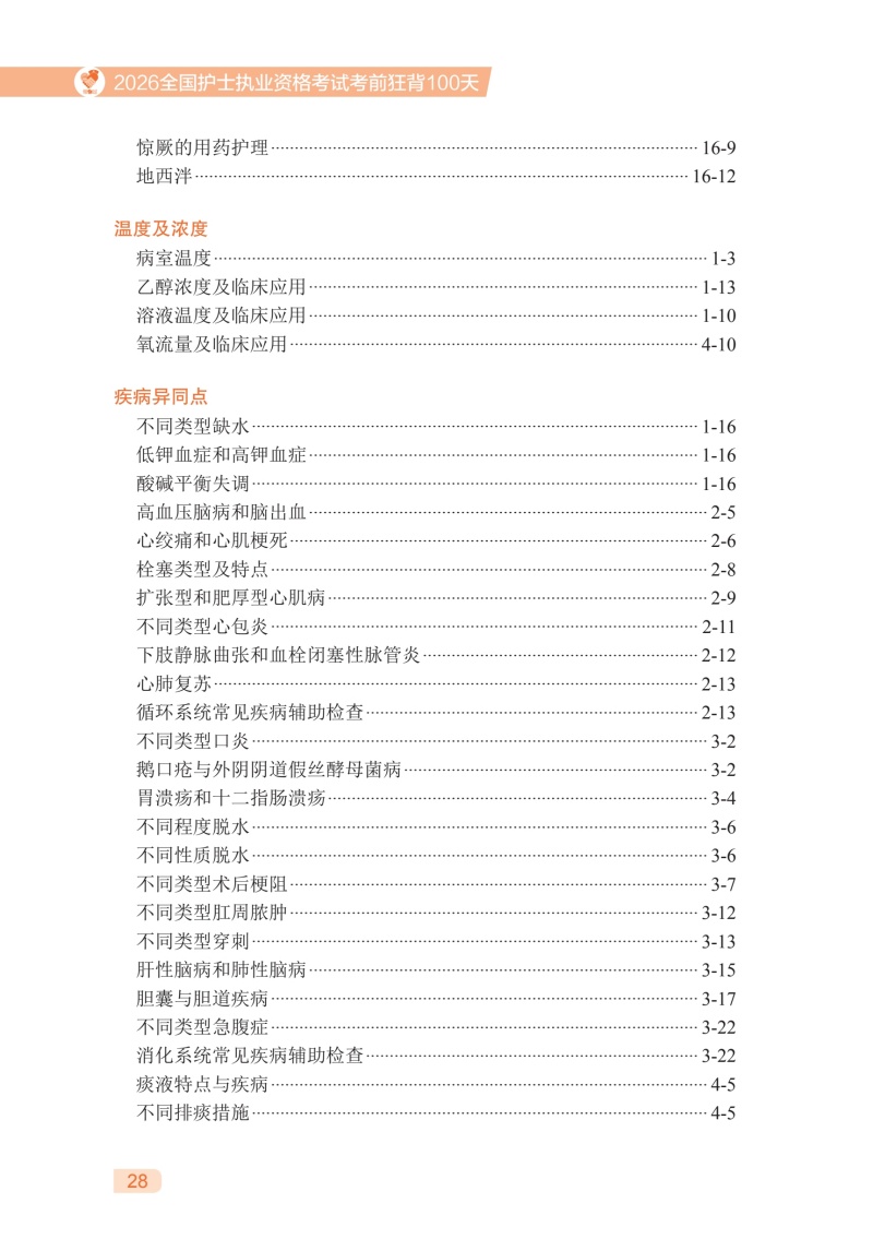 全书以《2026全国护士执业资格考试指导》为蓝本,紧密围绕新考试大纲编写。每章分为“考情分析”“核心考点”两个模块。“考情分析”模块明确每章重要考点,分析各考点在近几年考题中的考查比例,为考生提示重点难点。“核心考点”模块提炼重要高频考点,并配有丰富的应试口诀及典型试题,帮助考生花很少的时间突破护考难关,顺利过关。本书为满足考生临床实习期间随时便捷复习的需求而策划。打破学科之间的壁垒,将人体作为一个有机整体,把相关凌乱的考点凝炼融合在一起,用深入浅出的语言解释复杂的知识,使知识点变得简单易懂。将复杂的、难以记忆的知识点编成朗朗上口的歌诀,韵律化的语言可提高记忆效果。知识点简洁直观、整齐有序,便于总结归纳、对比记忆。新增“玲姐速记”板块,一句话记住核心考点。