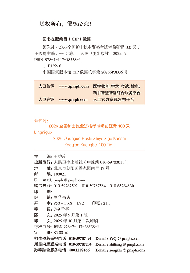 领你过 2026全国护士执业资格考试 考前狂背100天 王秀玲 新增“玲姐速记”板块 一句话记住核心考点 考试用书 人民卫生出版社