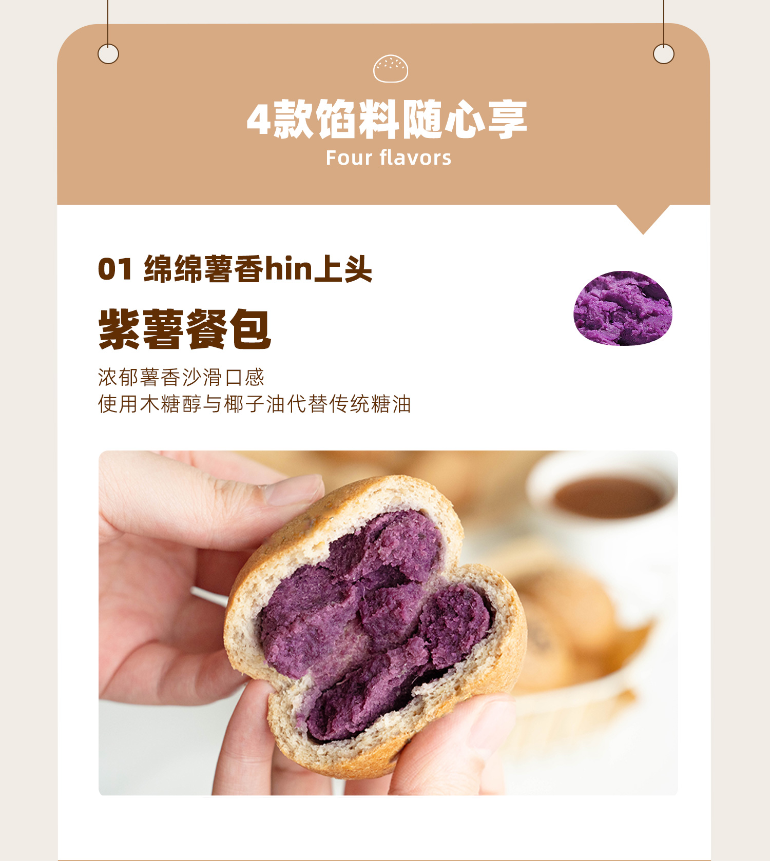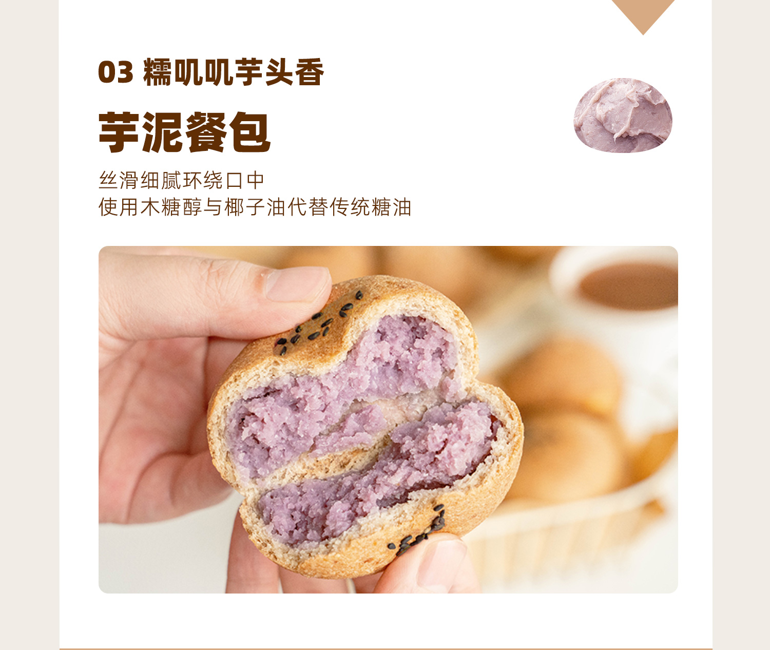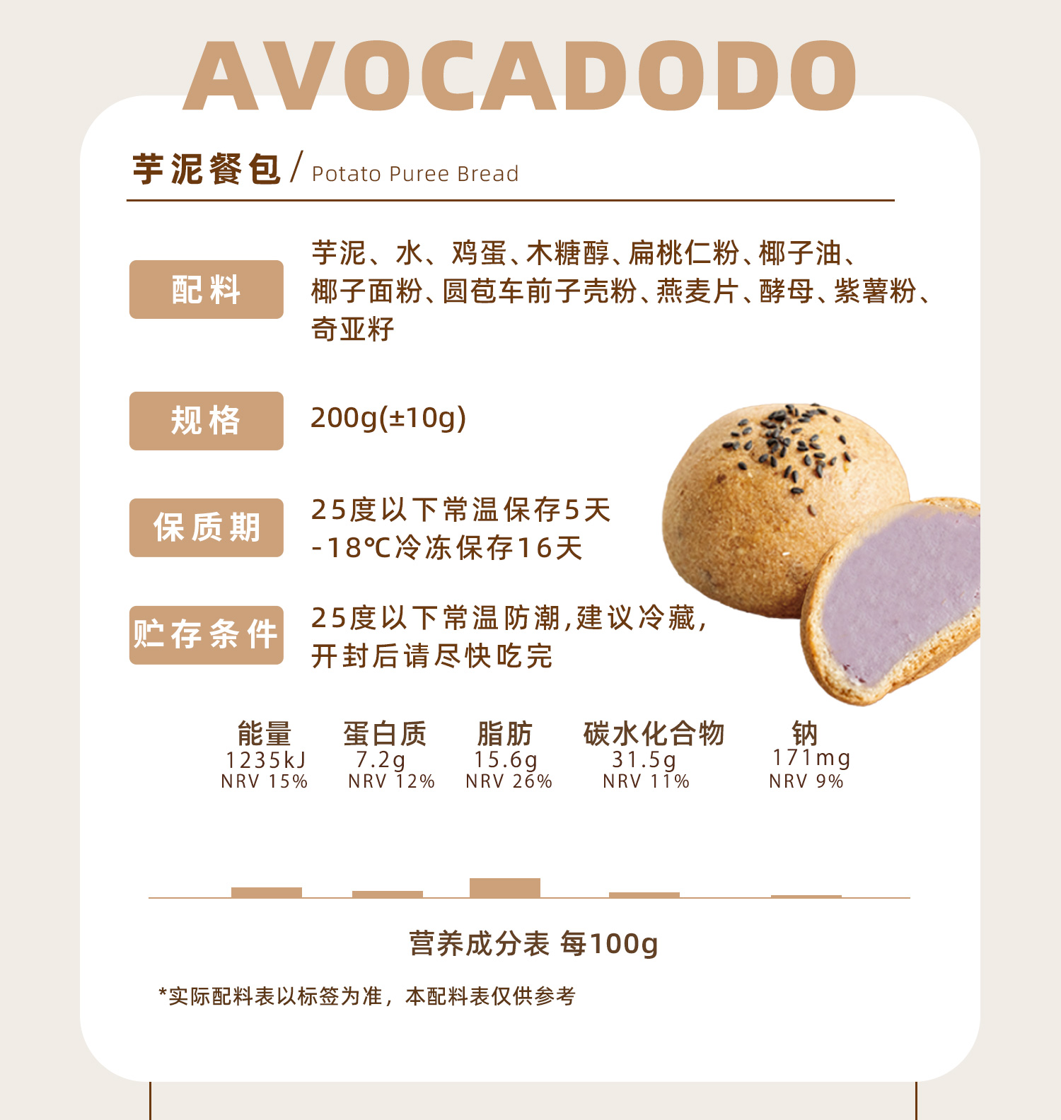 Avocadodo餐包芋泥紫薯椰蓉红豆3块面包不加奶小麦敏宝桥本早餐