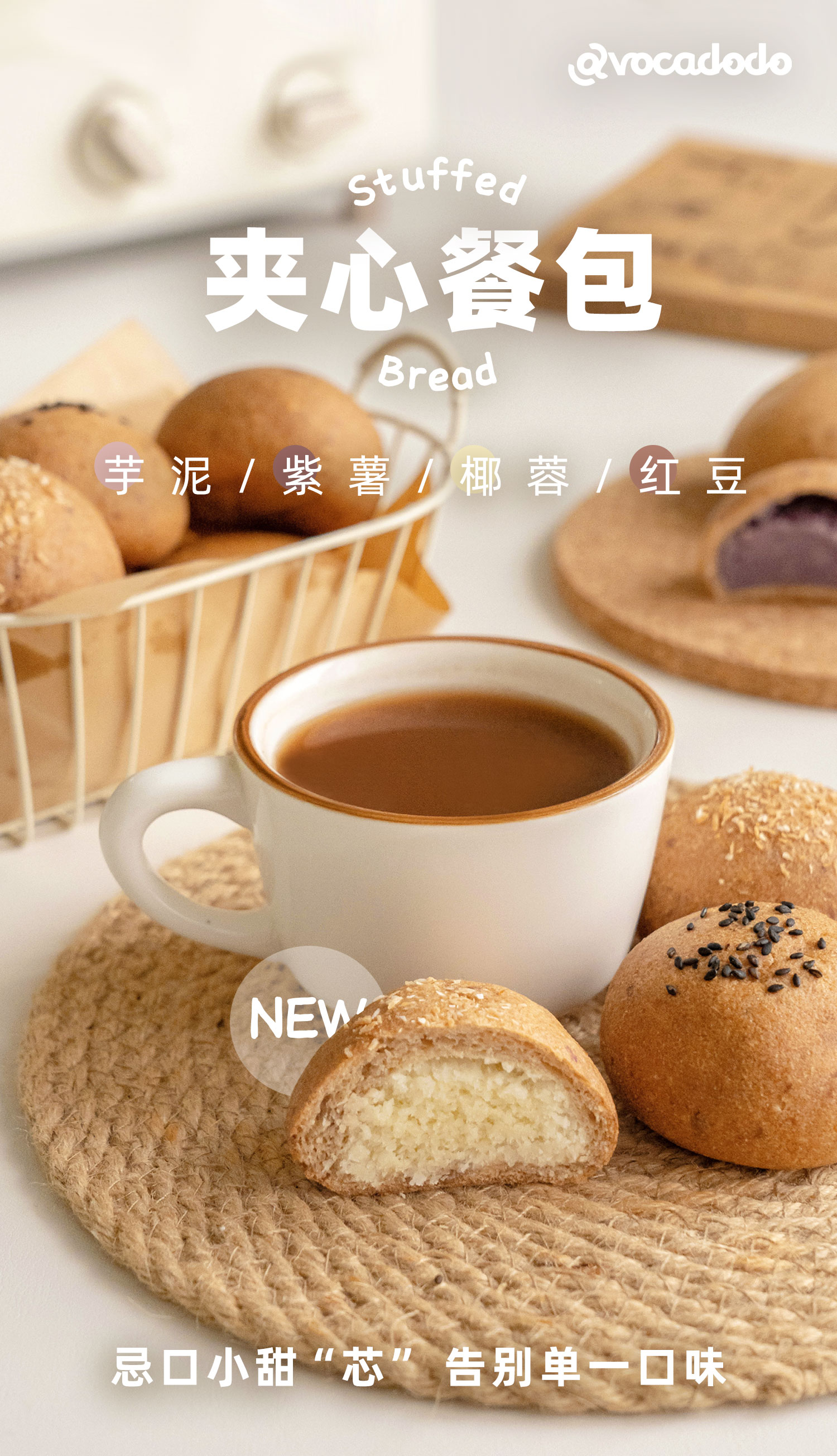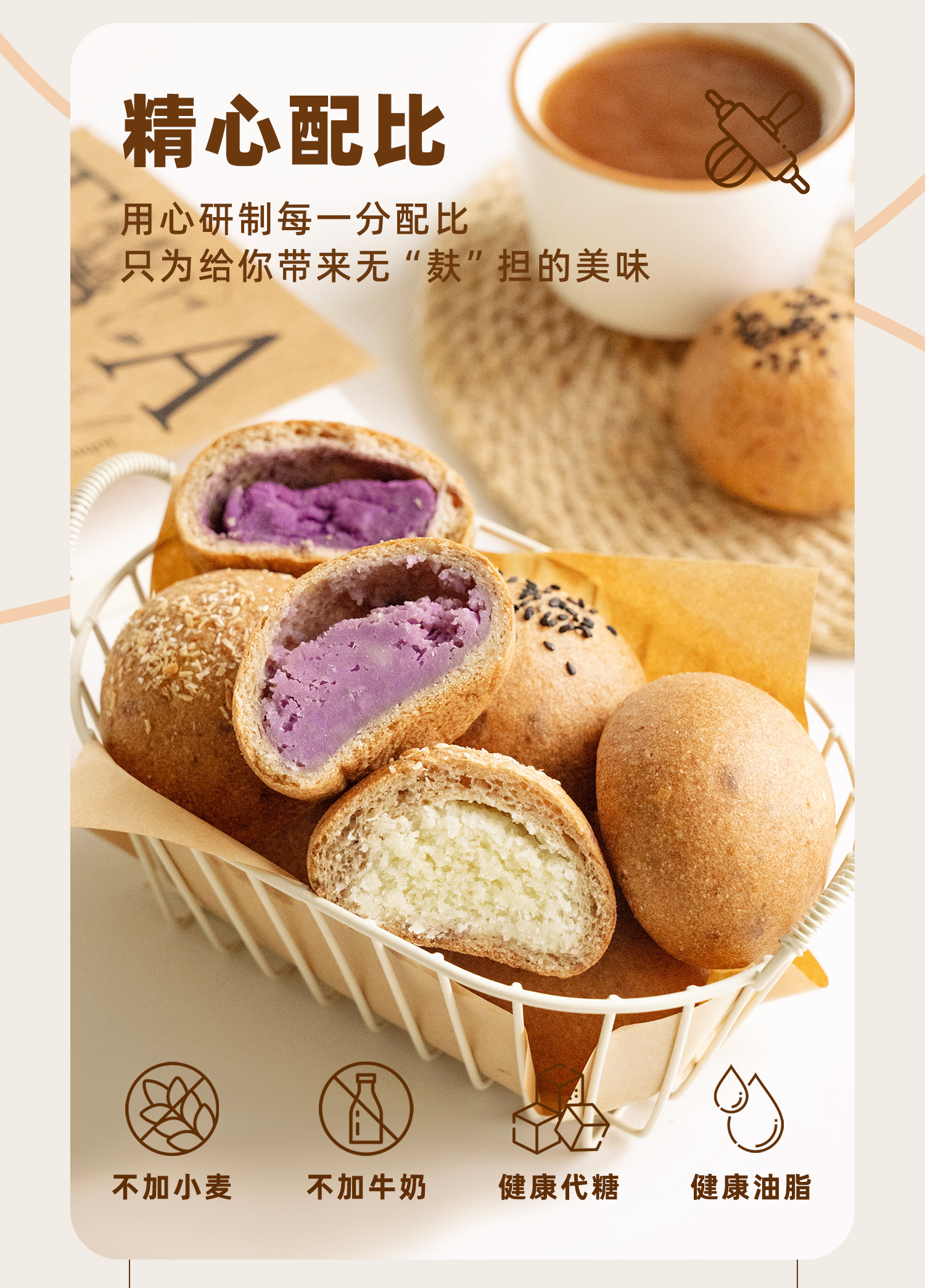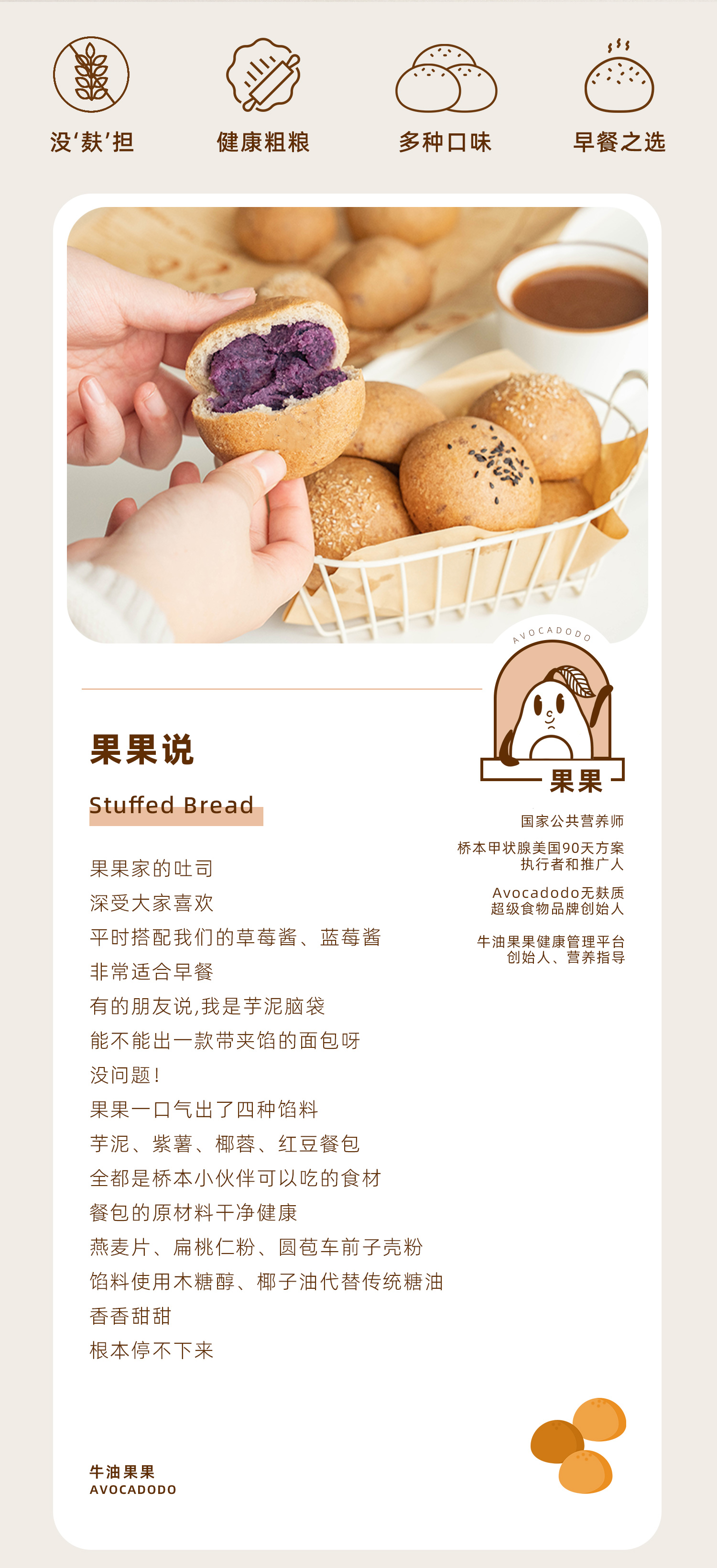 Avocadodo餐包芋泥紫薯椰蓉红豆3块面包不加奶小麦敏宝桥本早餐