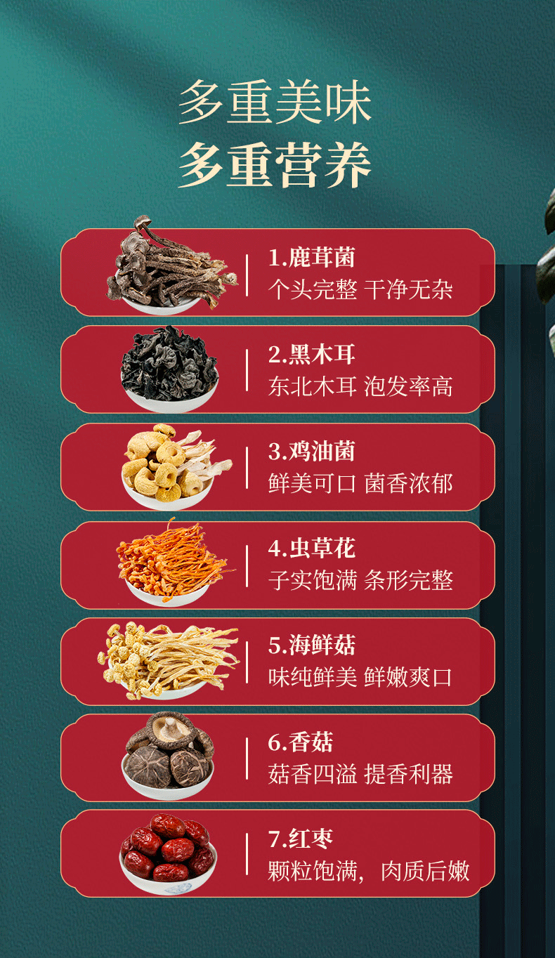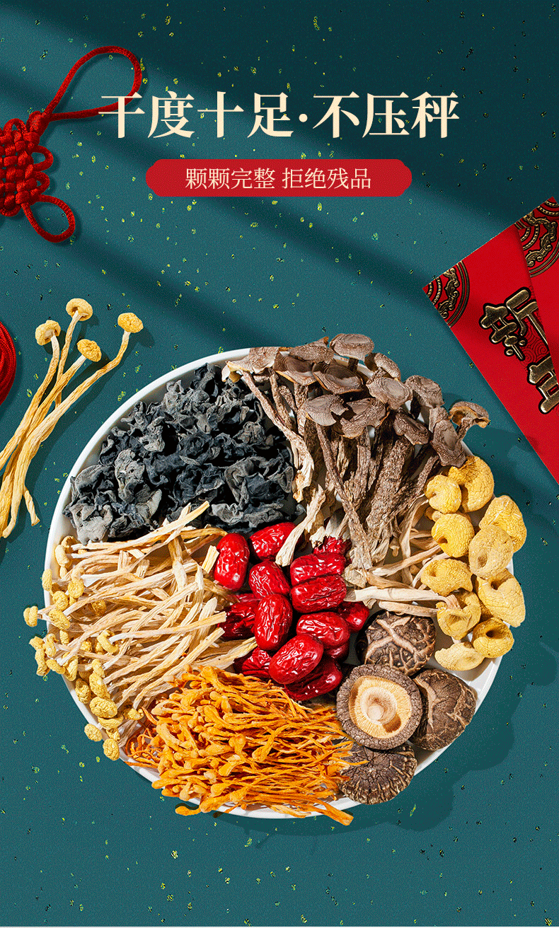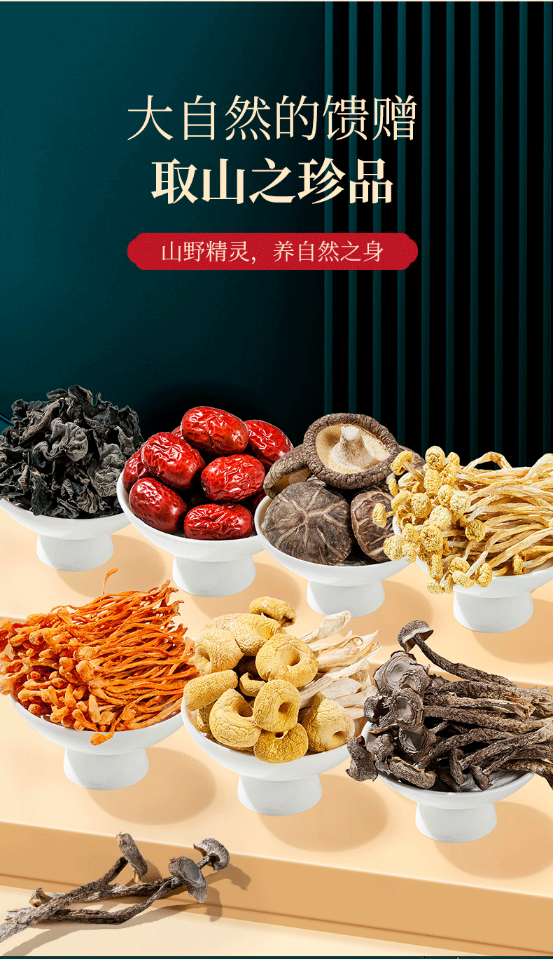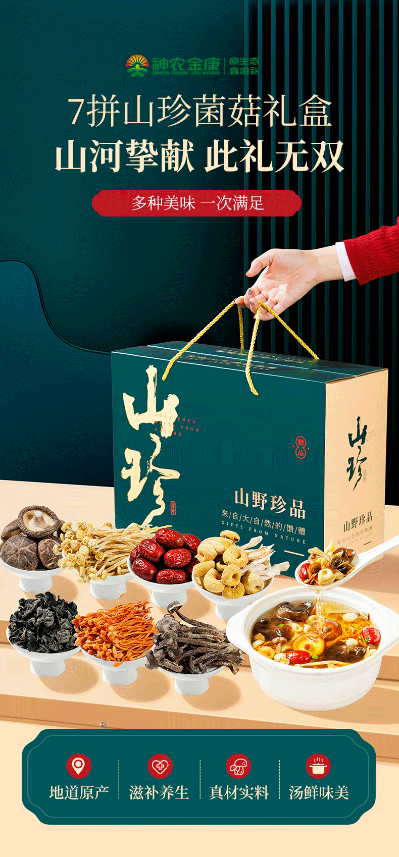 神农金康 七拼菌菇礼盒(鹿茸菌、黑木耳、鸡油菌、虫草花、海鲜菇、香菇、红枣)1120g 新中式滋补礼 原生态真滋补 喝护家人健康