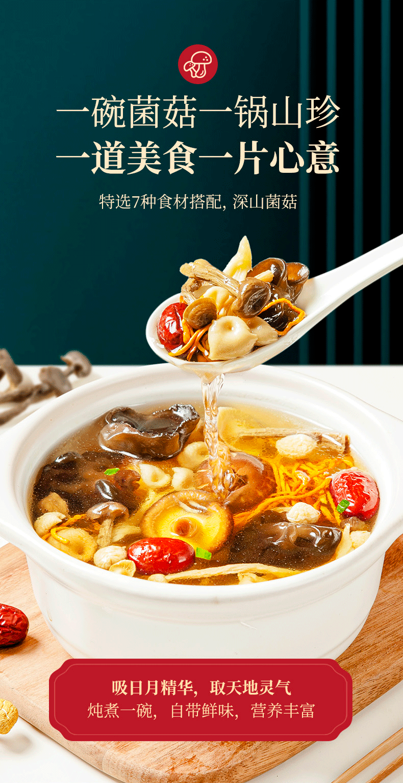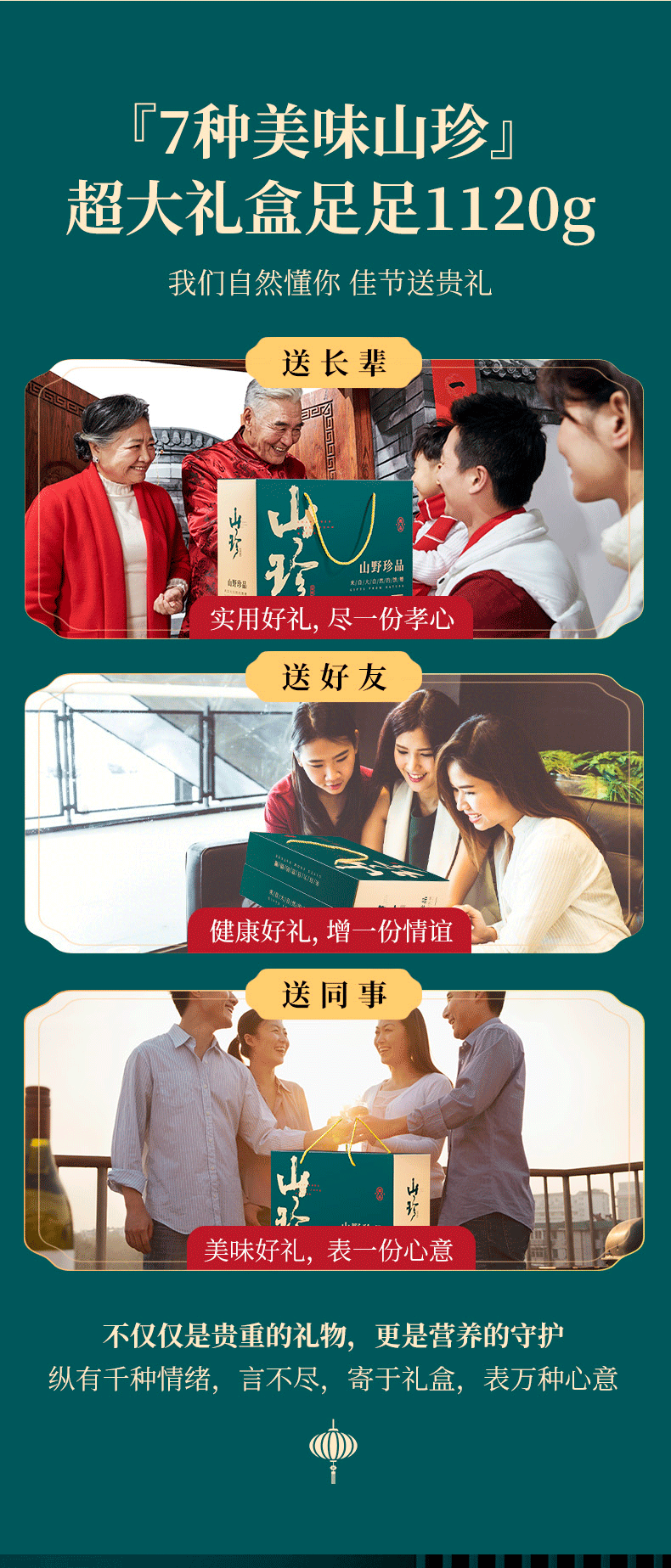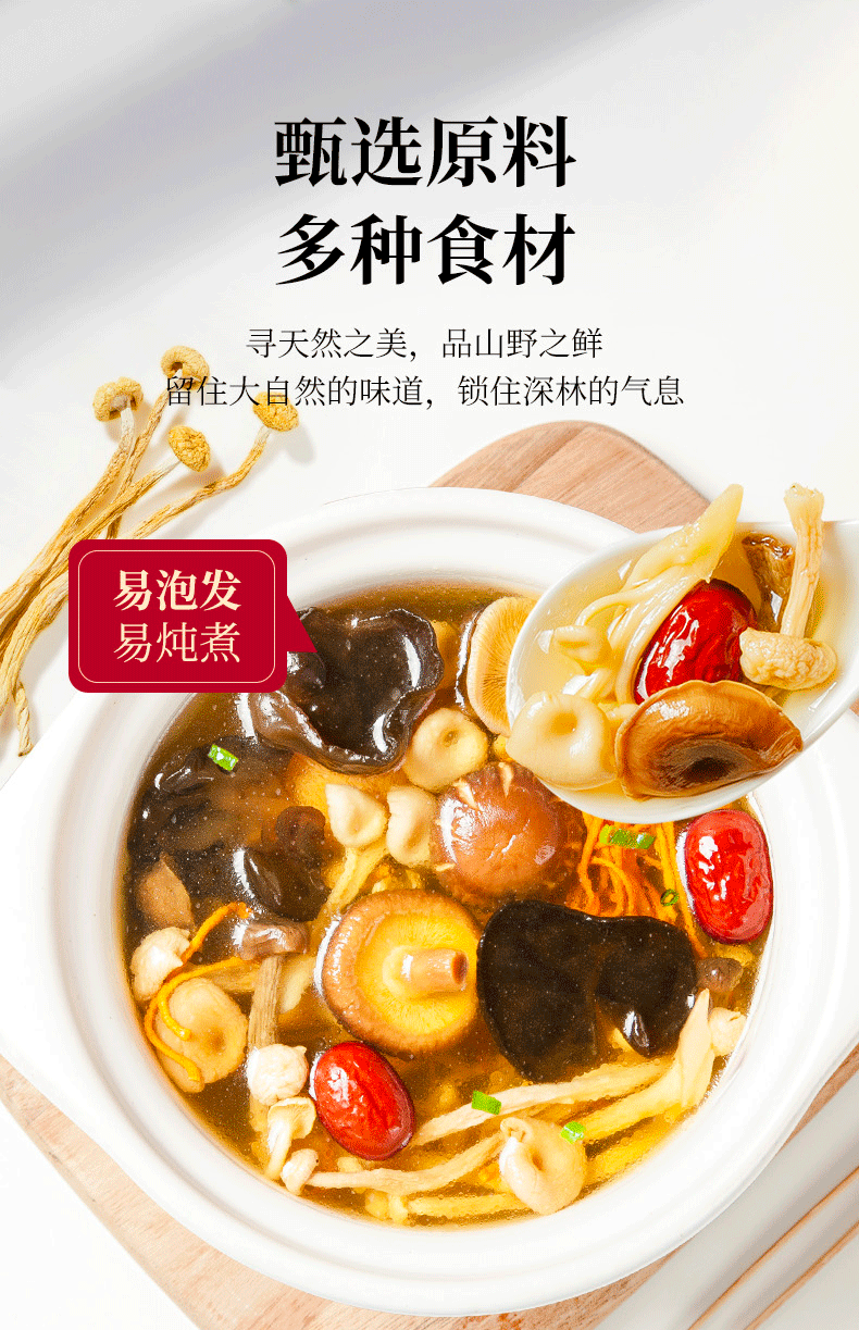 神农金康 七拼菌菇礼盒(鹿茸菌、黑木耳、鸡油菌、虫草花、海鲜菇、香菇、红枣)1120g 新中式滋补礼 原生态真滋补 喝护家人健康