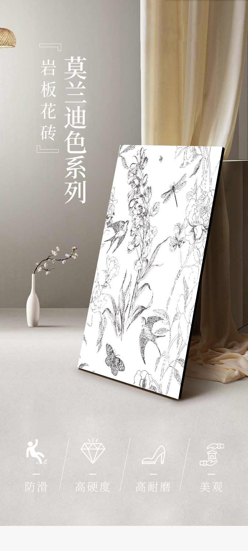 花砖瓷砖背景小燕子600x1200厕所卫生间浴室客厅侘寂风花片墙面砖 商品图3