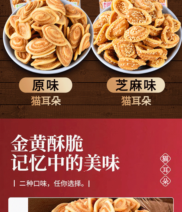 【分享装❗️50包只要🔥猫耳酥】采用传统油炸起酥工艺,层层折叠揉制,造就轻薄酥脆的口感,香而不腻,久吃不口干,小包装零食芝麻脆网红爆款整箱休闲小吃货食品QQ