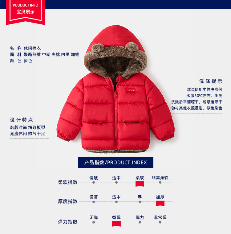 【男女童连帽羽绒服】加厚儿童棉衣 宝宝休闲连帽加绒外套 童装棉服