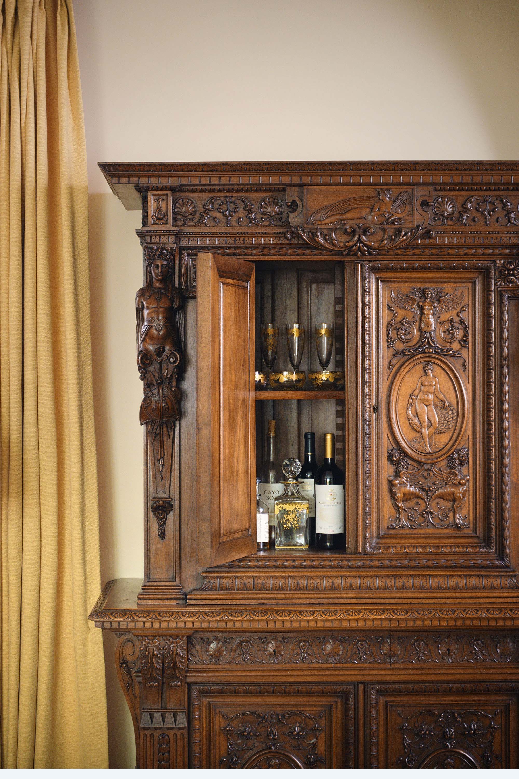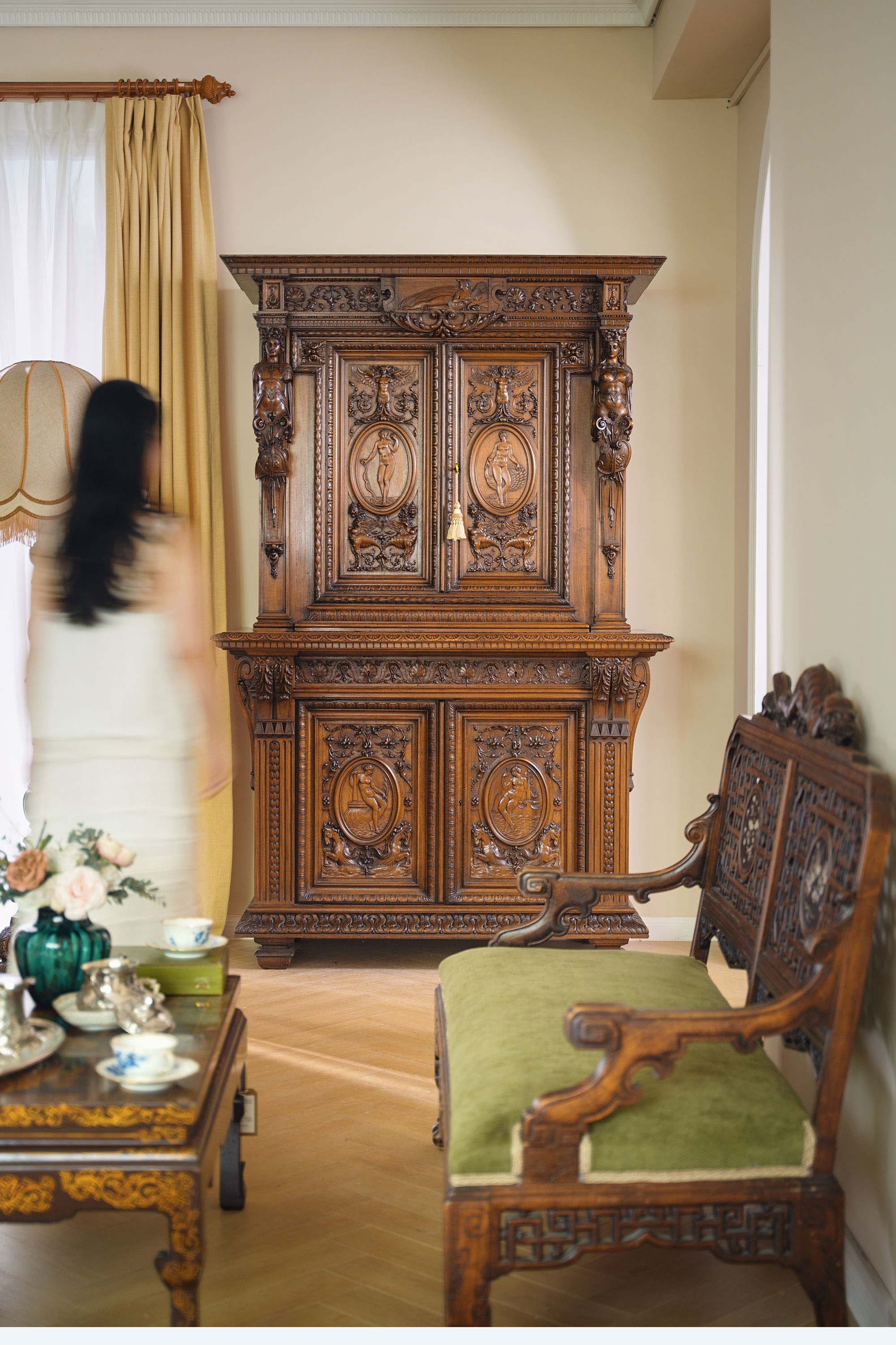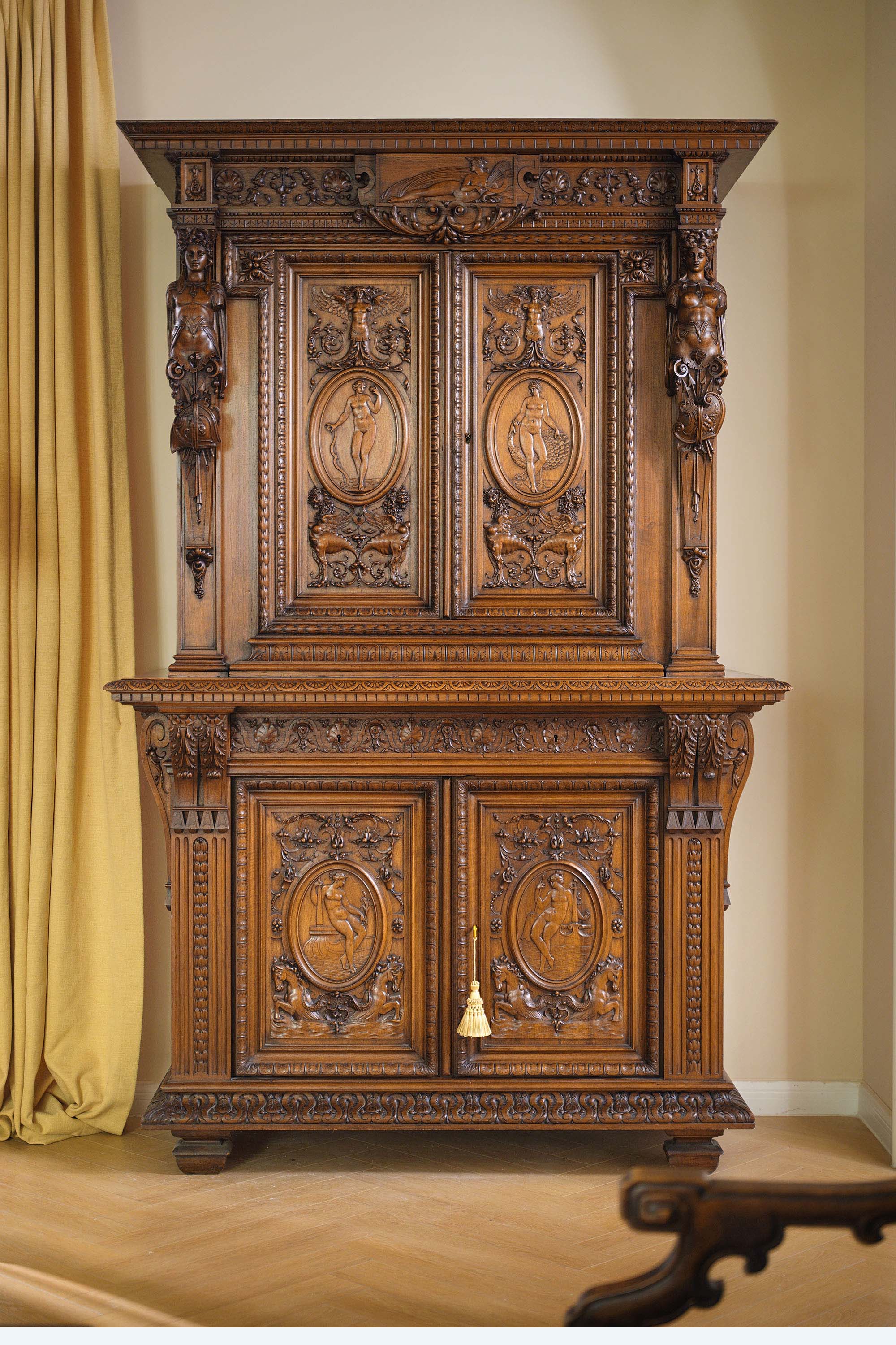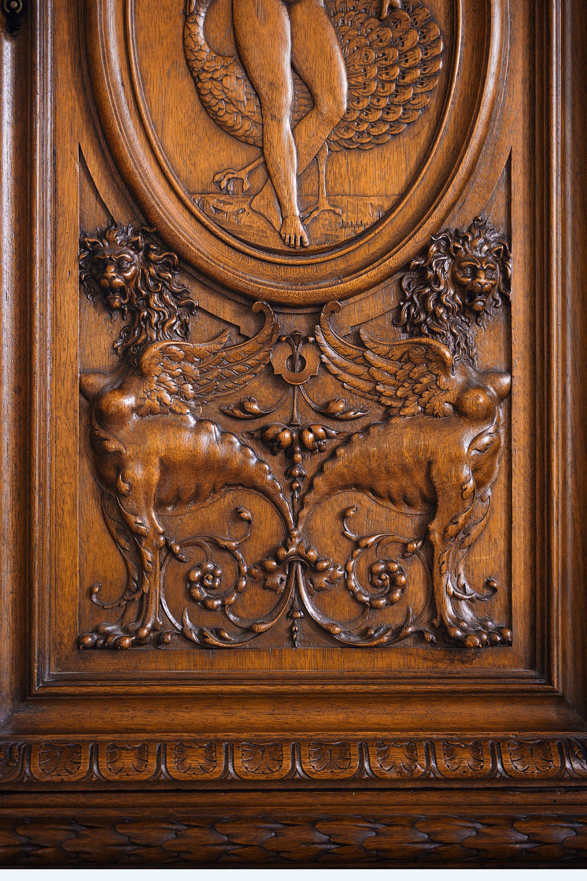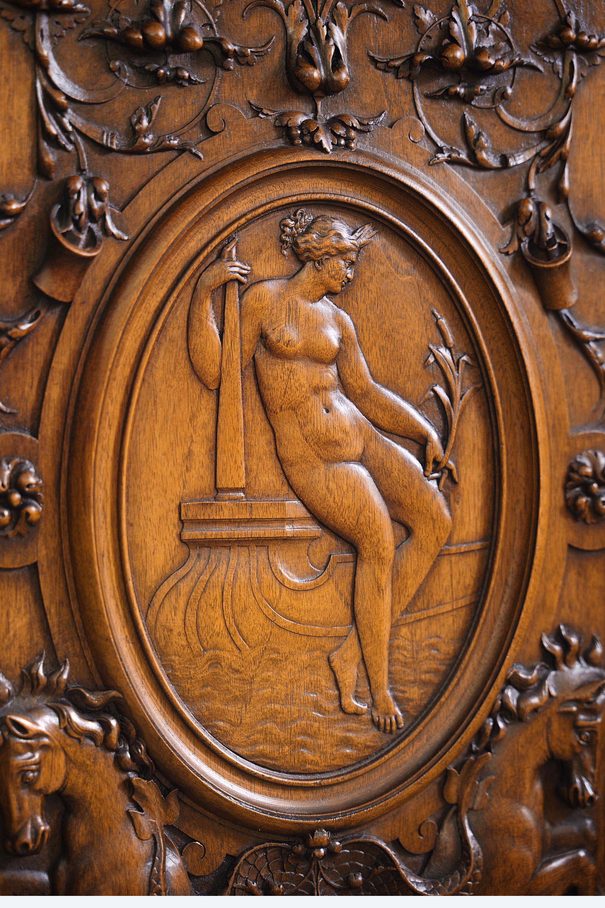 1880年代法国出品新文艺复兴风格古典女神主题胡桃木精雕大型边柜