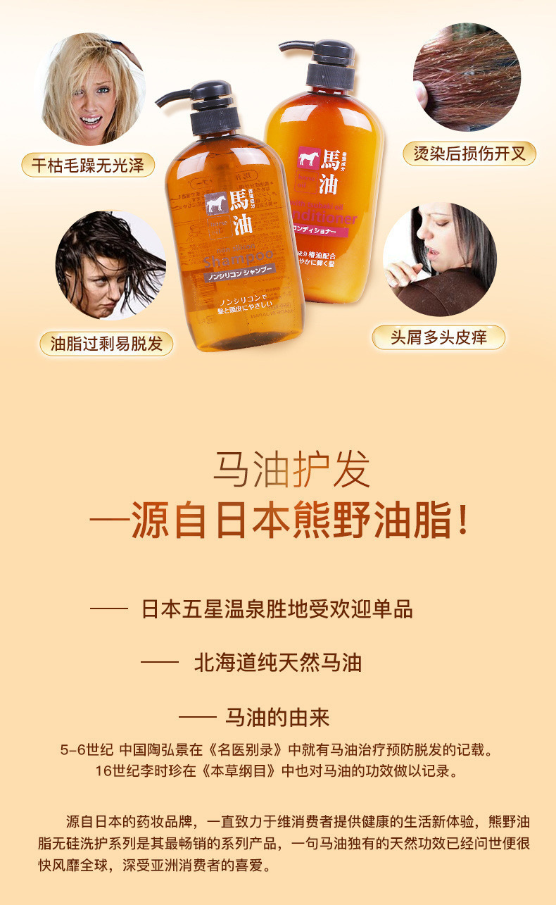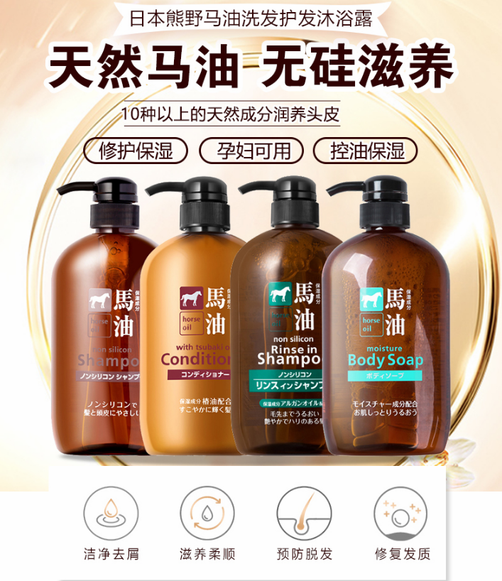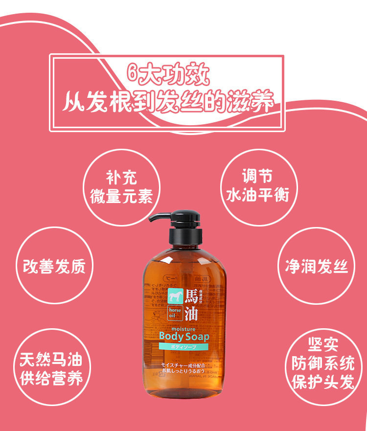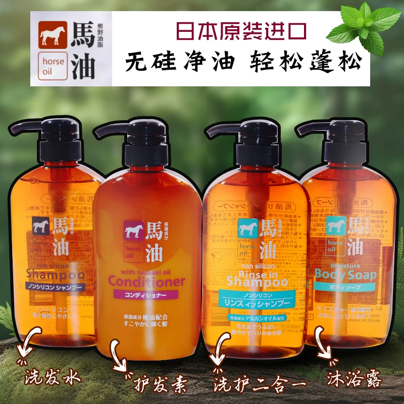 日本原装进口马油洗护二合一洗发水沐浴露护发素滋润肌肤清爽头发600ml
