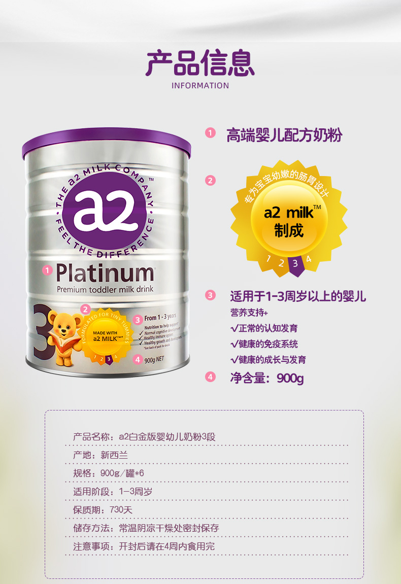 HNMG 澳洲a2白金系列婴幼儿奶粉 3段(1-3岁)900g