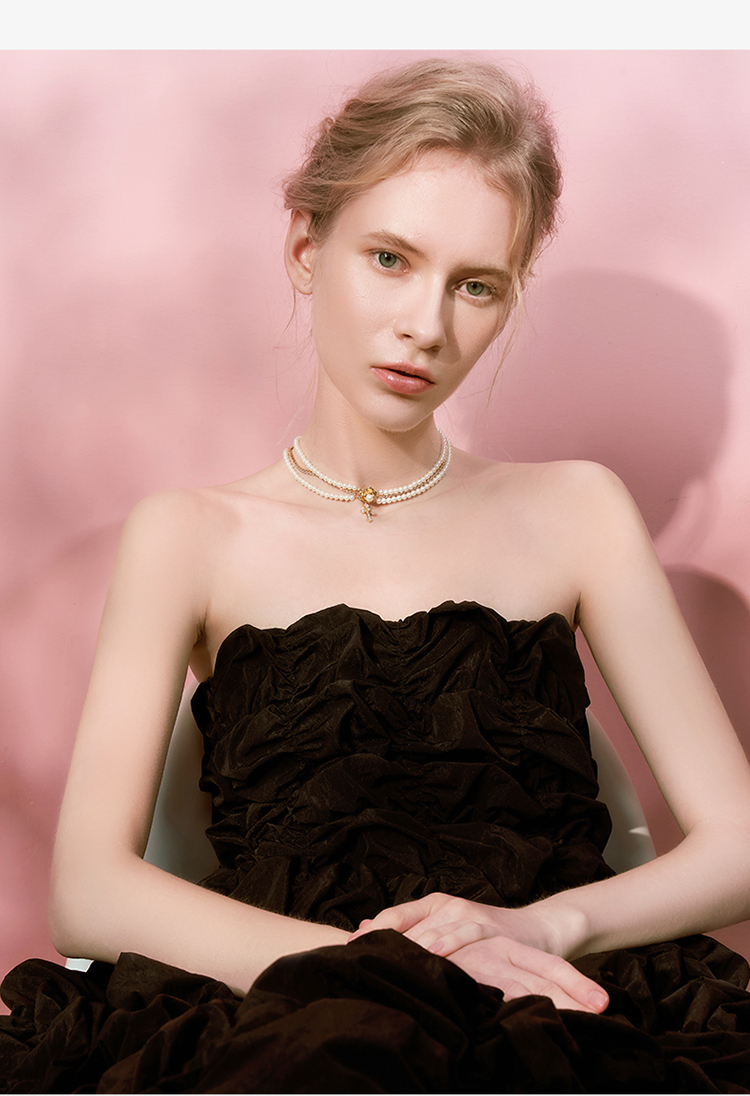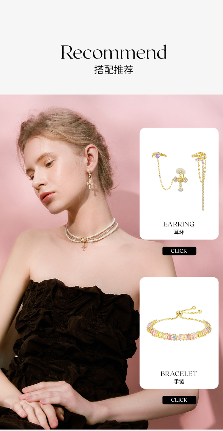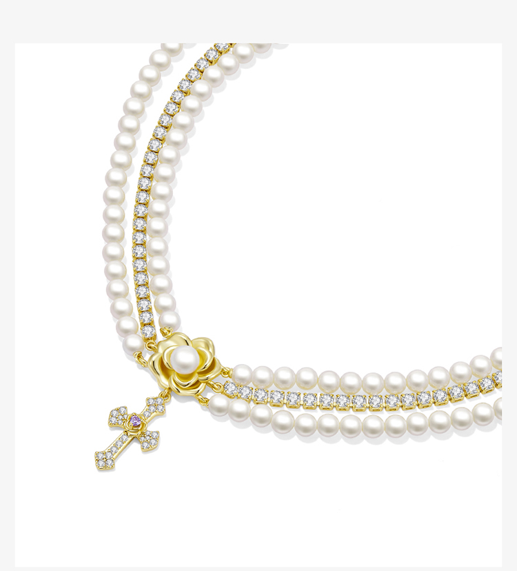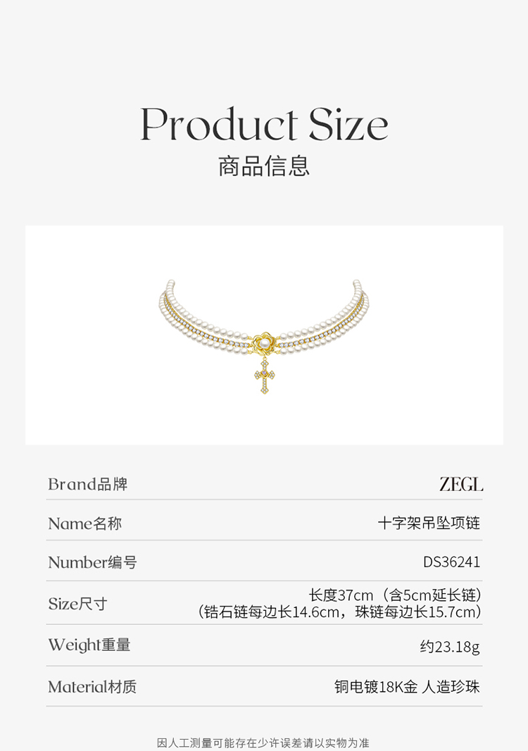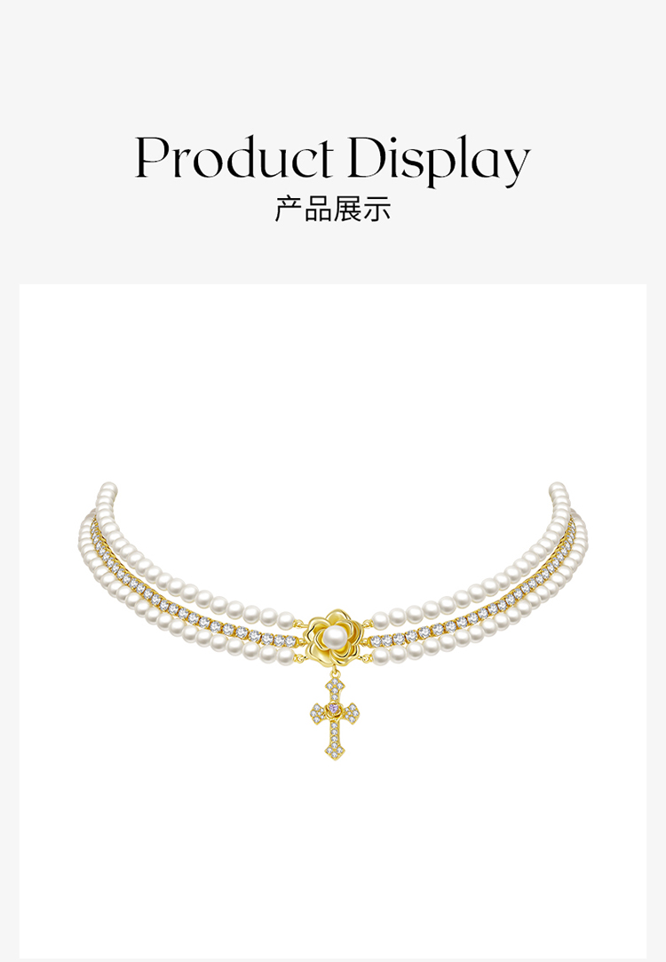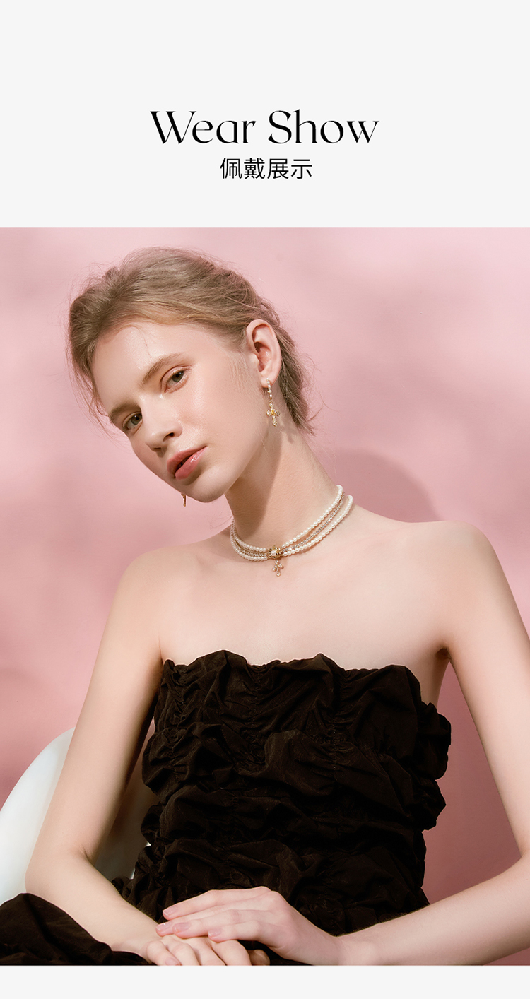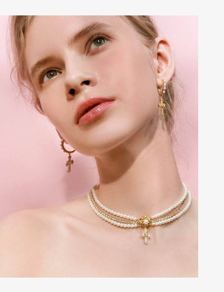 ZEGL设计师十字架系列巴洛克人造珍珠叠戴项链女法式复古锁骨颈链