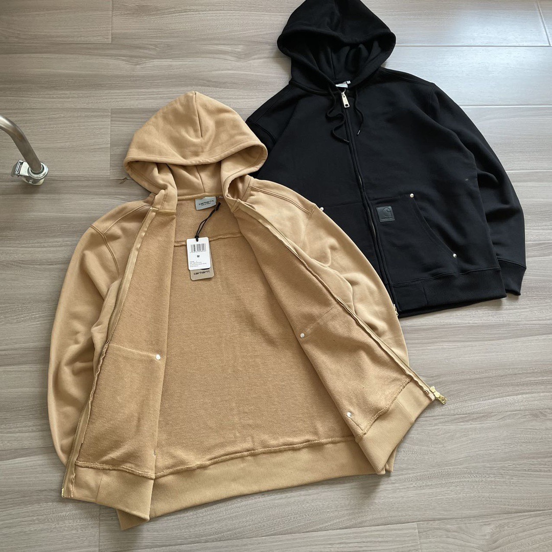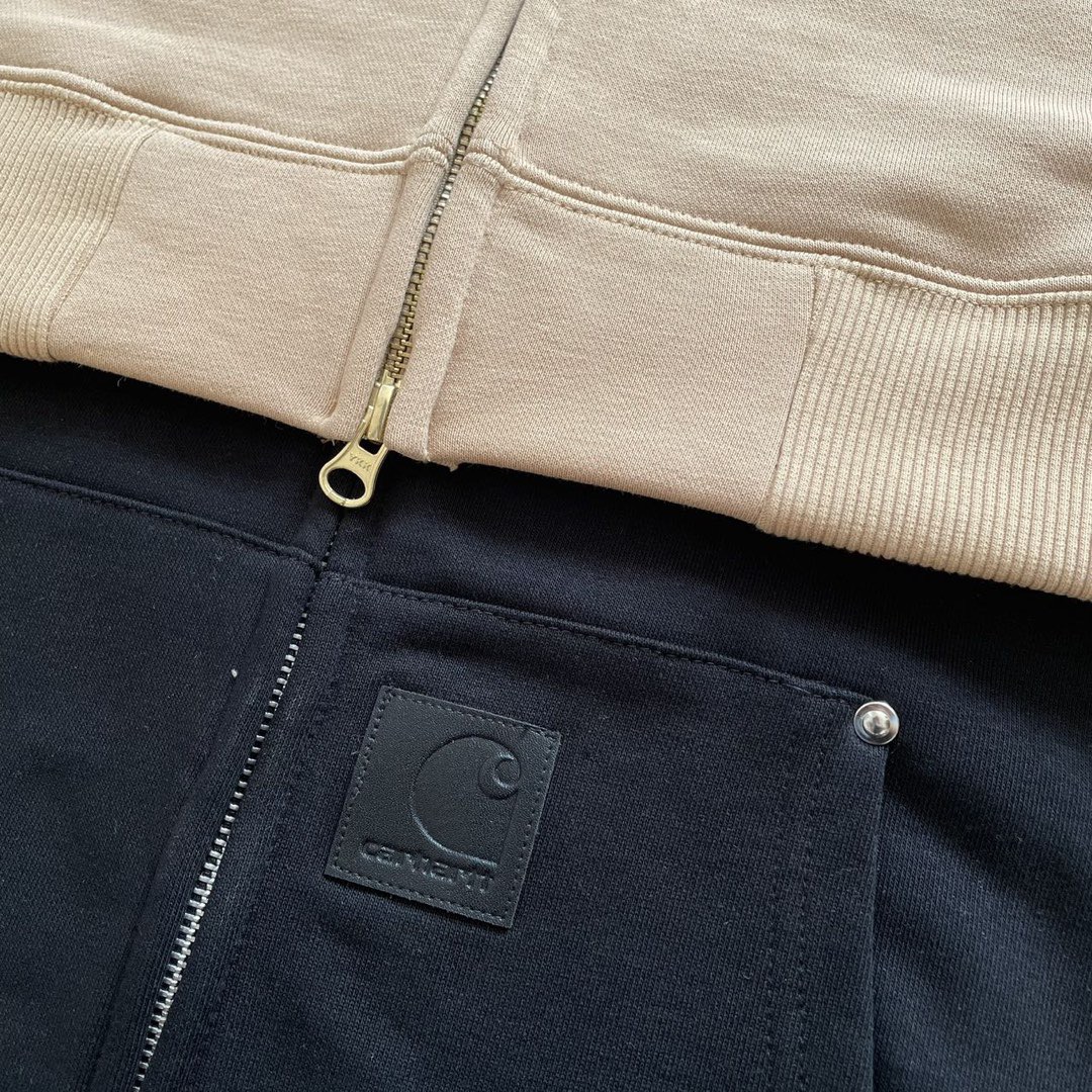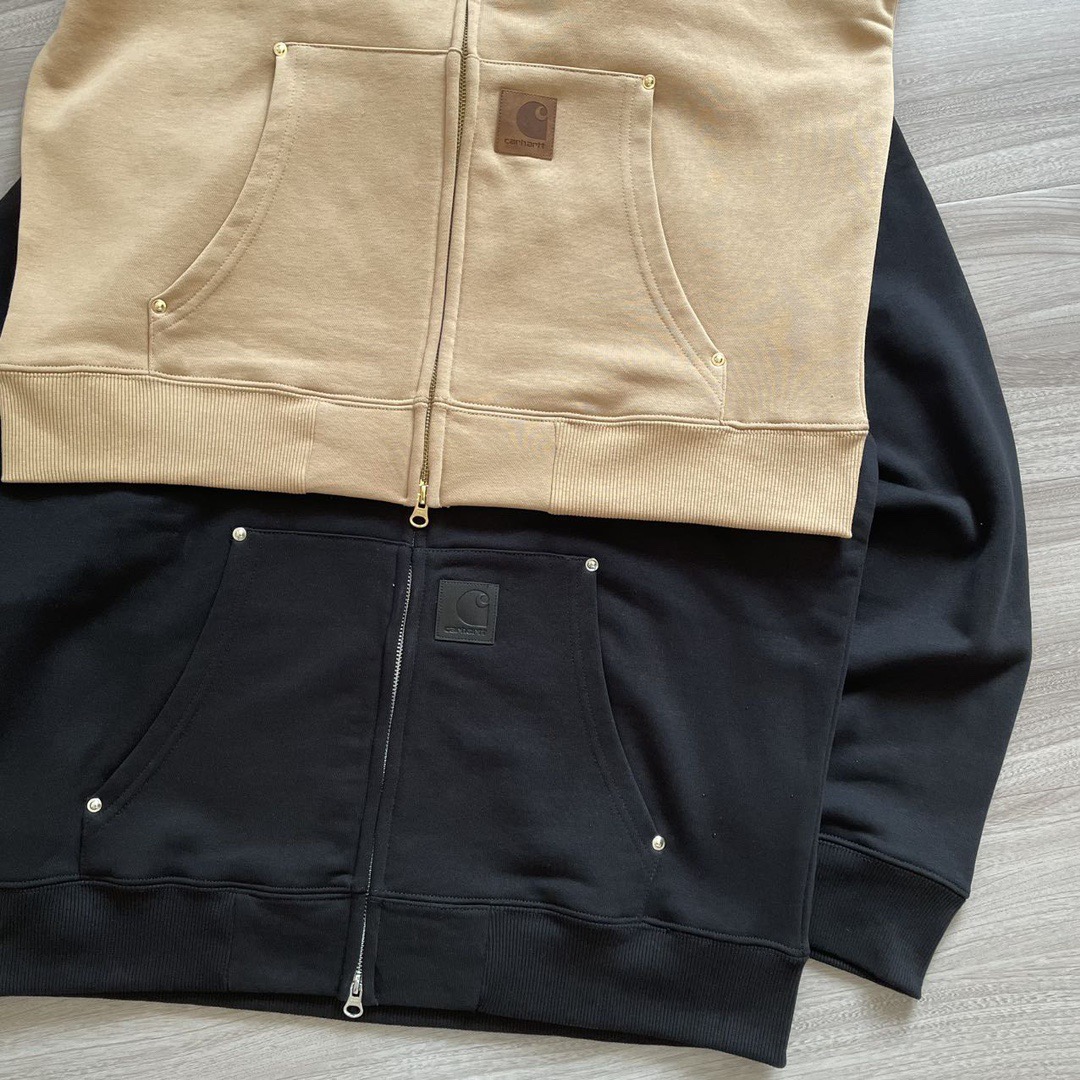 2025年秋冬430克全棉毛圈重磅新款Carhartt WIP系列皮标铆钉加厚外套,作为欧洲市场的专供系列依然秉承卡哈特的核心点:品质,耐久和舒适,全拉链开身的连帽卫衣造型,经典工艺很符合卡哈特的风格,并且融入了多种色彩的选择使其拥有了十足的街头味道,也承载了品牌的辨识度,甚至在秋冬部分时段当作外套穿着,耍帅且不失温度,真正的重磅单品,既有粗旷的工装特性,又能横行于潮流,而且坚信很多的达人正缺少一件卫衣。