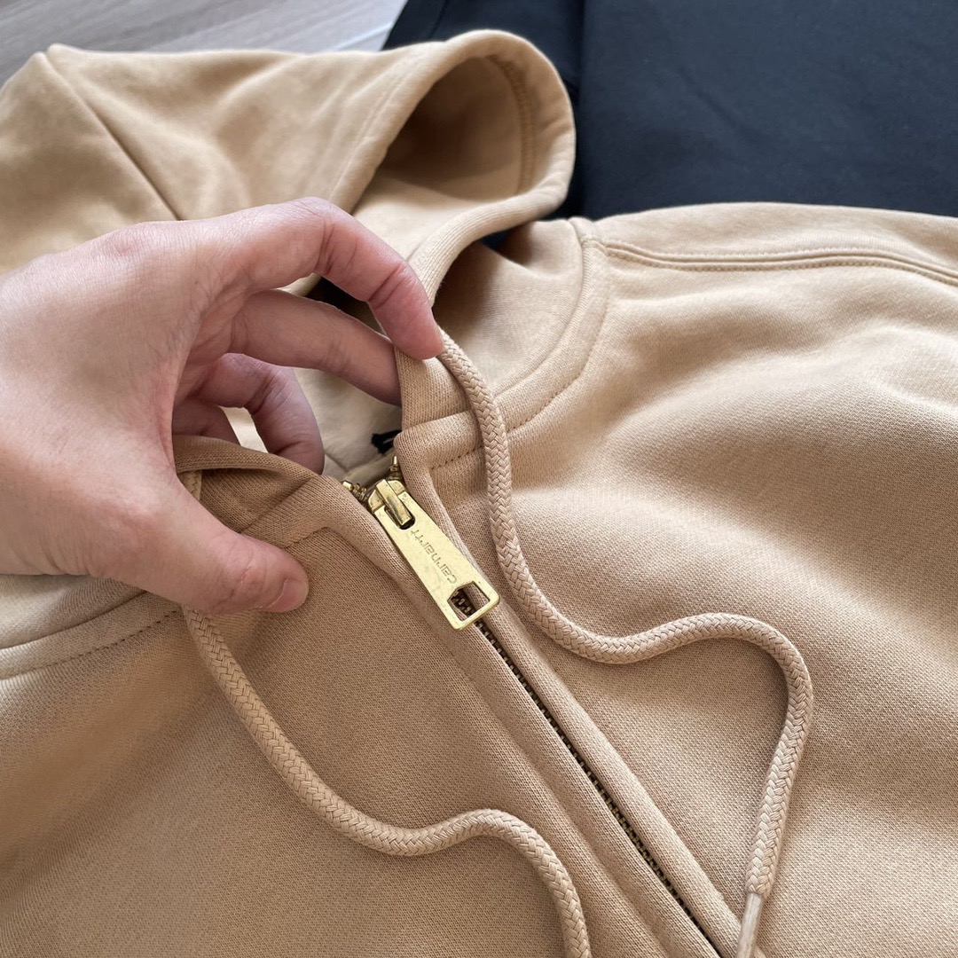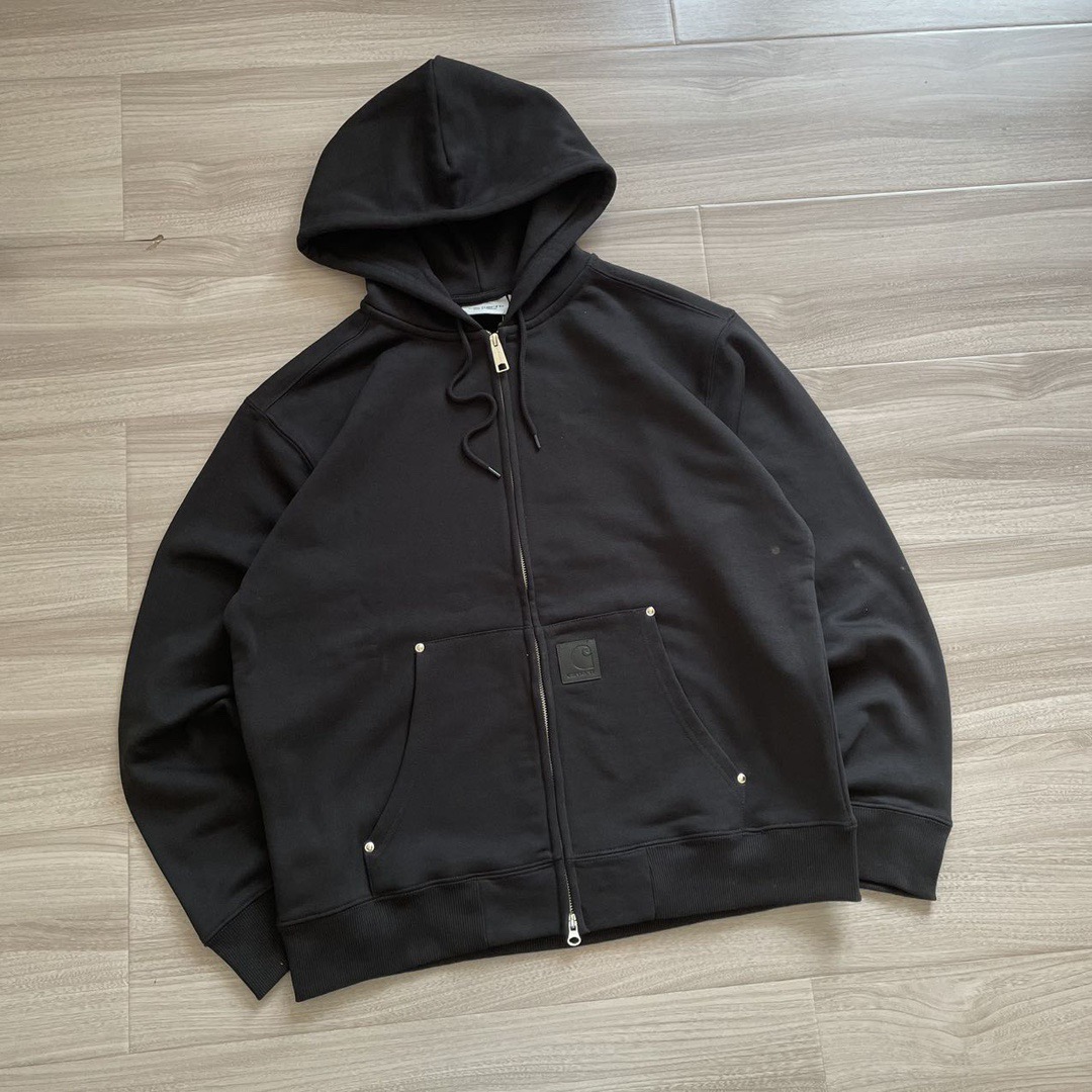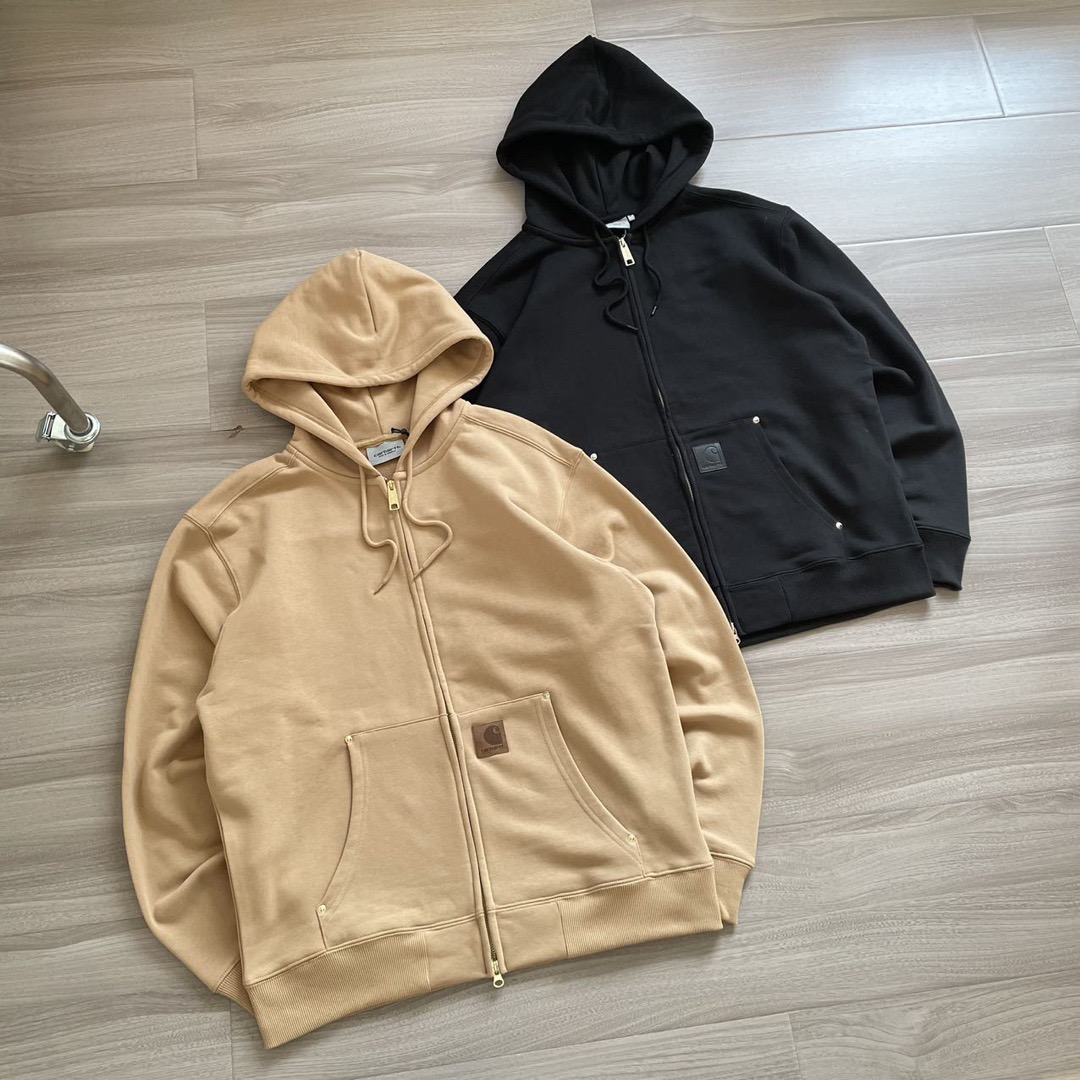 2025年秋冬430克全棉毛圈重磅新款Carhartt WIP系列皮标铆钉加厚外套,作为欧洲市场的专供系列依然秉承卡哈特的核心点:品质,耐久和舒适,全拉链开身的连帽卫衣造型,经典工艺很符合卡哈特的风格,并且融入了多种色彩的选择使其拥有了十足的街头味道,也承载了品牌的辨识度,甚至在秋冬部分时段当作外套穿着,耍帅且不失温度,真正的重磅单品,既有粗旷的工装特性,又能横行于潮流,而且坚信很多的达人正缺少一件卫衣。
