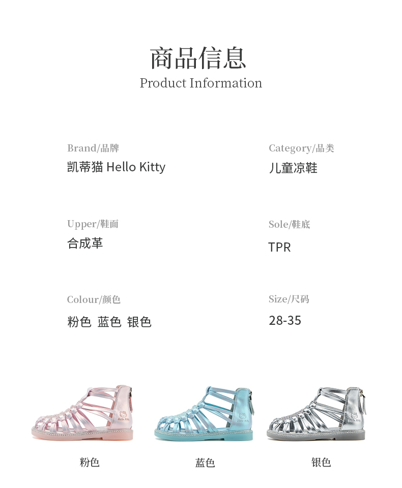HelloKitty童鞋女童凉鞋夏季儿童公主鞋女孩罗马鞋28-35 K4526831