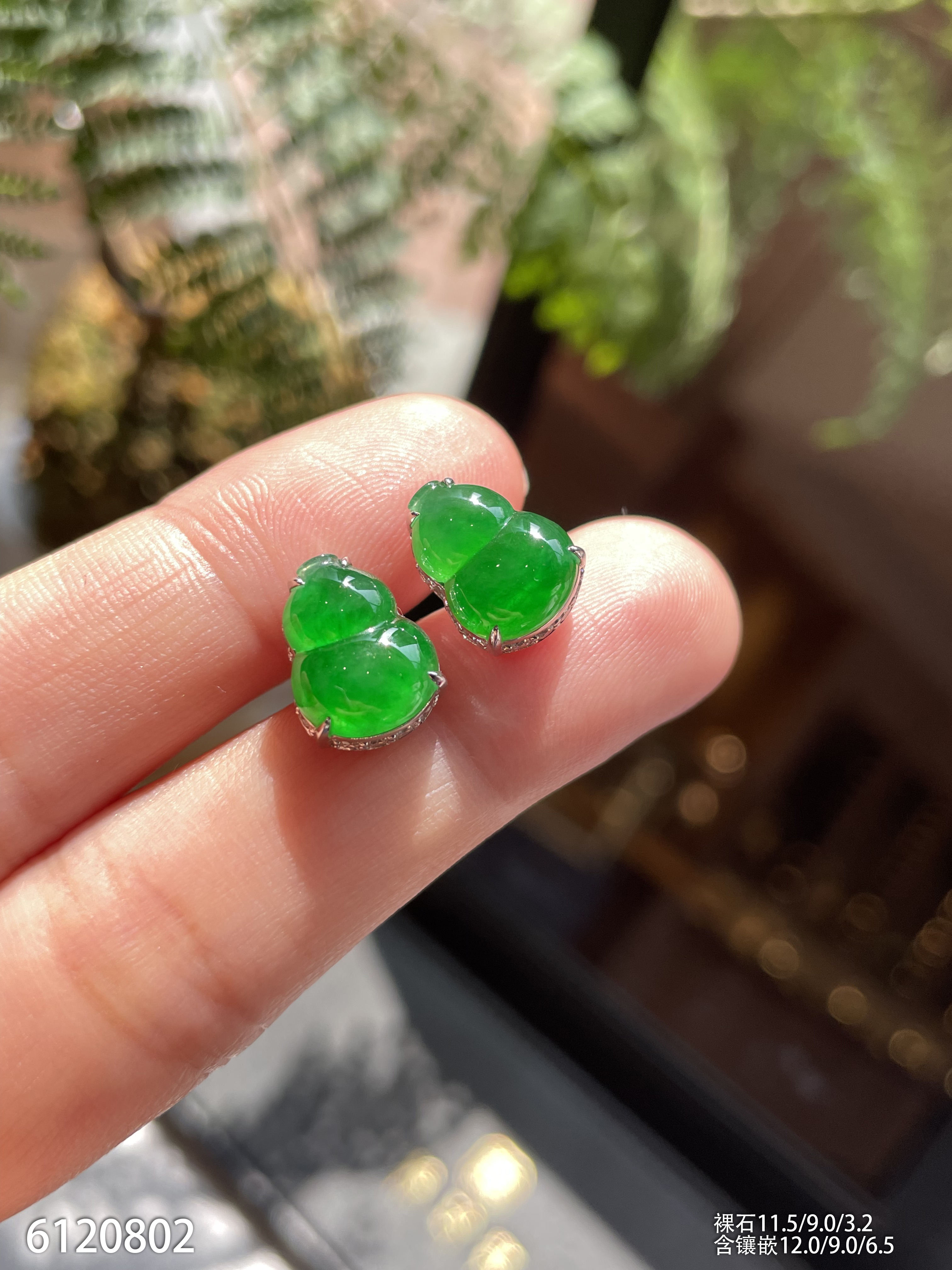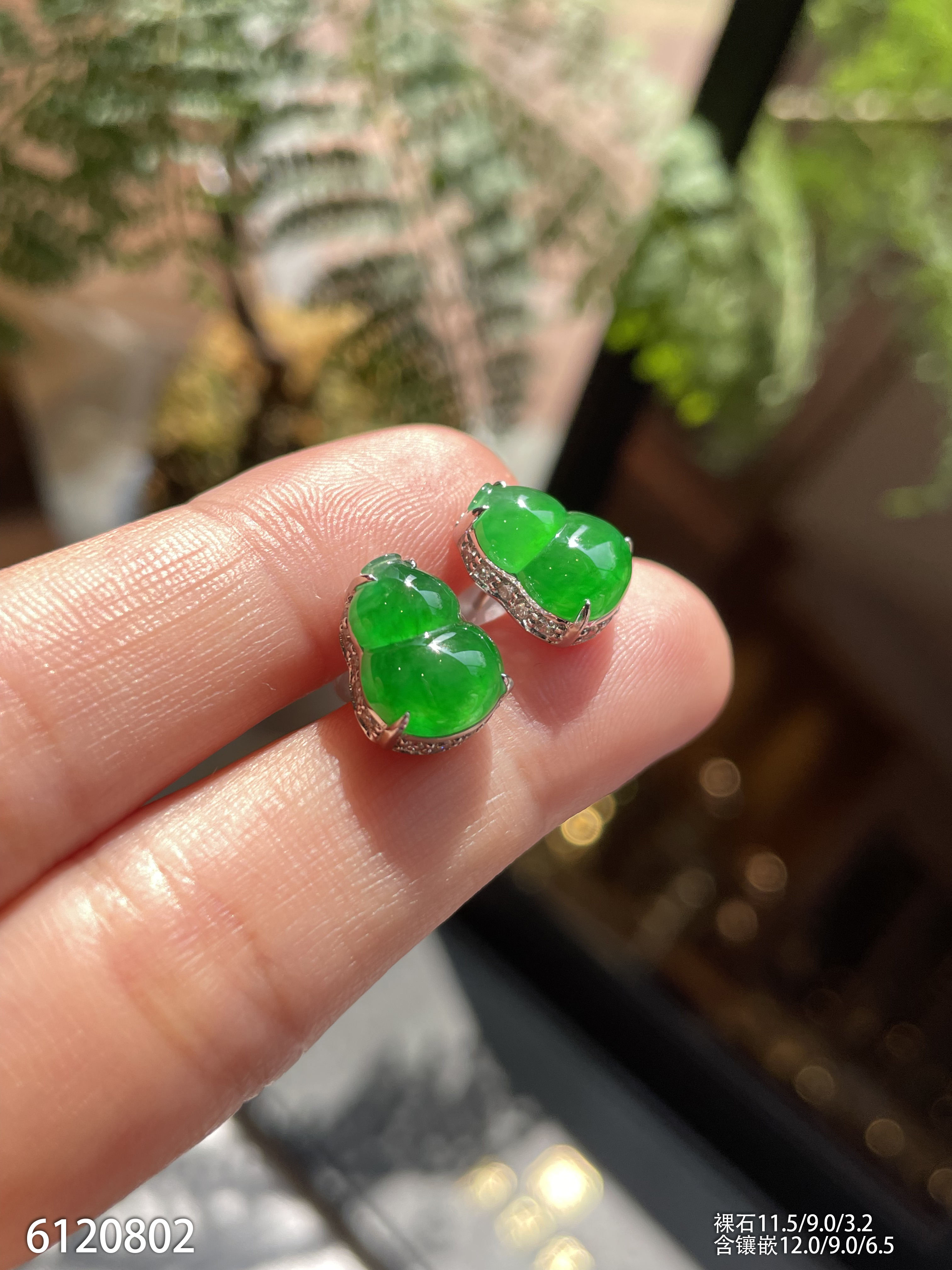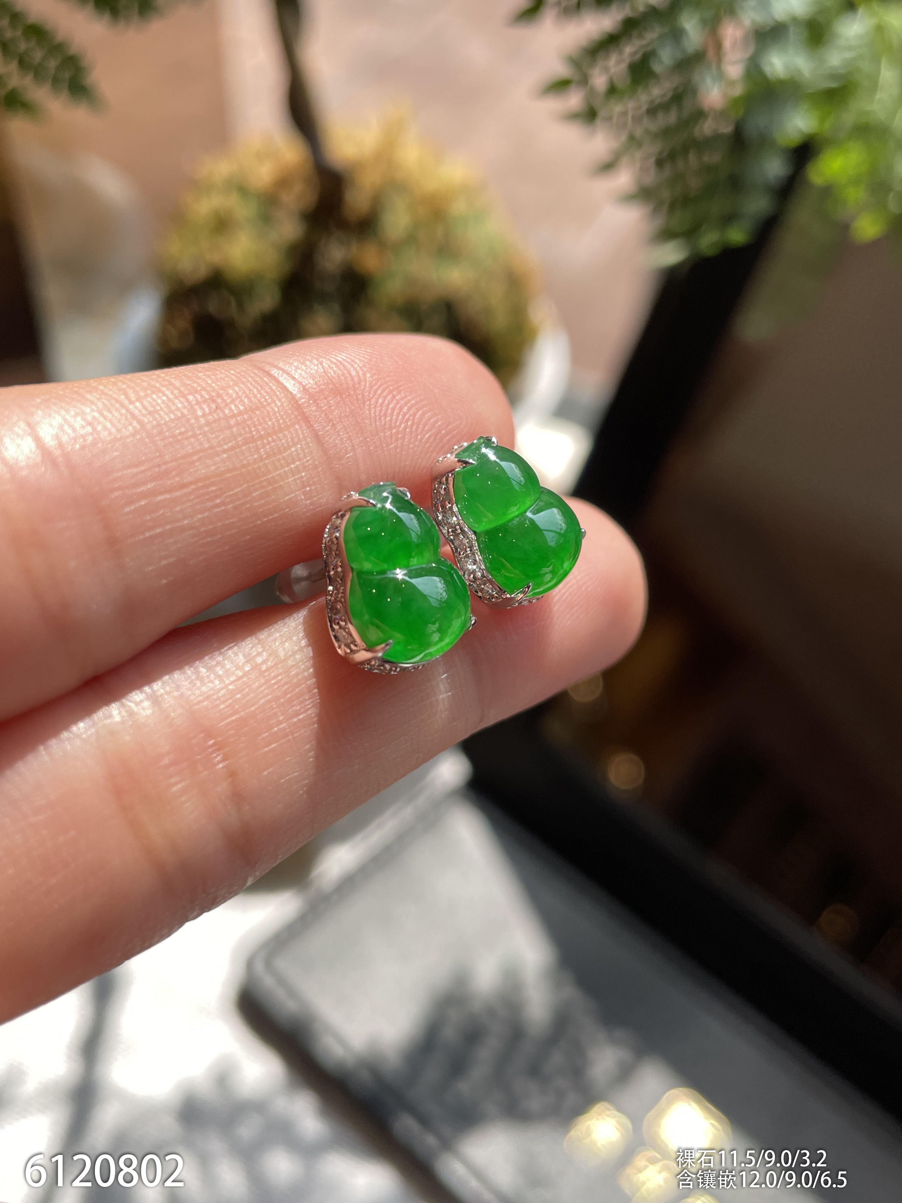 高冰种艳绿蛋面耳钉【6310503】具体价格微信咨询