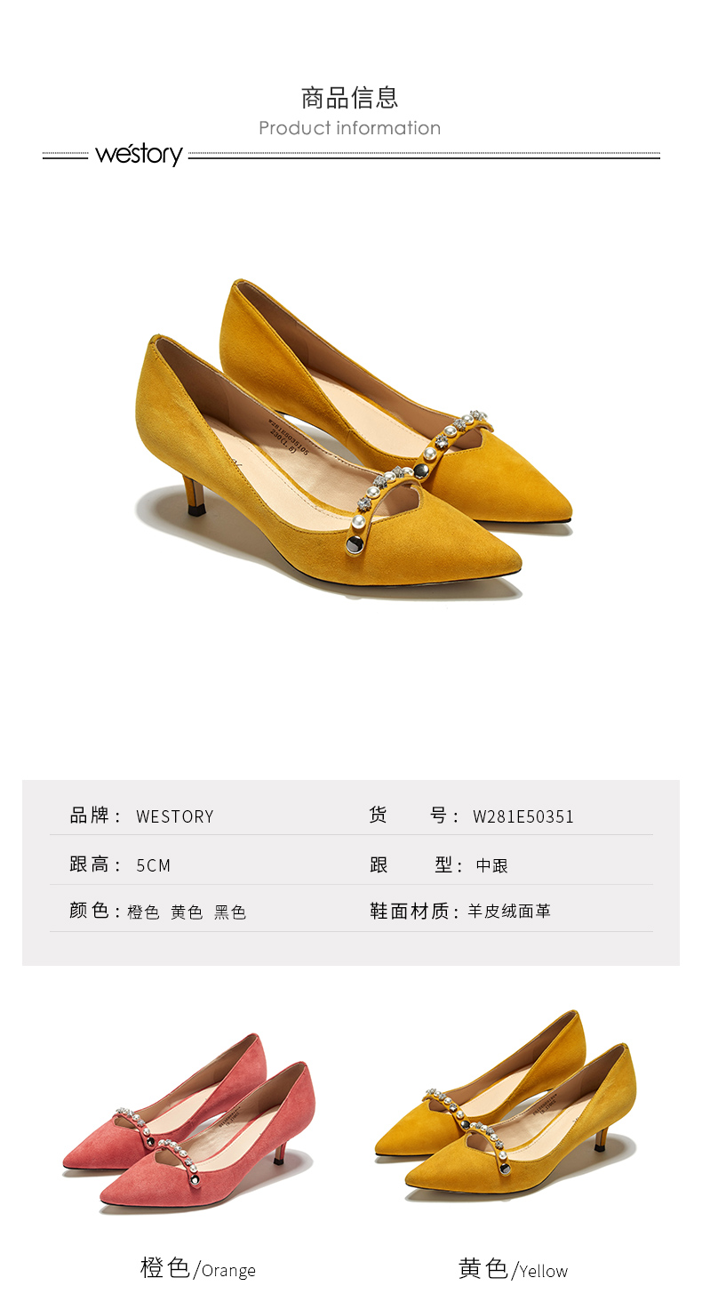 westory商场同款春夏浅口单鞋珍珠尖头细跟高跟鞋女鞋W281E50351