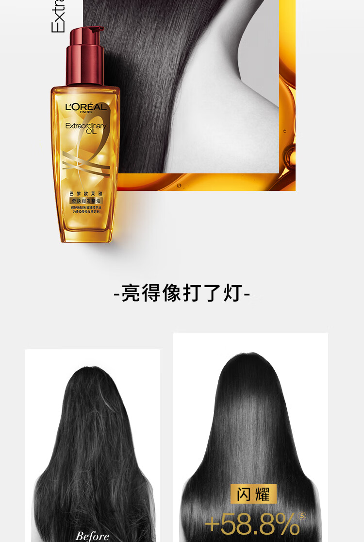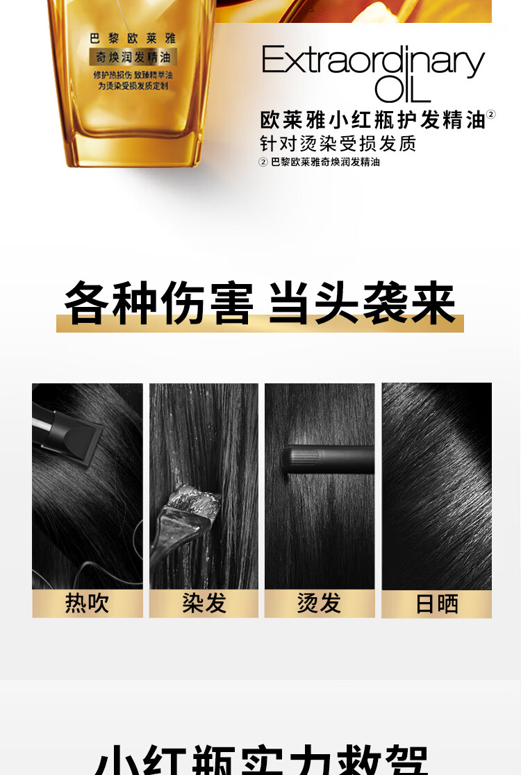 欧莱雅奇焕润发护发精油100ml(小红瓶 针对烫染发质 免洗 强韧 防损伤)
