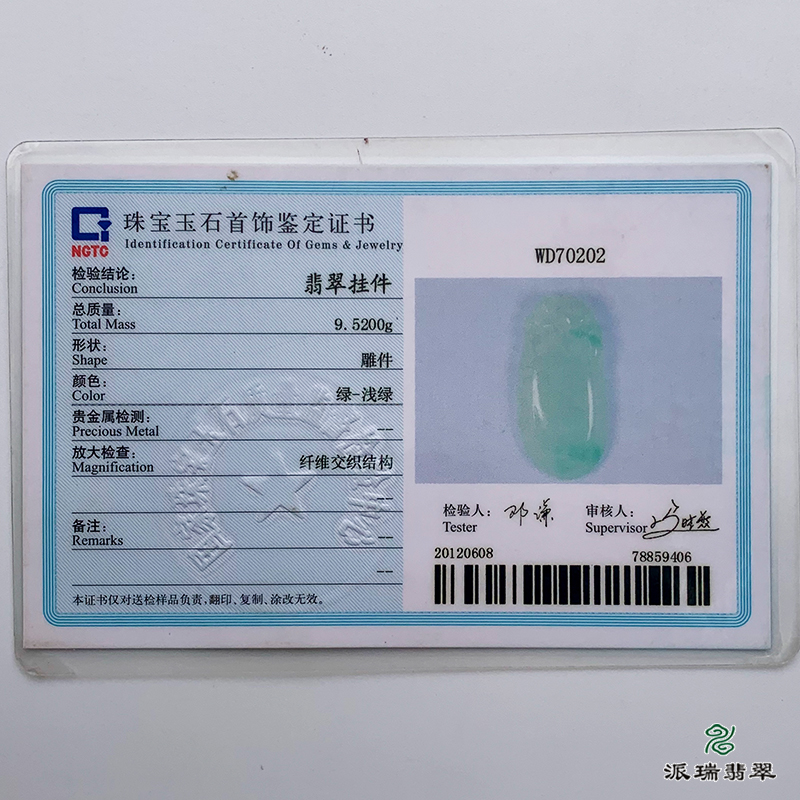 派瑞翡翠 翡翠挂件 冰糯种 淡绿色