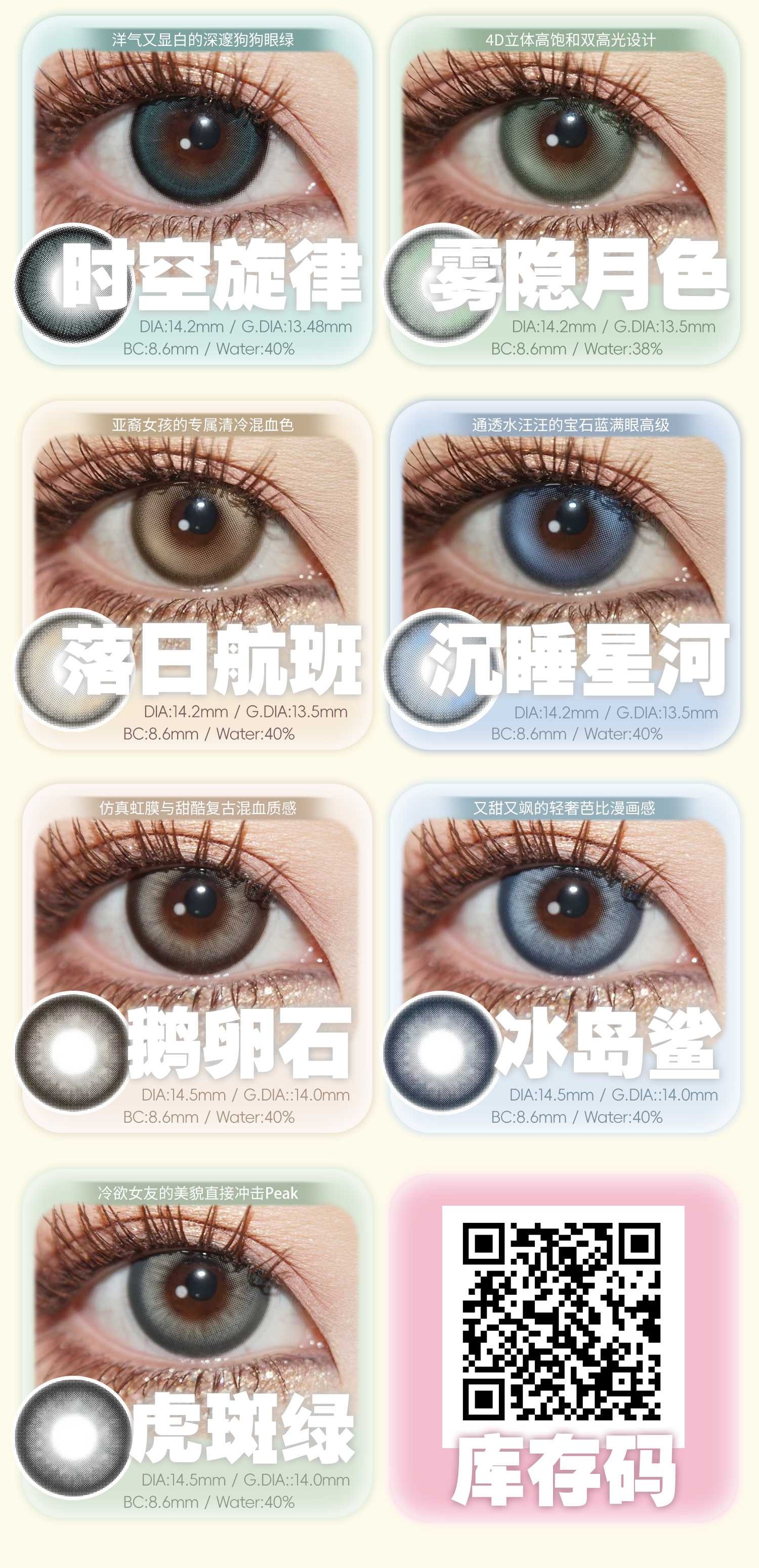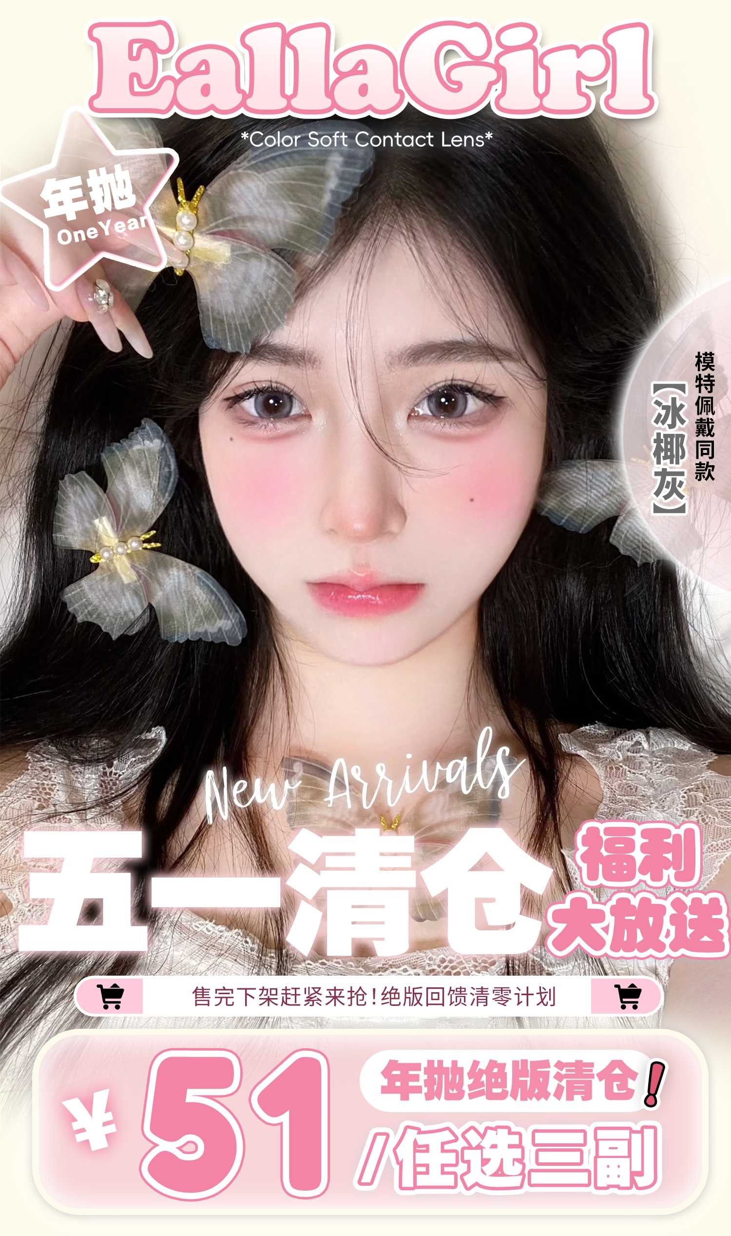 Ealla Girl 正品年抛清仓活动51/三副,软兔叽冰椰灰冰奶绿可可泰迪复古黑莓,最高度数800