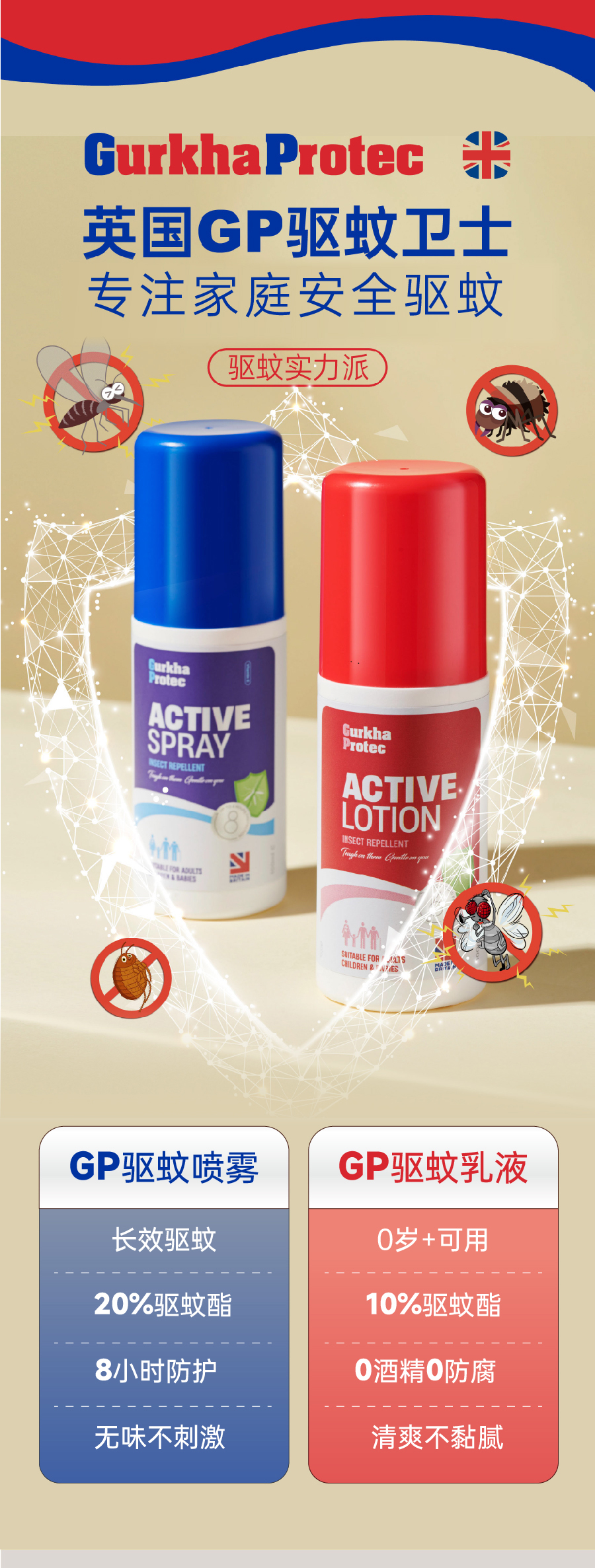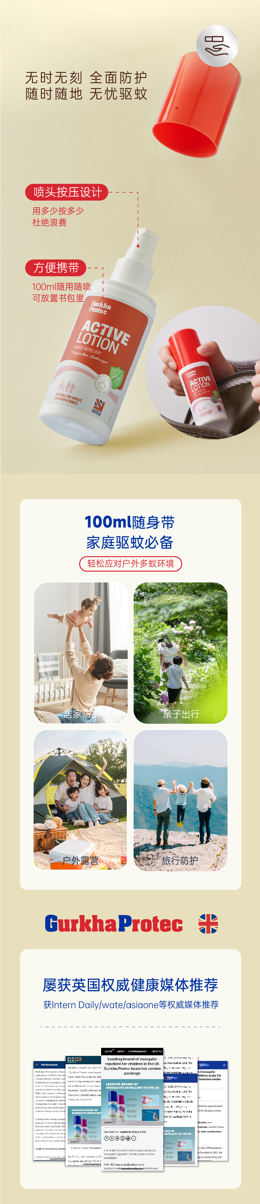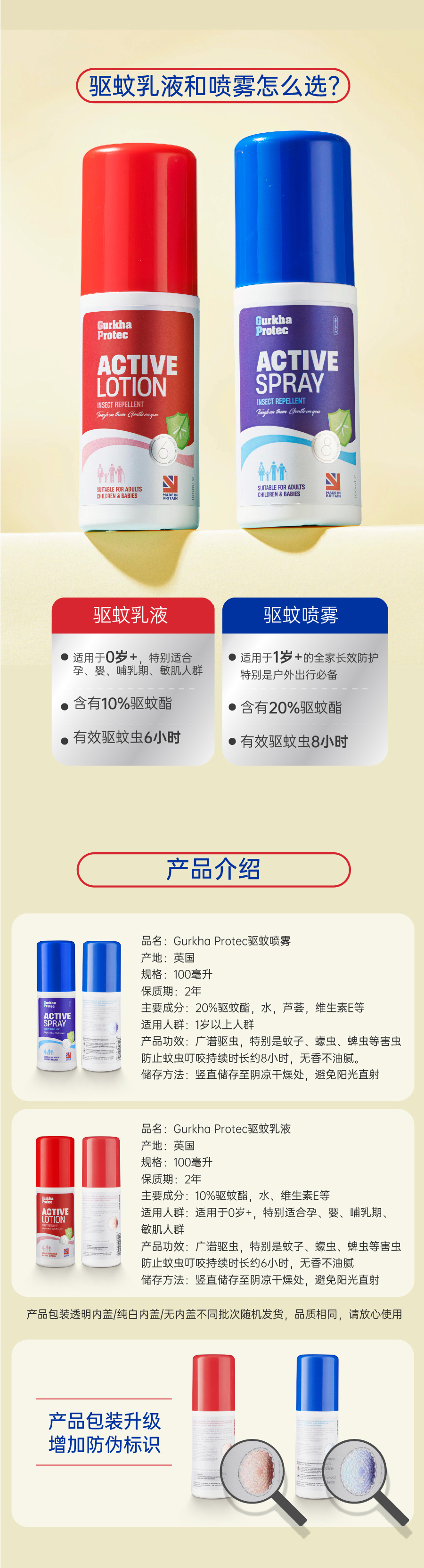 【海淘】GurkhaProtec英国GP卫士驱蚊乳液&喷雾/德国默克驱蚊酯/全天长效驱蚊防护/ 不含避蚊胺/孕婴安全/添加芦荟VE