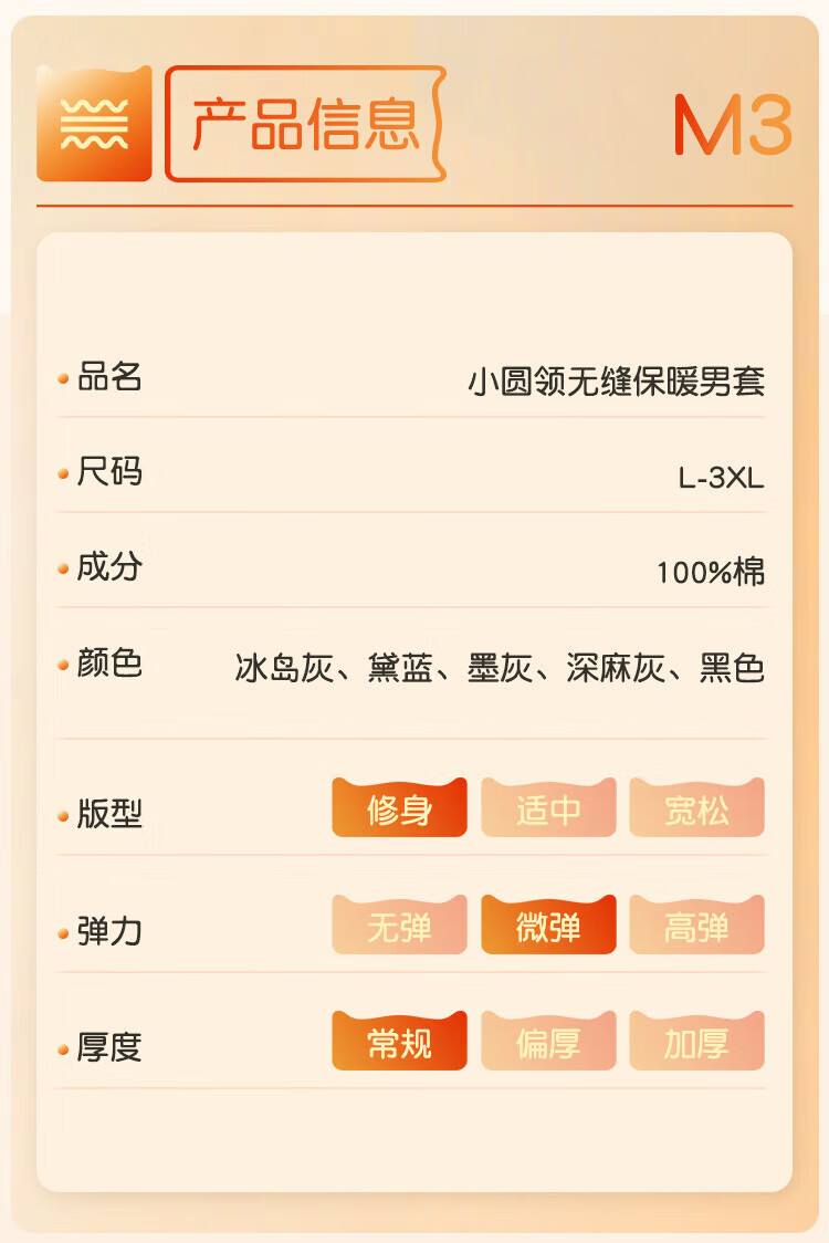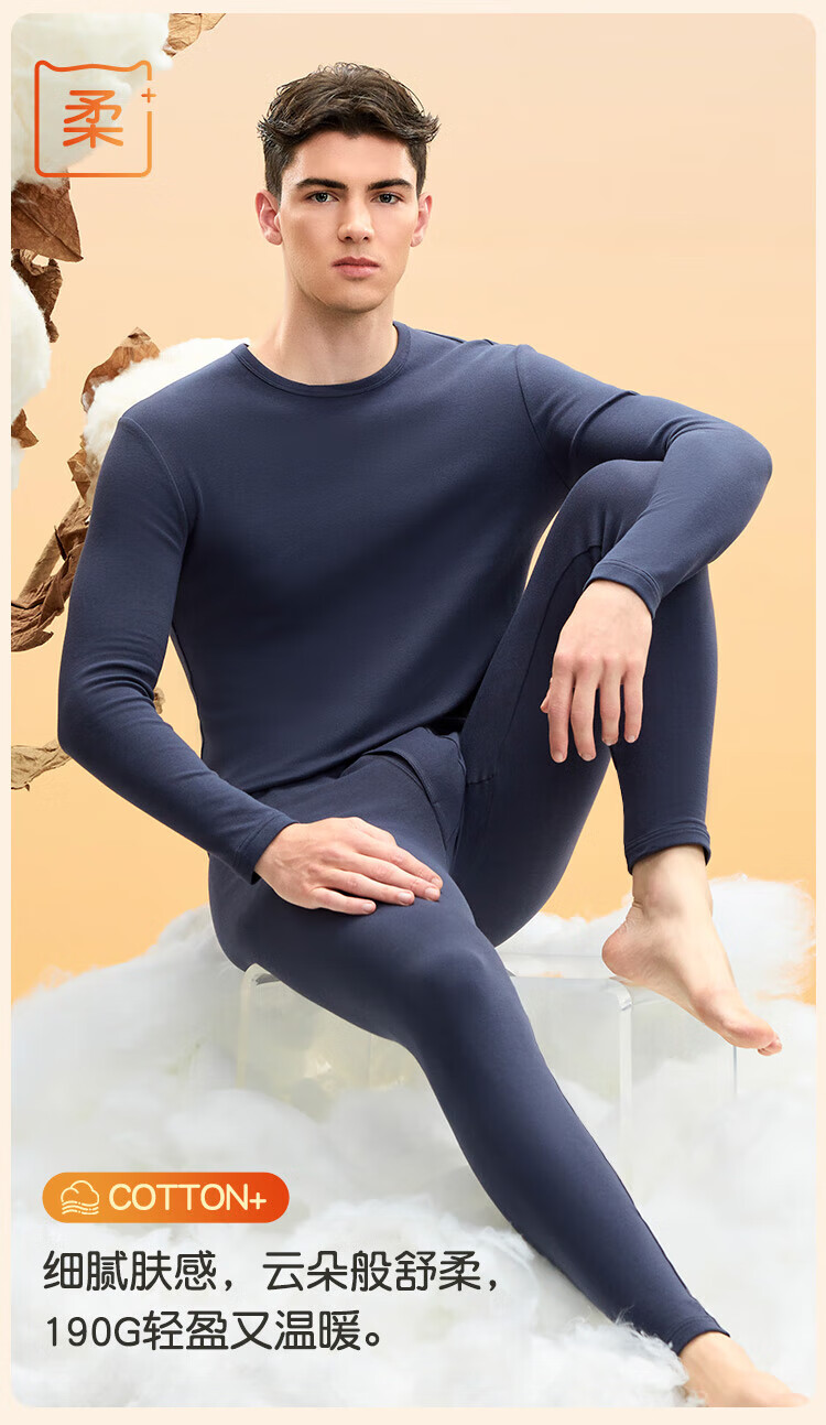 【L-3XL】猫人男士纯棉保暖内衣套装