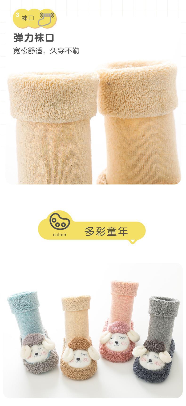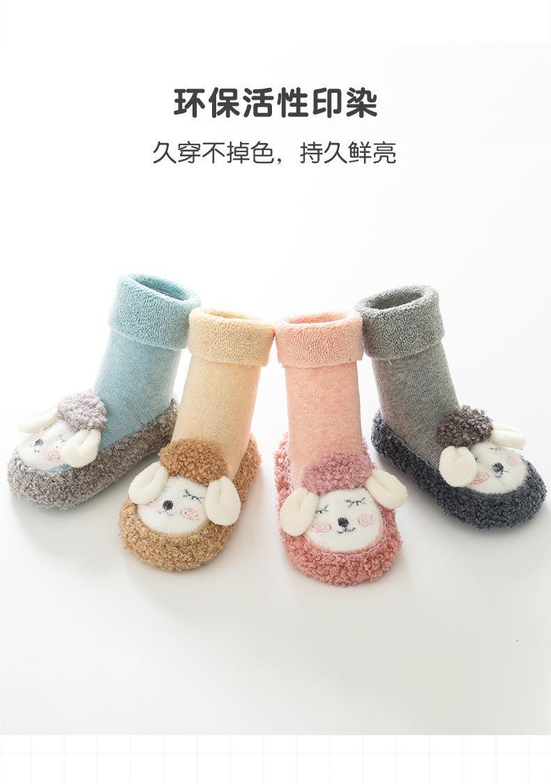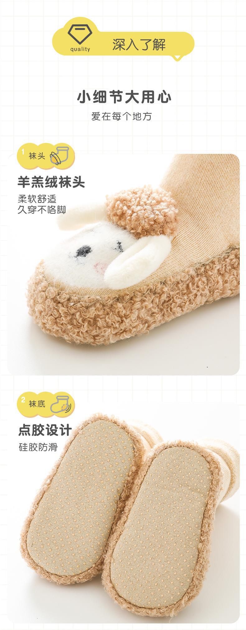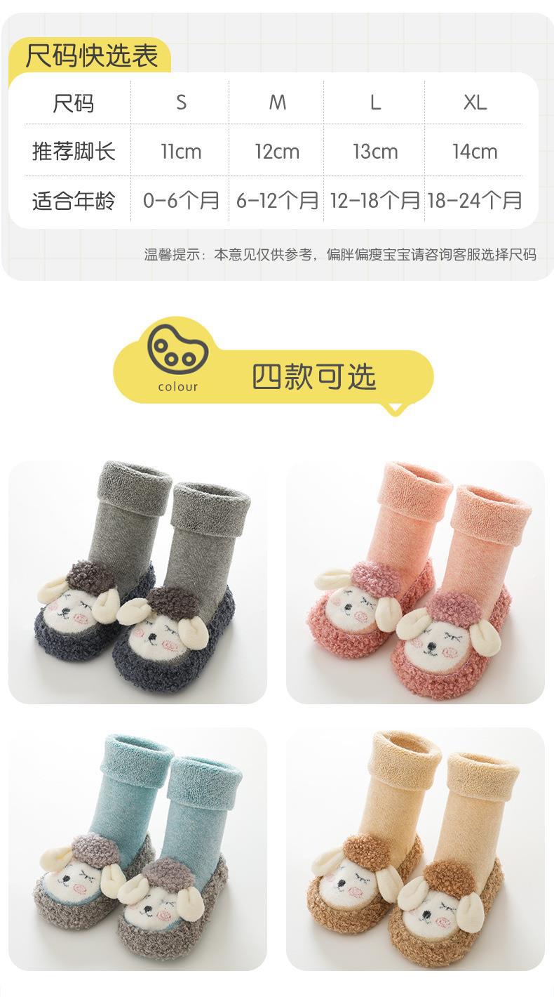 儿童毛圈地板袜秋冬新款中筒婴儿袜子柳成行点胶防滑防滑硅胶地板袜子11-14cm