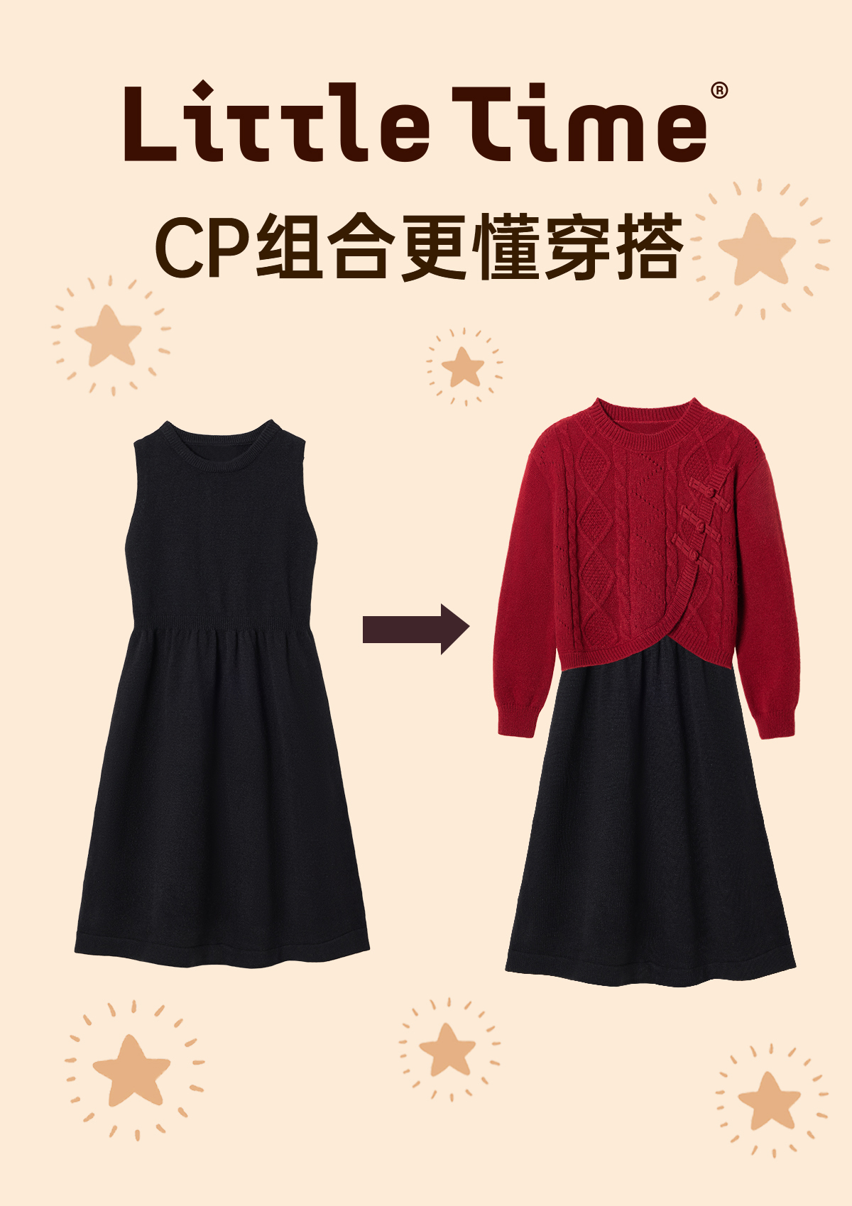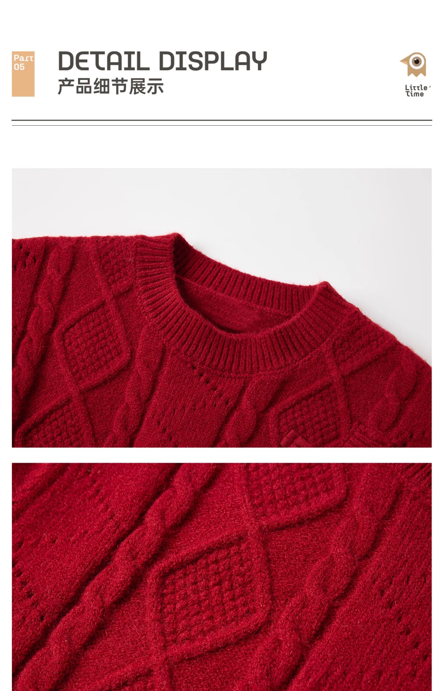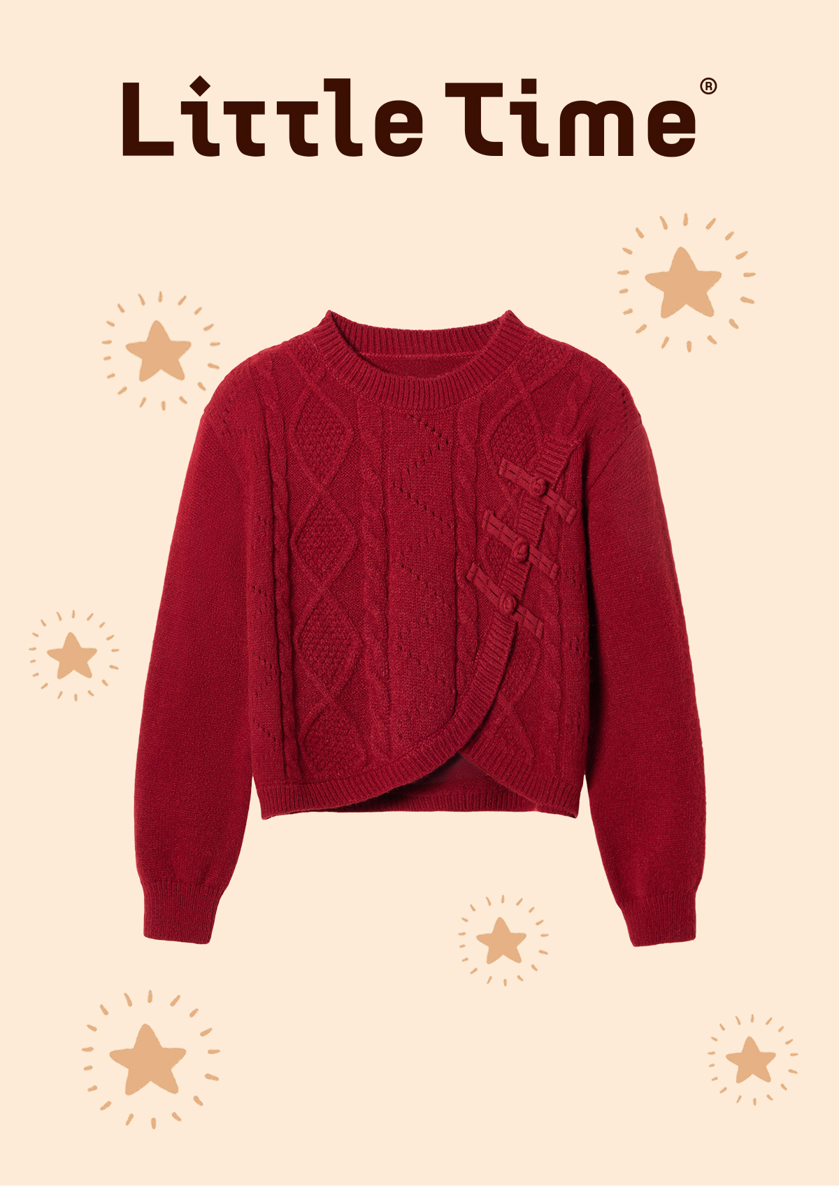 littletime女童国风盘扣毛衣2024新款秋冬装红年服儿童毛衣套装