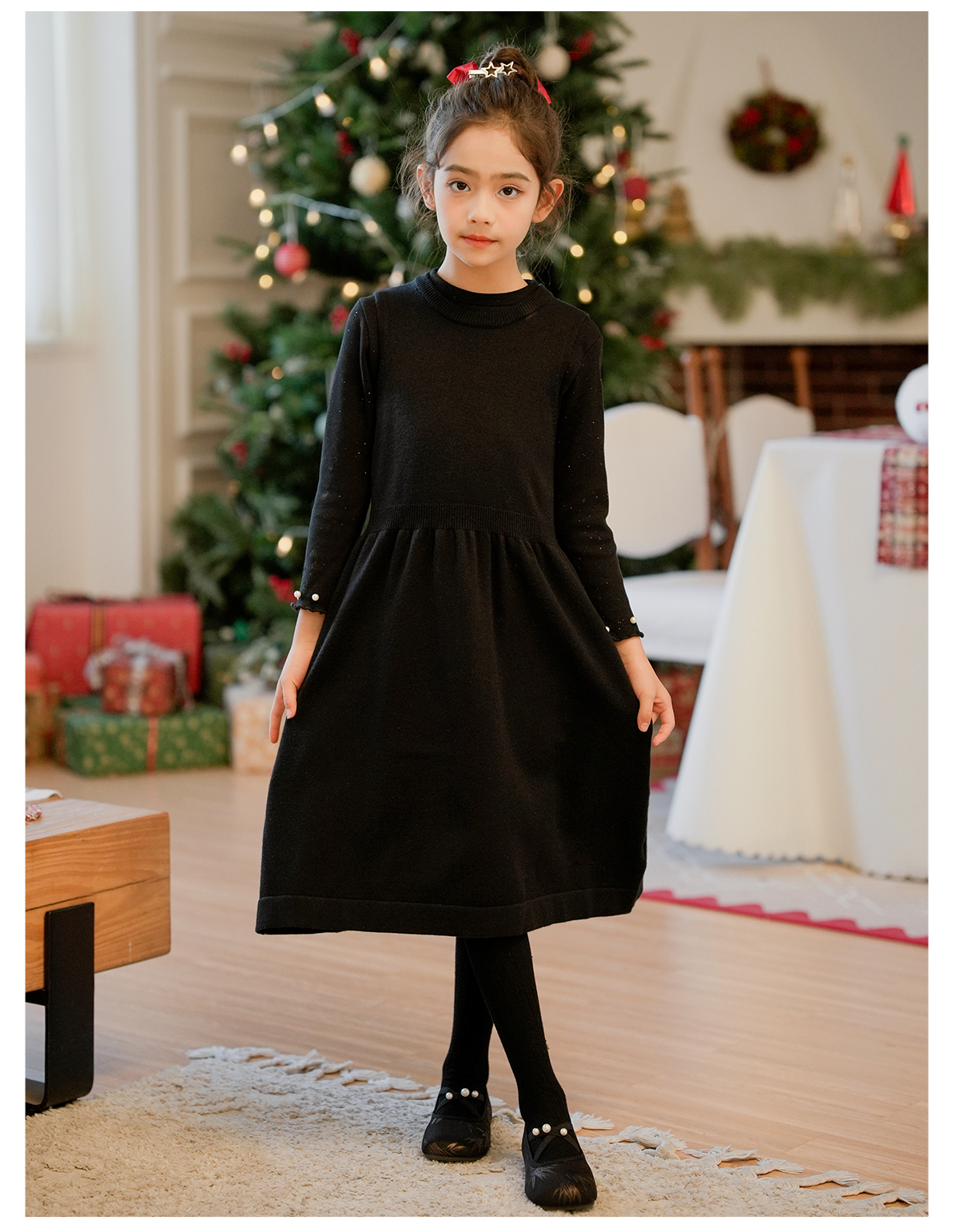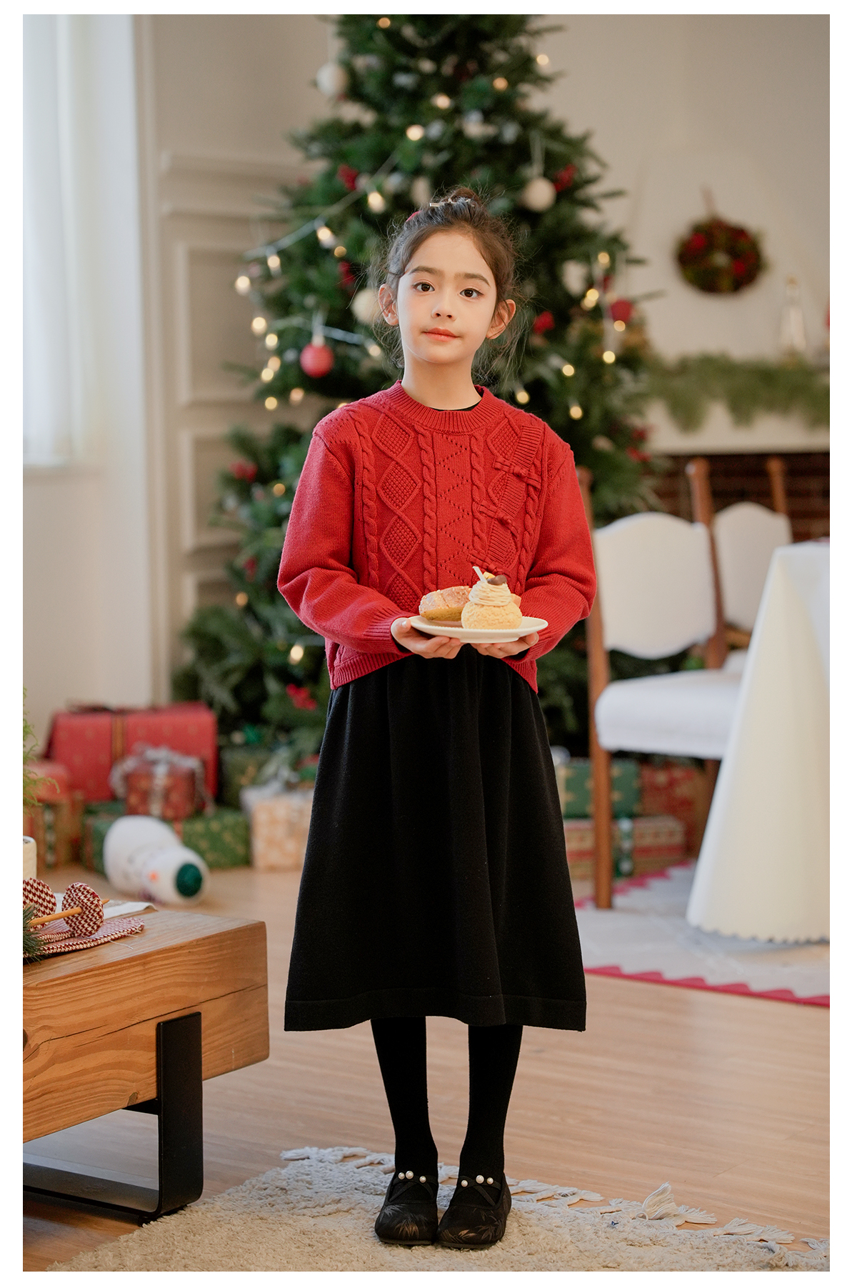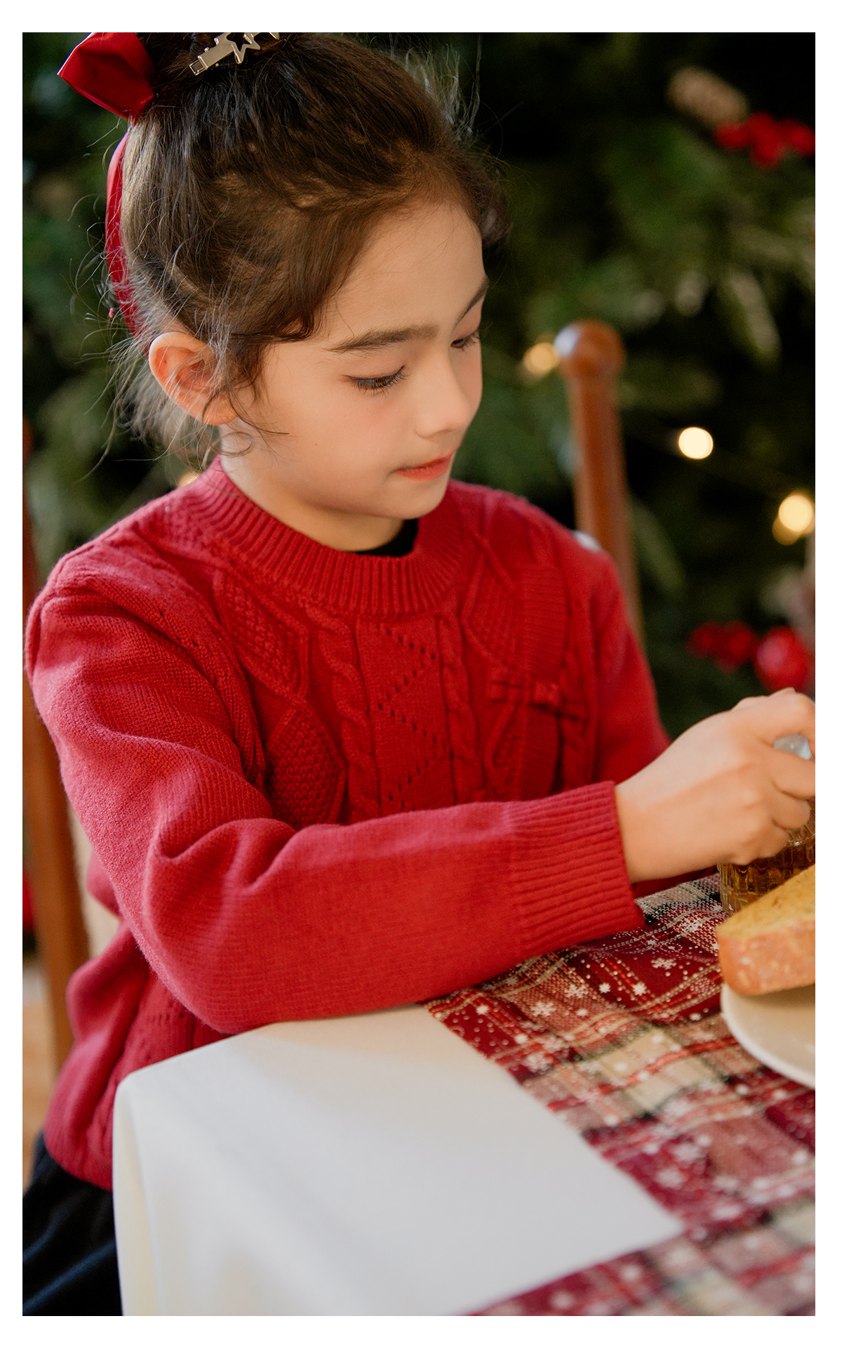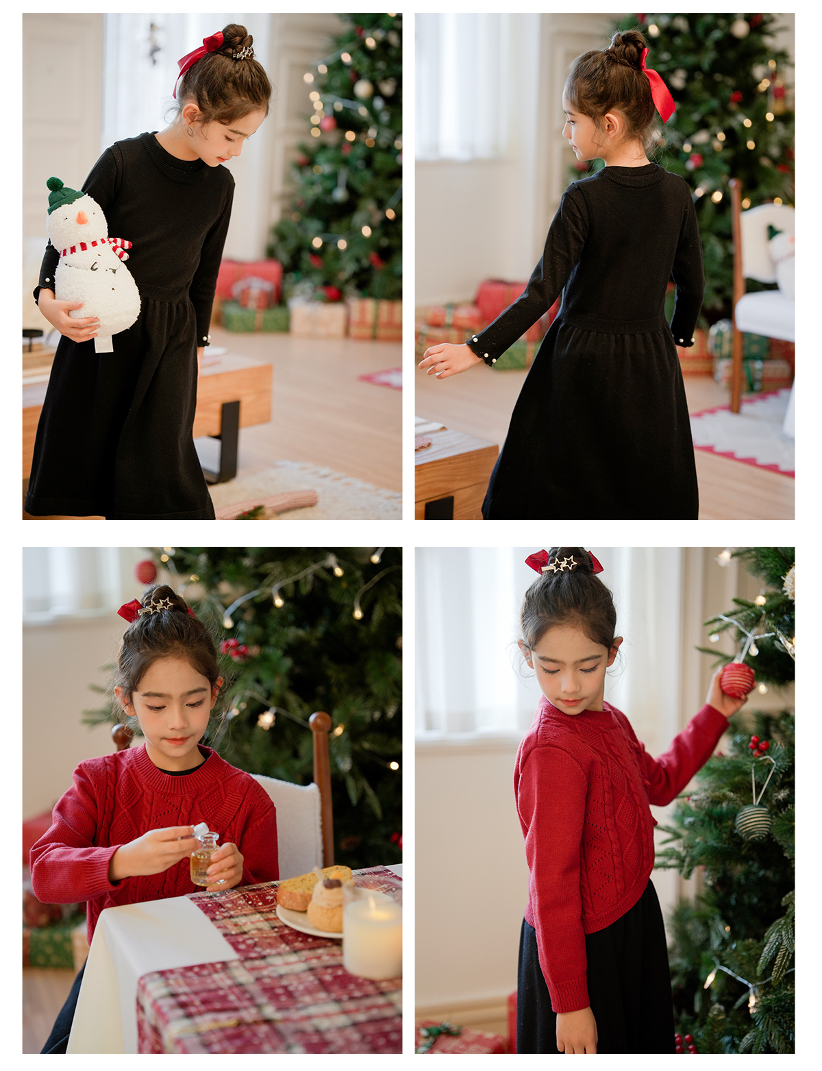 littletime女童国风盘扣毛衣2024新款秋冬装红年服儿童毛衣套装