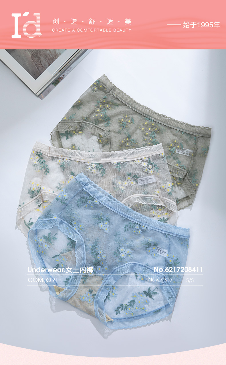 I'd爱帝女士高腰提花蚕丝内裤3条装