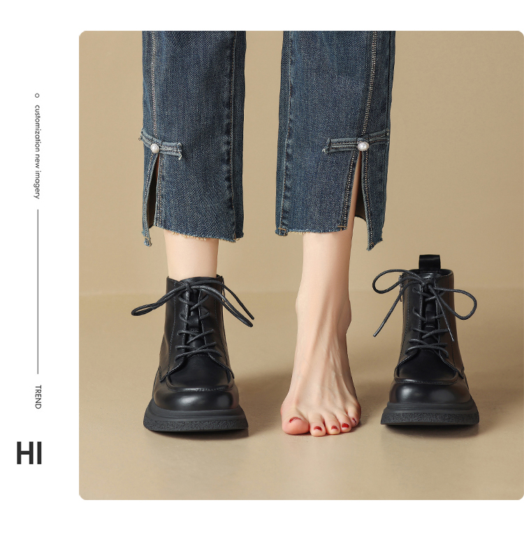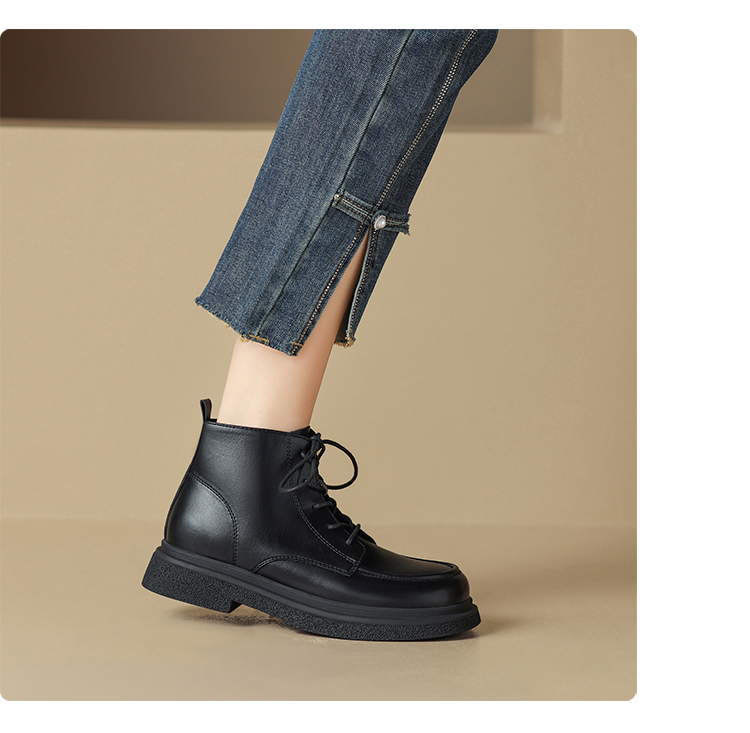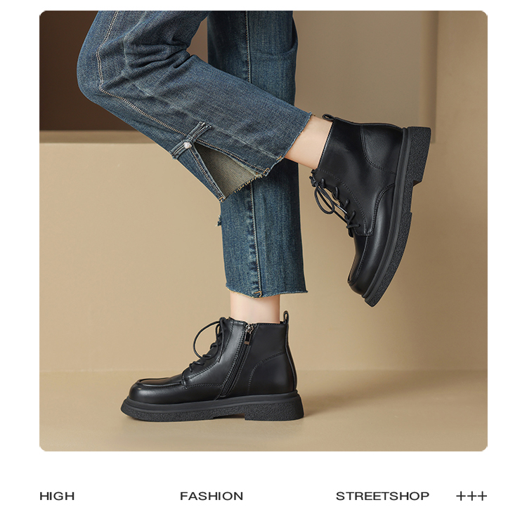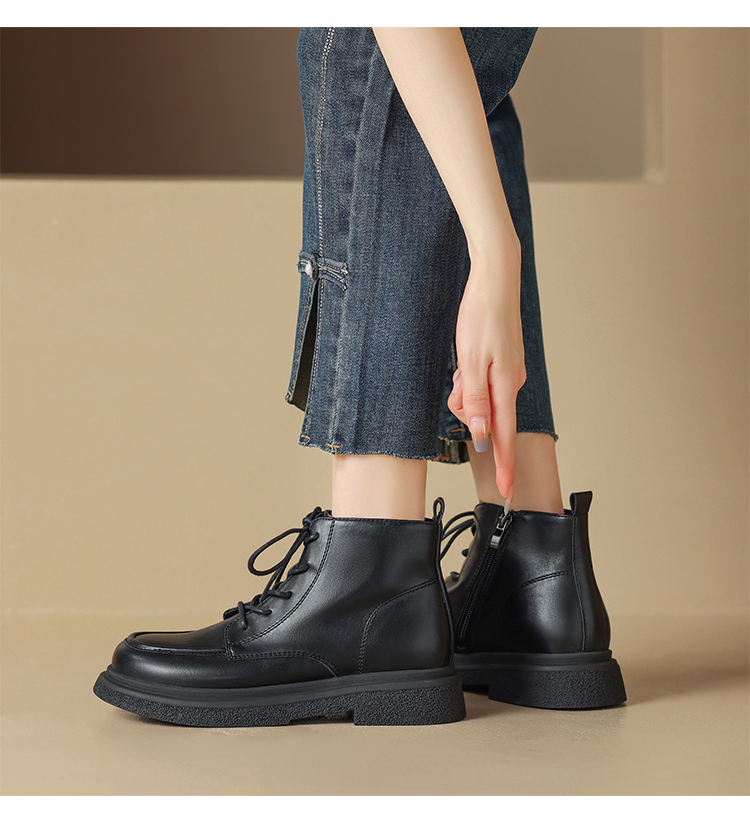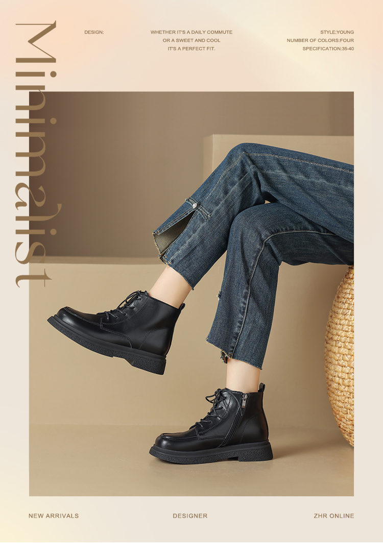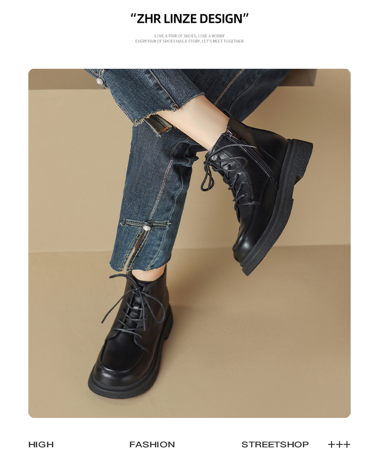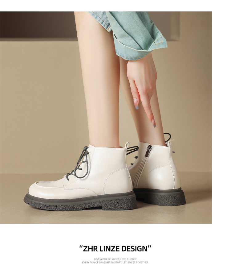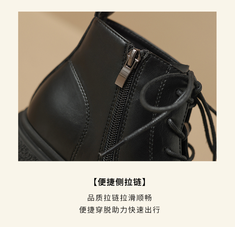 ZHR马丁靴女 2023秋冬新款休闲百搭黑色圆头短靴甜酷风潮流马丁靴