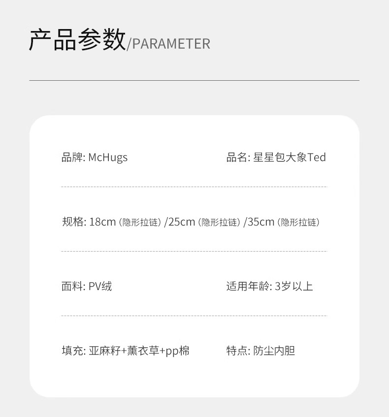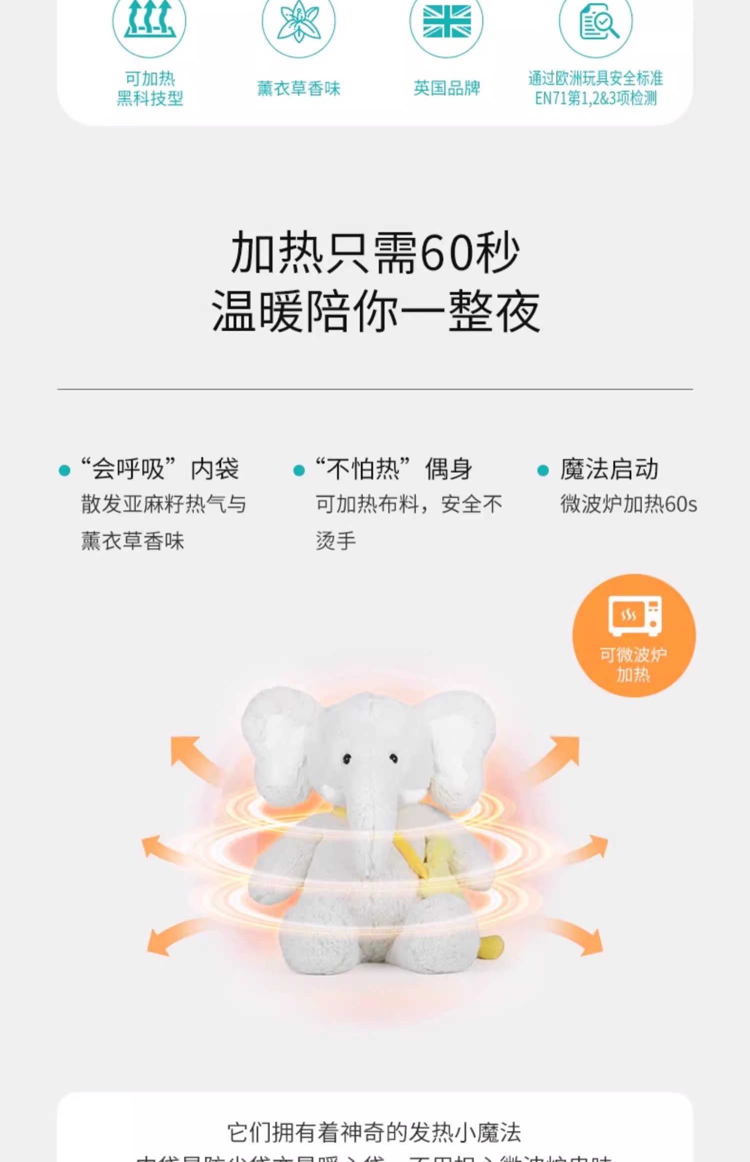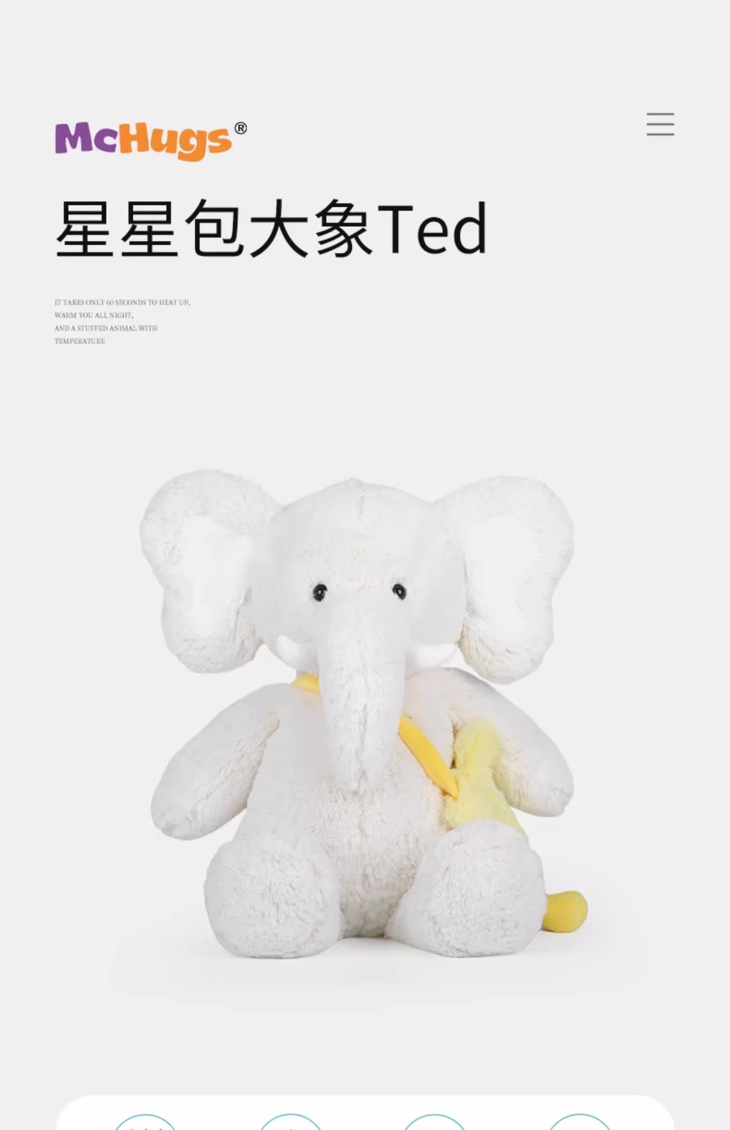 McHugs星星包大象玩偶薰衣草毛绒玩具可加热安抚娃娃礼物公仔抱睡