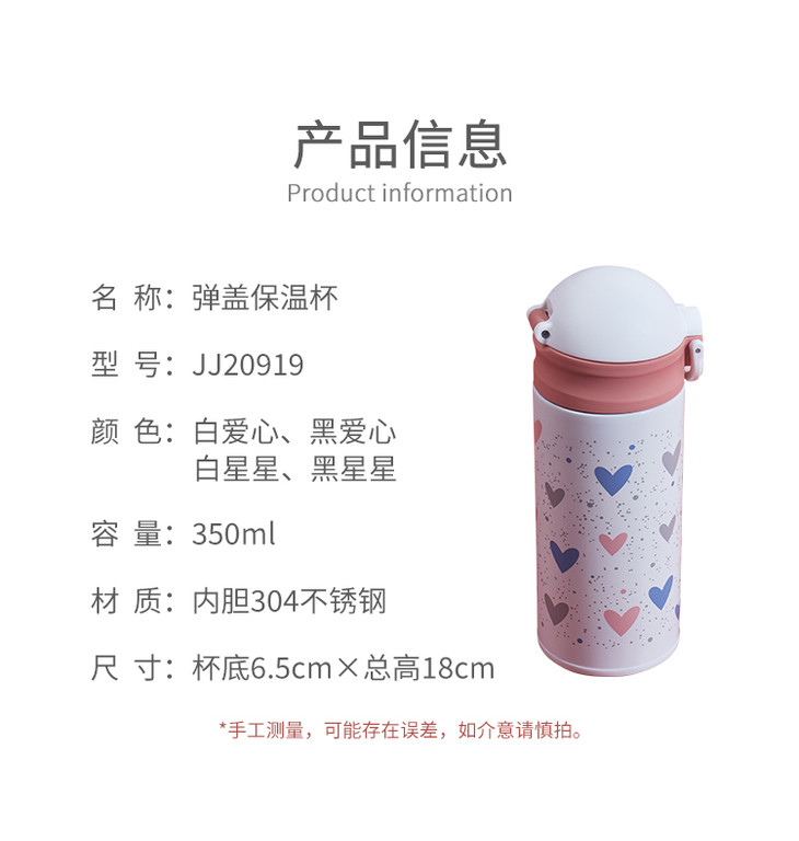 弹盖保温杯350ML女学生可爱韩版小巧便携呆萌少女心女士水杯ins防漏杯子JJ20919