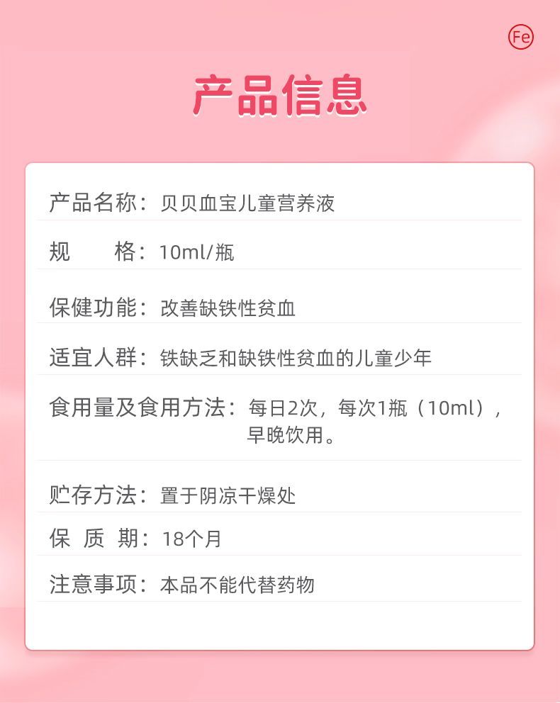 康恩贝血宝儿童营养液缺铁补铁药食同源