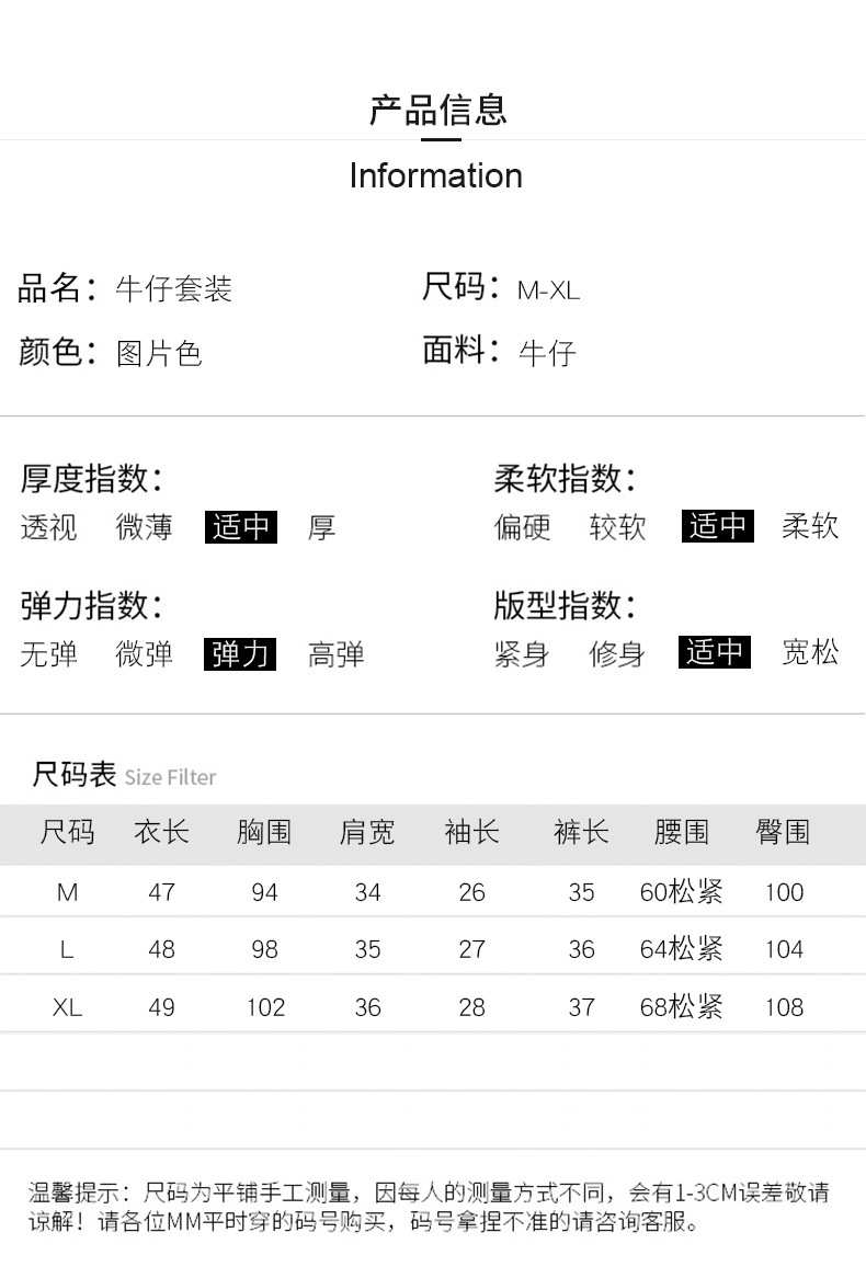 时尚潮流,休闲百搭舒适牛仔套装HR-CSYL2288