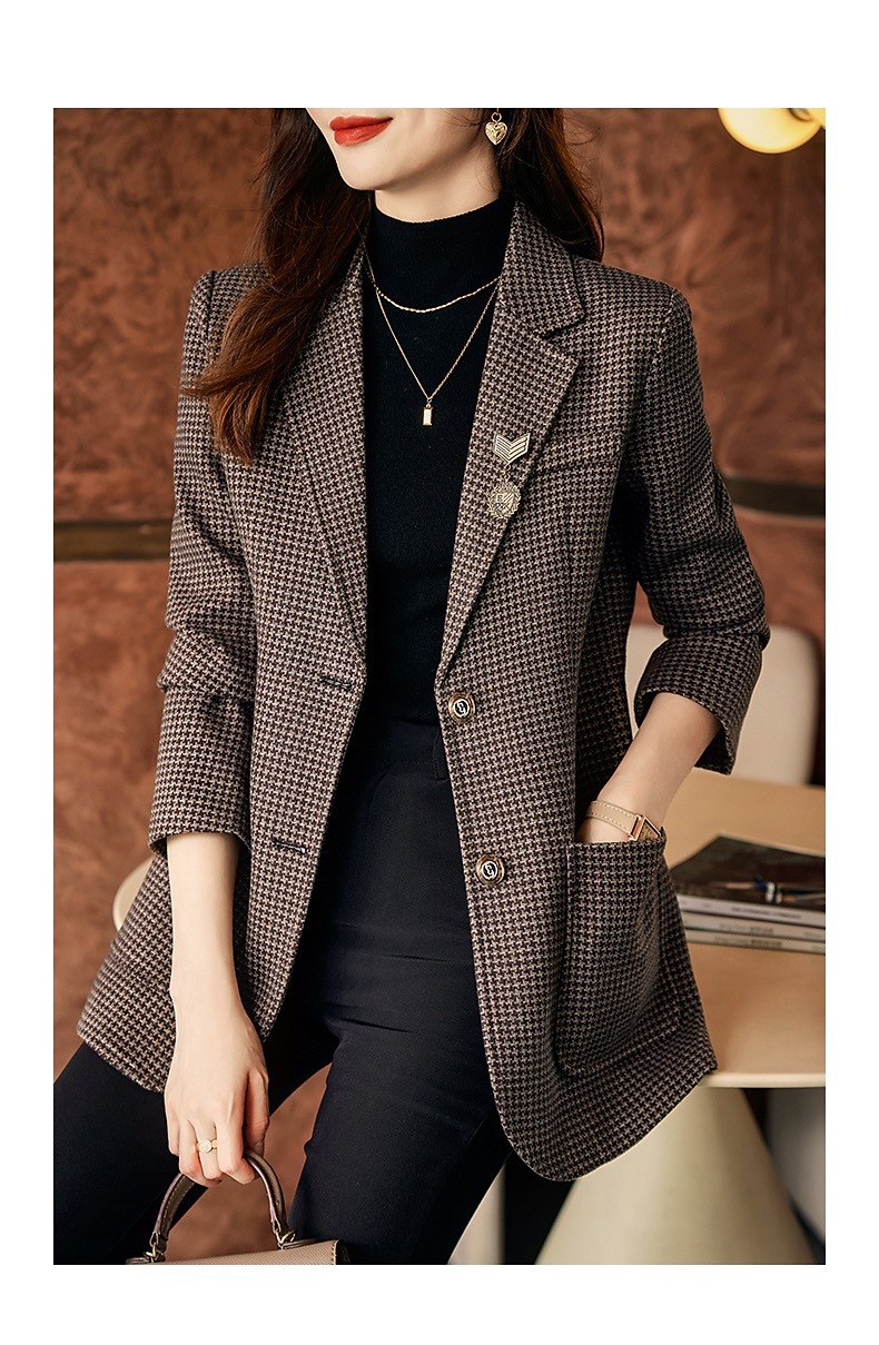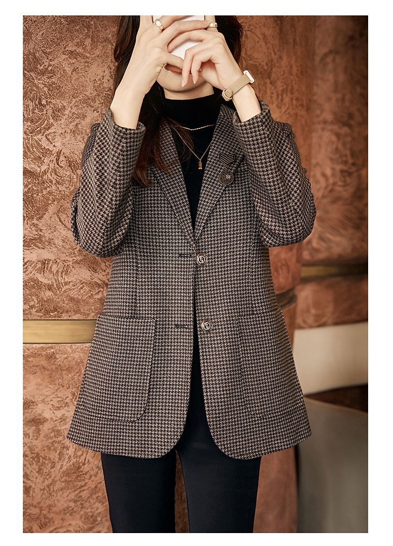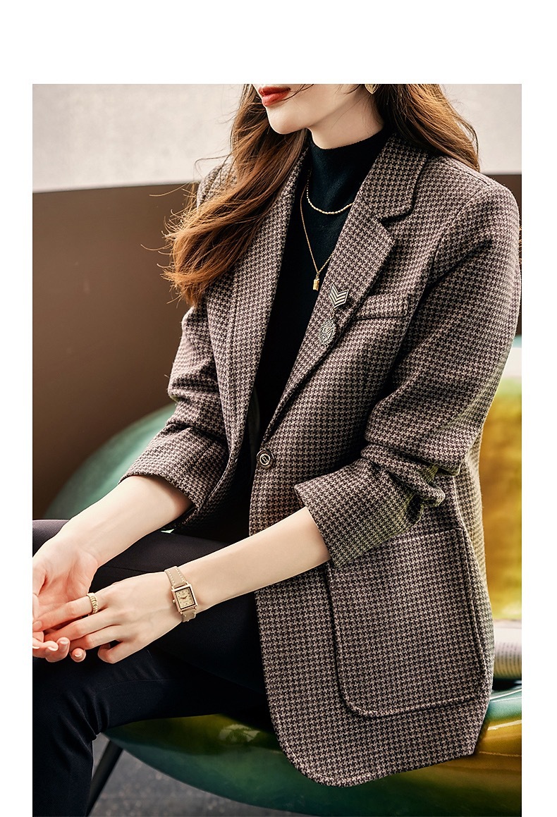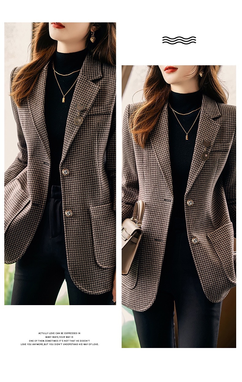 名媛气质,千鸟格小西装外套新款复古西服上衣TYL9654