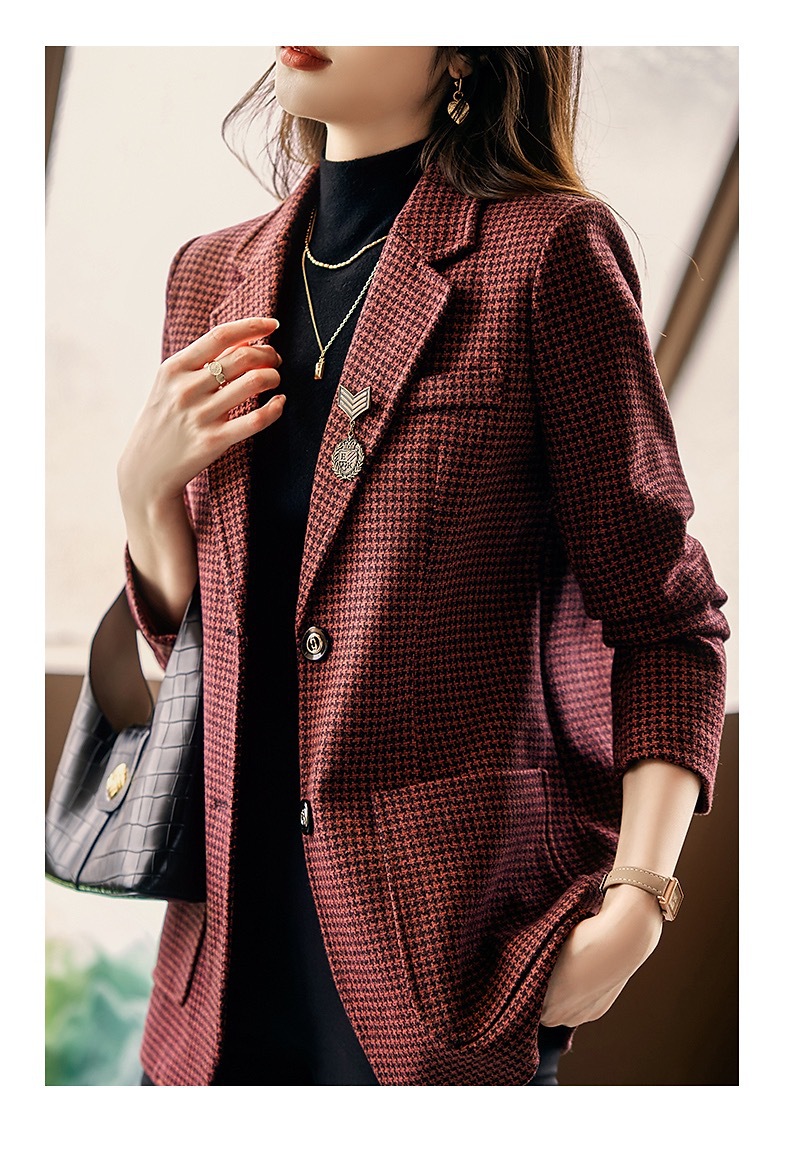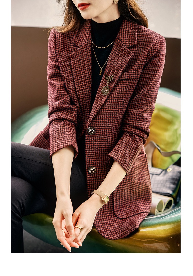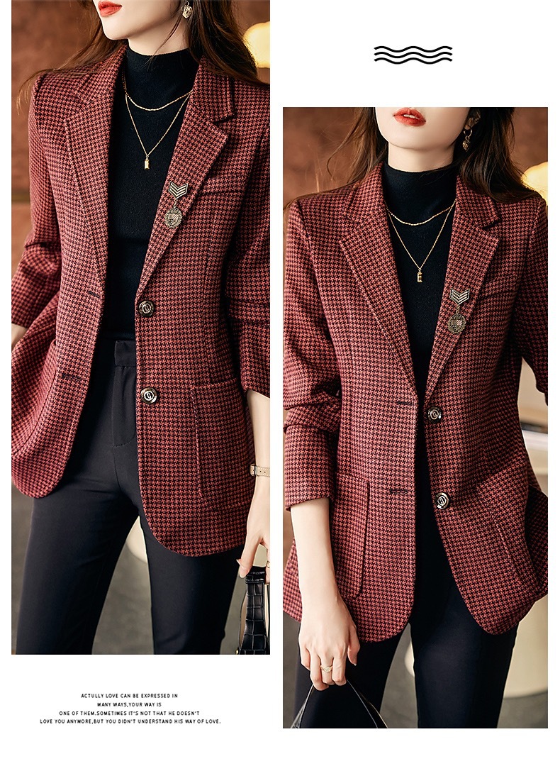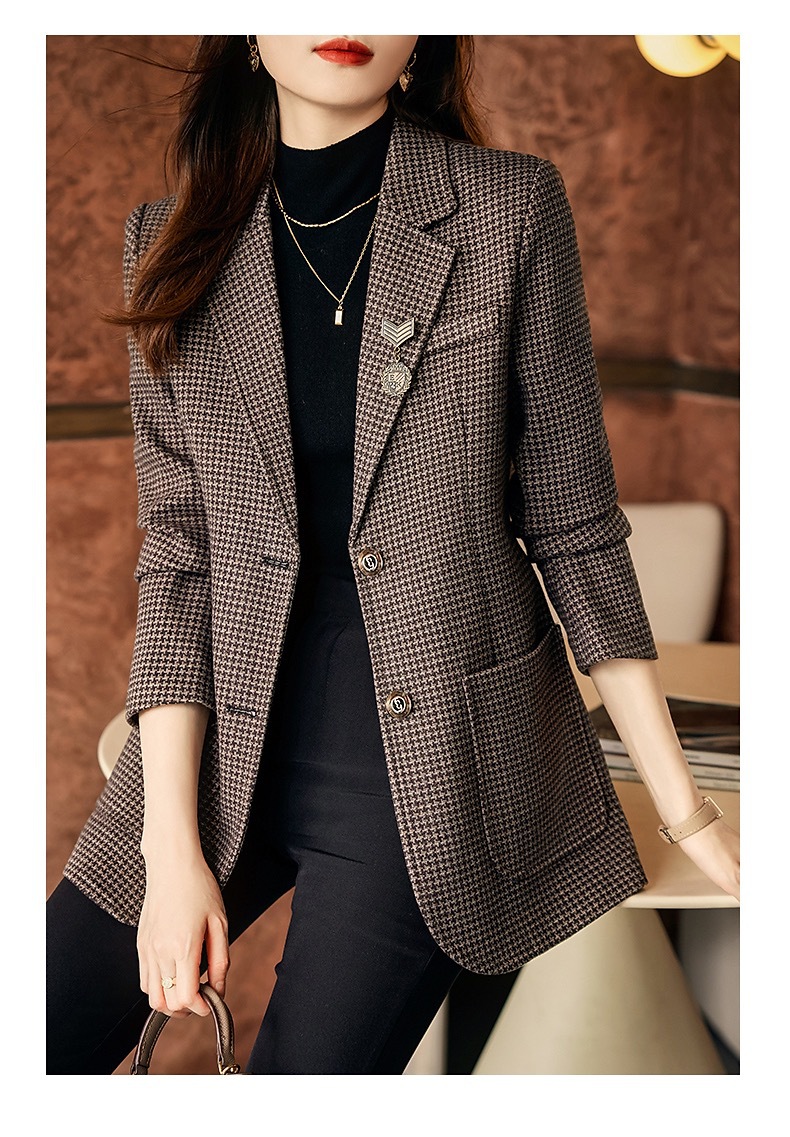 名媛气质,千鸟格小西装外套新款复古西服上衣TYL9654