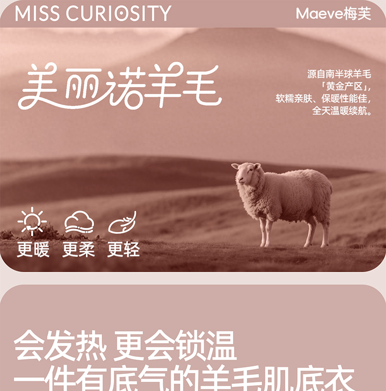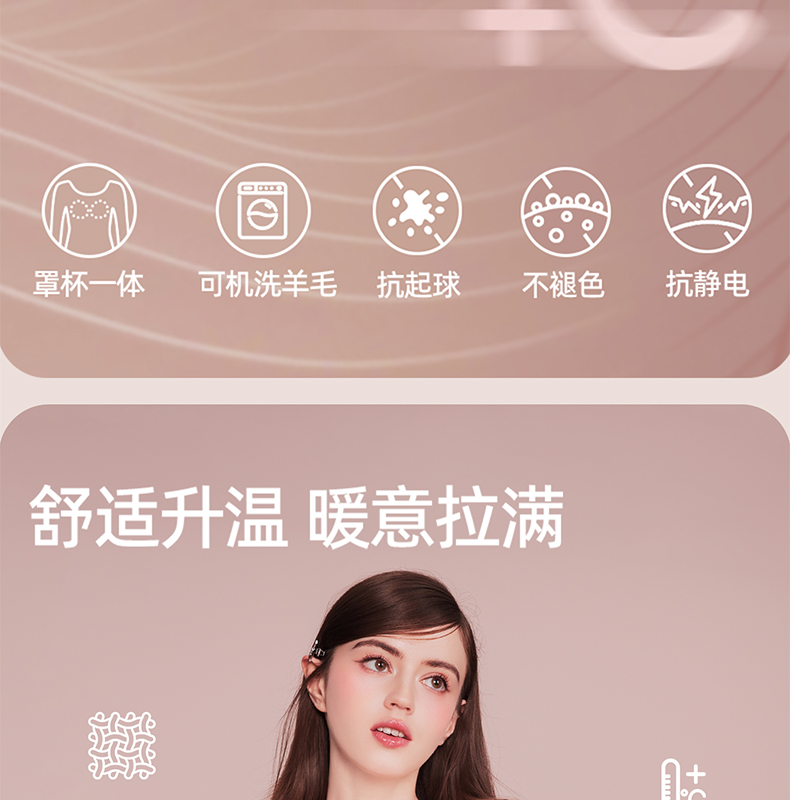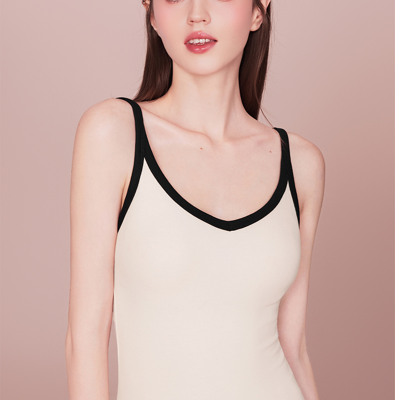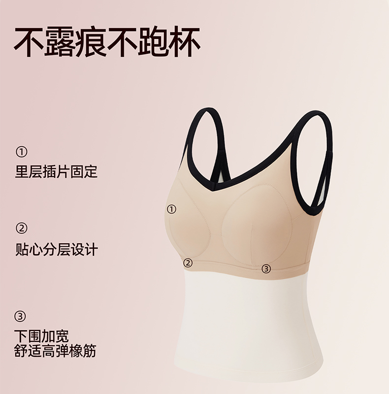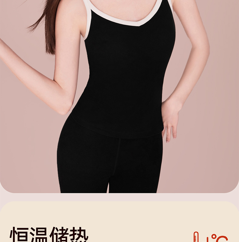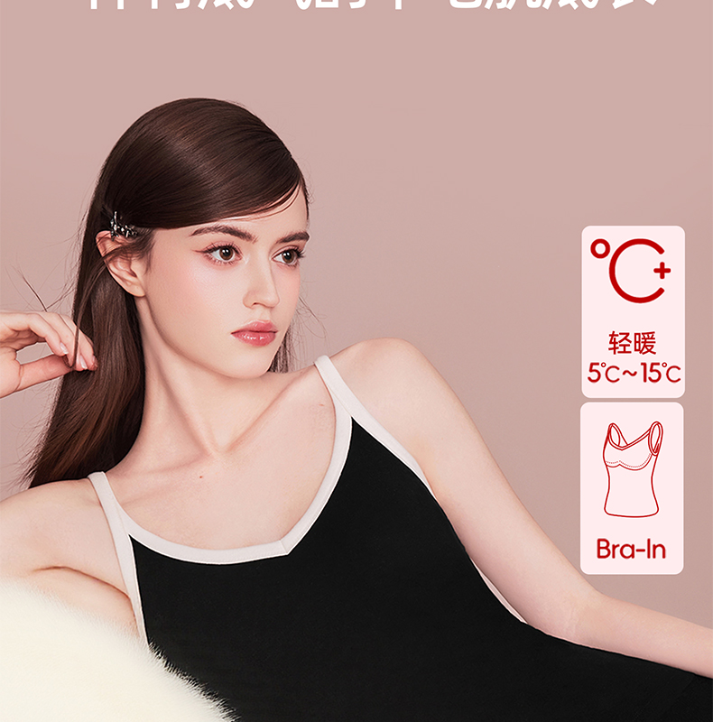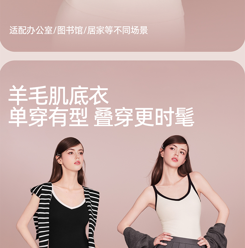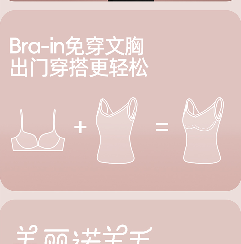好奇蜜斯羊毛保暖背心女带胸垫加绒发热抗静电秋冬吊带肌底衣秋衣 梅芙