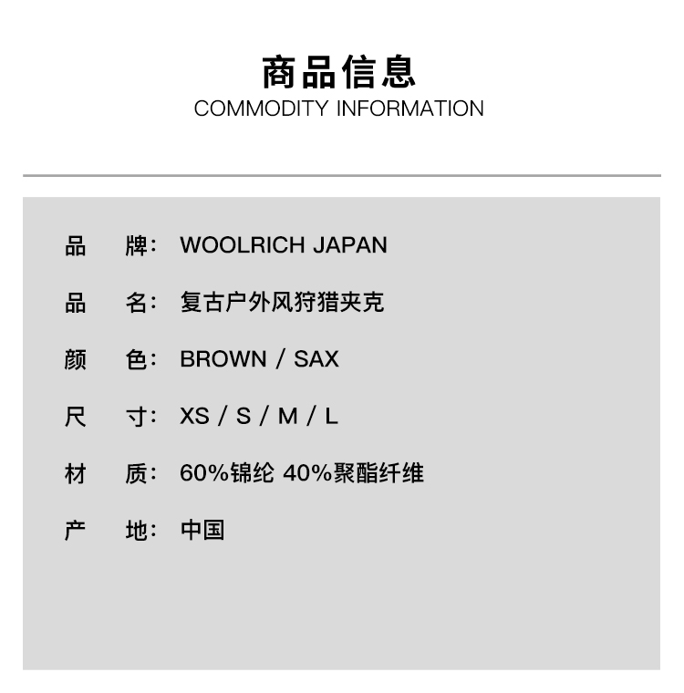 WOOLRICH JAPAN NYLON CLASSIC 男女中性款复古户外风狩猎夹克
