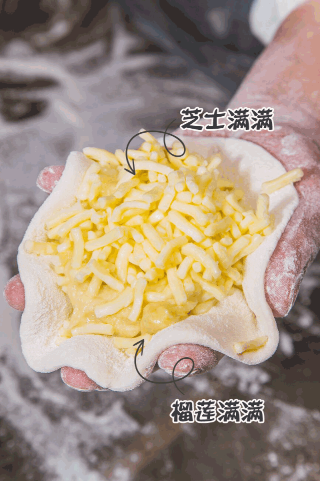 榴莲是灵魂,芝士是力量。这款组合让吃到的人不禁感慨,榴莲和芝士根本就是绝配!一个合格的榴莲芝士饼,只要7、8分钟就能横空出世啦!