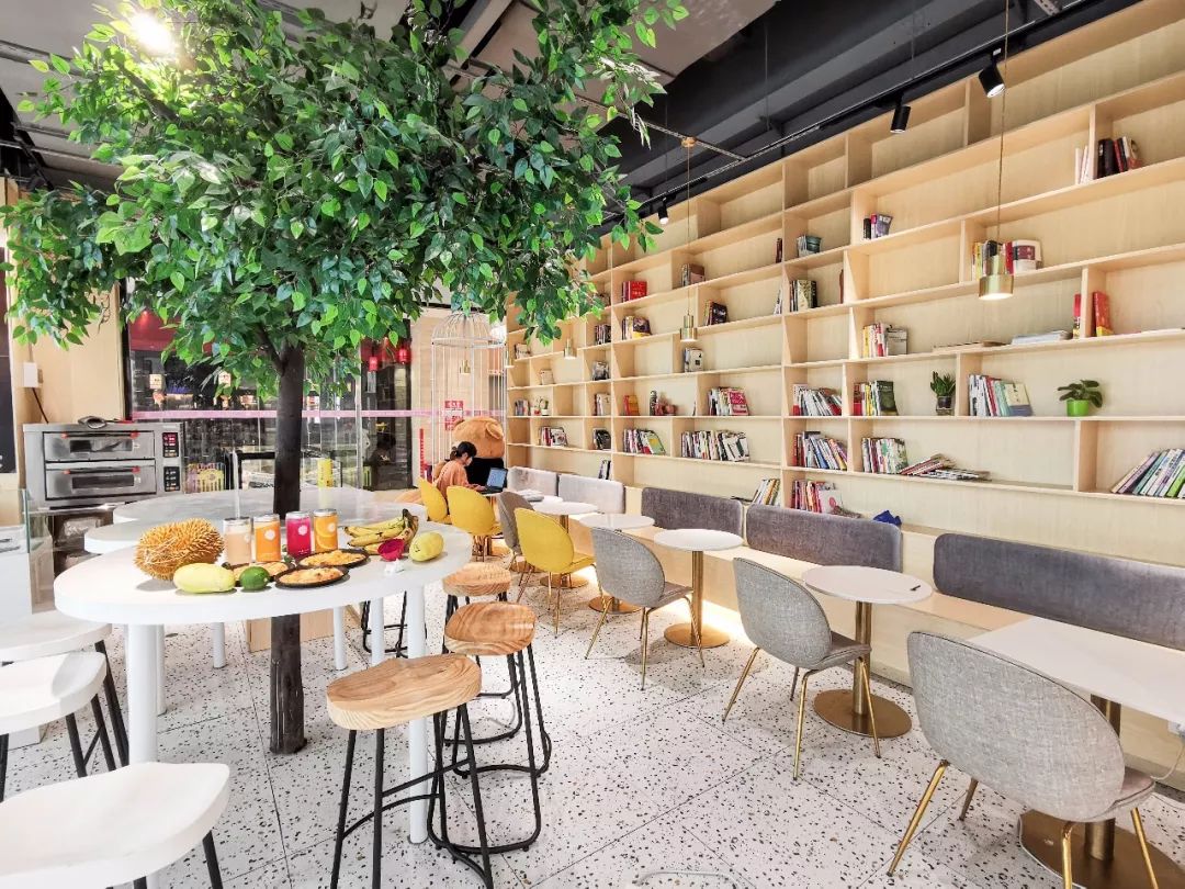 店内整洁明了,有一个炒鸡无敌大的书架,可以边吃吃网黄边看书,舒服自在呀!店内还增设桌椅供大家在店内食用,休闲的环境适合小伙伴们聊天谈心~